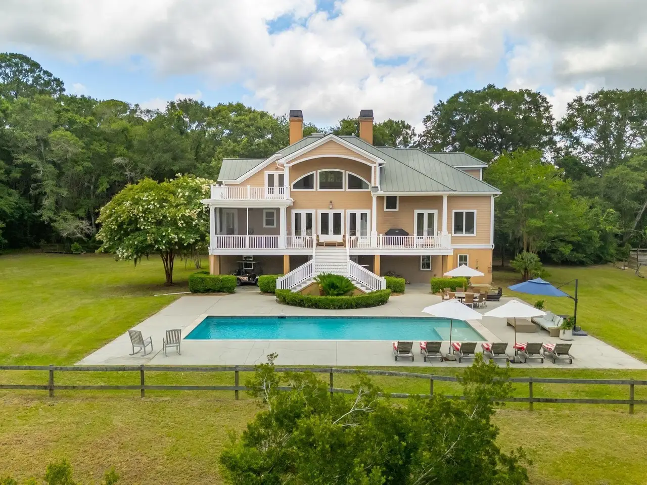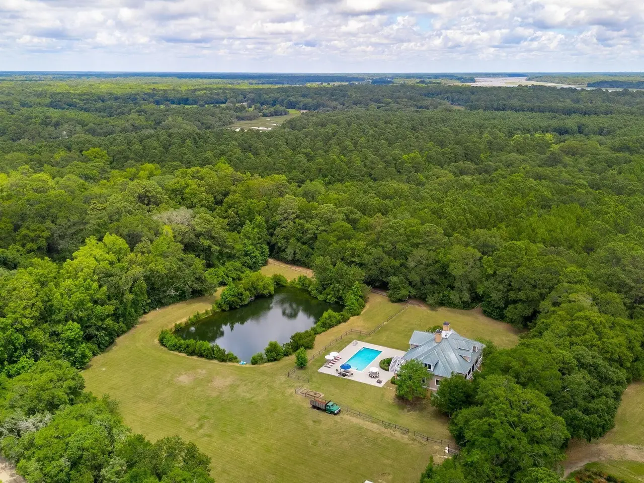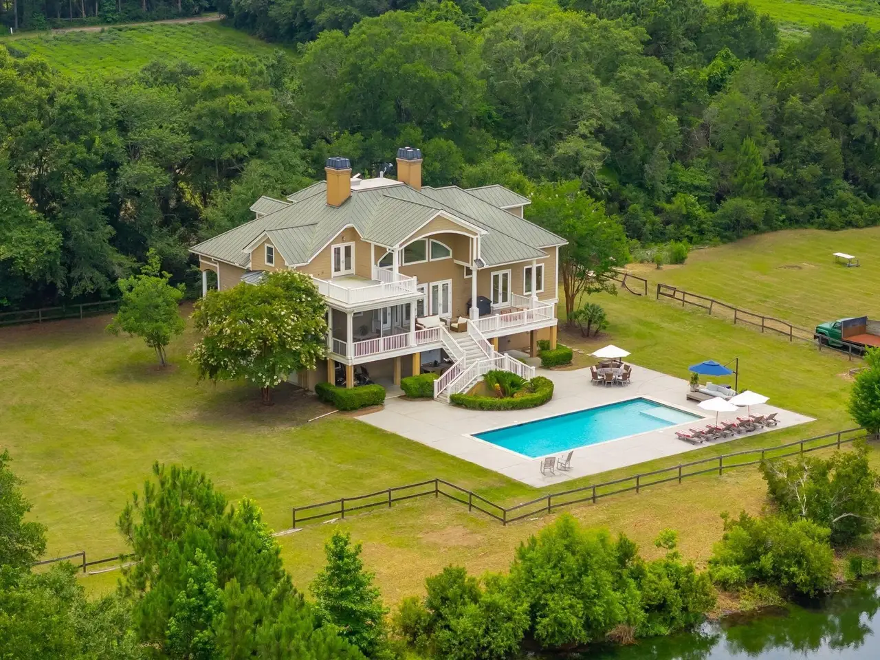 Escape to the Peace and Tranquility of Wadmalaw Island. Welcome to 2470 American Classic Tea Lane, a rare Lowcountry retreat offering the perfect blend of privacy, natural beauty and Southern Charm. Nestled on just over 30 acres across four parcels, this custom-built 3,384 square foot home was constructed in 2009 to the highest standards and pride of ownership shines throughout. As you pass through the private gate and follow the winding dirt road, you'll be greeted by a serene private pond, setting the stage for everything this stunning estate has to offer. Inside, the home is flooded with natural light, featuring soaring ceilings, open living spaces and incredible views from nearly every room. This is more than a home - it's a legacy property ready for its next chapter. The chef's kitchen is the heart of the main floor, anchored by a focal-point island & a cozy breakfast area. A flexible dining space currently hosts a billiards table and is flanked by custom built-ins. The living room boasts a wall of windows and multiple doors opening to the expansive deck and screened porch, all overlooking the pool, ponds, and wide-open fields, an entertainer's dream. The primary suite is a showstopper: complete with a gas fireplace, stunning views, and a luxurious bathroom featuring a walk-in shower and jetted tub. For convenience, an elevator shaft is already in place and ready for a future install if needed. Upstairs, you'll find three additional primary-sized bedrooms, one with a private ensuite bathroom and a jack & jill bathroom as well, plus a peaceful sitting room for quiet moments. A wet bar leads to a rooftop deck with panoramic views across the landscape. Outside, relax on the front porch with its beautiful wood ceiling, or lounge by the spacious pool while enjoying the quiet beauty that only Wadmalaw Island can offer. Crafted for those who value beauty, space, and peace - this is a retreat to be passed down.