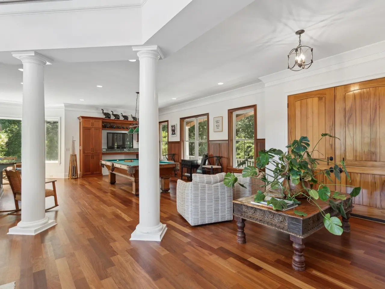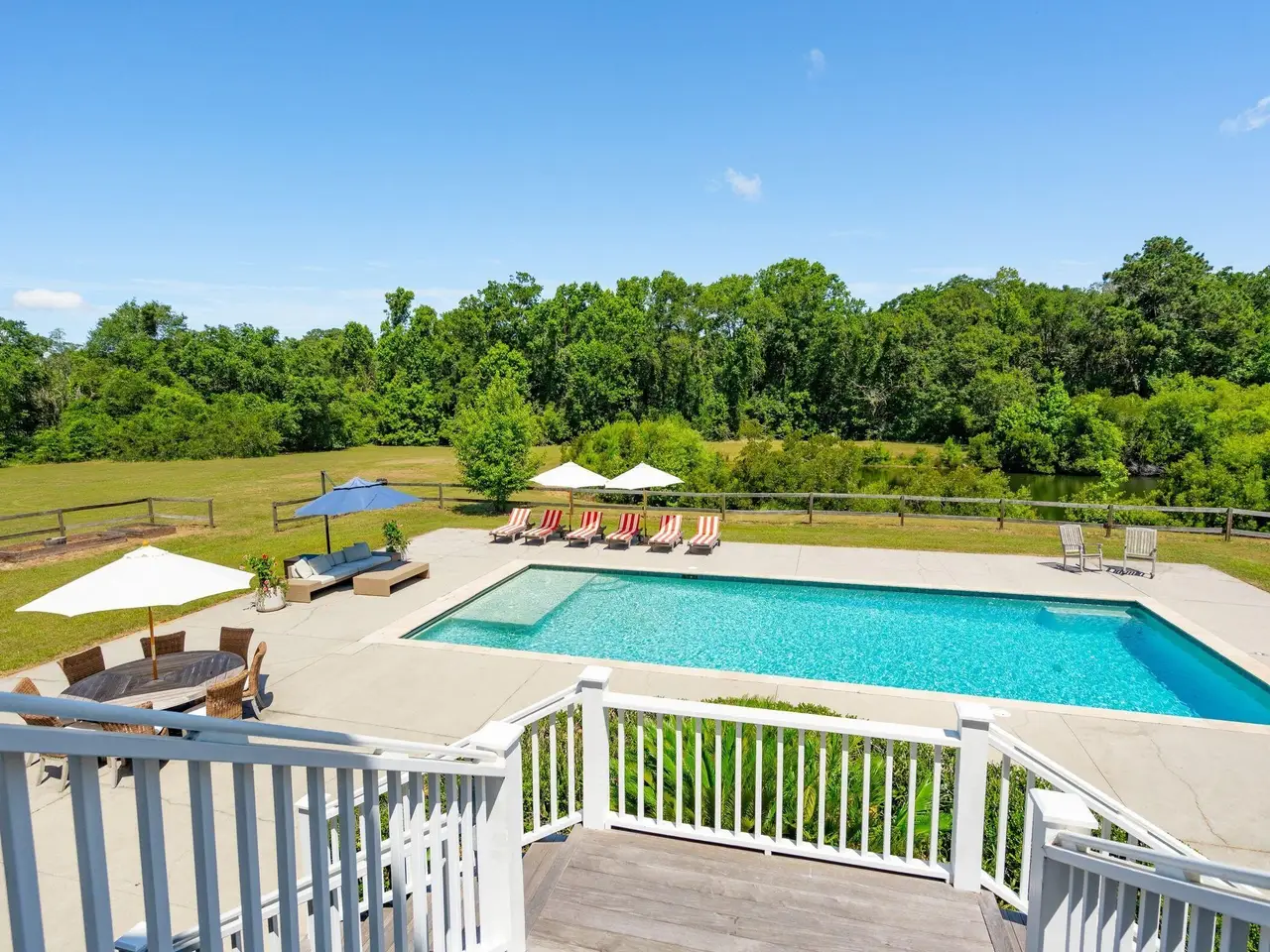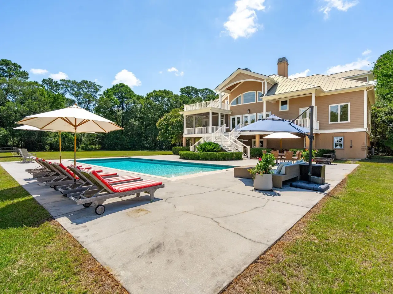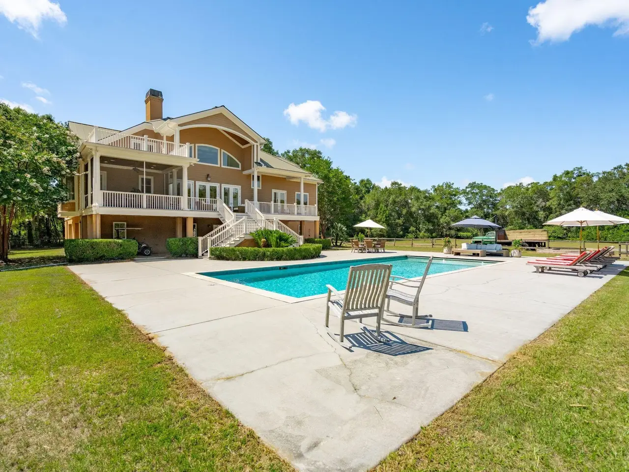 Escape to the Peace and Tranquility of Wadmalaw Island. Welcome to 2470 American Classic Tea Lane, a rare Lowcountry retreat offering the perfect blend of privacy, natural beauty and Southern Charm. Nestled on just over 30 acres across four parcels, this custom-built 3,384 square foot home was constructed in 2009 to the highest standards and pride of ownership shines throughout. As you pass through the private gate and follow the winding dirt road, you'll be greeted by a serene private pond, setting the stage for everything this stunning estate has to offer. Inside, the home is flooded with natural light, featuring soaring ceilings, open living spaces and incredible views from nearly every room. This is more than a home - it's a legacy property ready for its next chapter. The chef's kitchen is the heart of the main floor, anchored by a focal-point island & a cozy breakfast area. A flexible dining space currently hosts a billiards table and is flanked by custom built-ins. The living room boasts a wall of windows and multiple doors opening to the expansive deck and screened porch, all overlooking the pool, ponds, and wide-open fields, an entertainer's dream. The primary suite is a showstopper: complete with a gas fireplace, stunning views, and a luxurious bathroom featuring a walk-in shower and jetted tub. For convenience, an elevator shaft is already in place and ready for a future install if needed. Upstairs, you'll find three additional primary-sized bedrooms, one with a private ensuite bathroom and a jack & jill bathroom as well, plus a peaceful sitting room for quiet moments. A wet bar leads to a rooftop deck with panoramic views across the landscape. Outside, relax on the front porch with its beautiful wood ceiling, or lounge by the spacious pool while enjoying the quiet beauty that only Wadmalaw Island can offer. Crafted for those who value beauty, space, and peace - this is a retreat to be passed down.