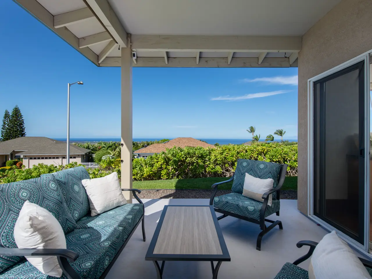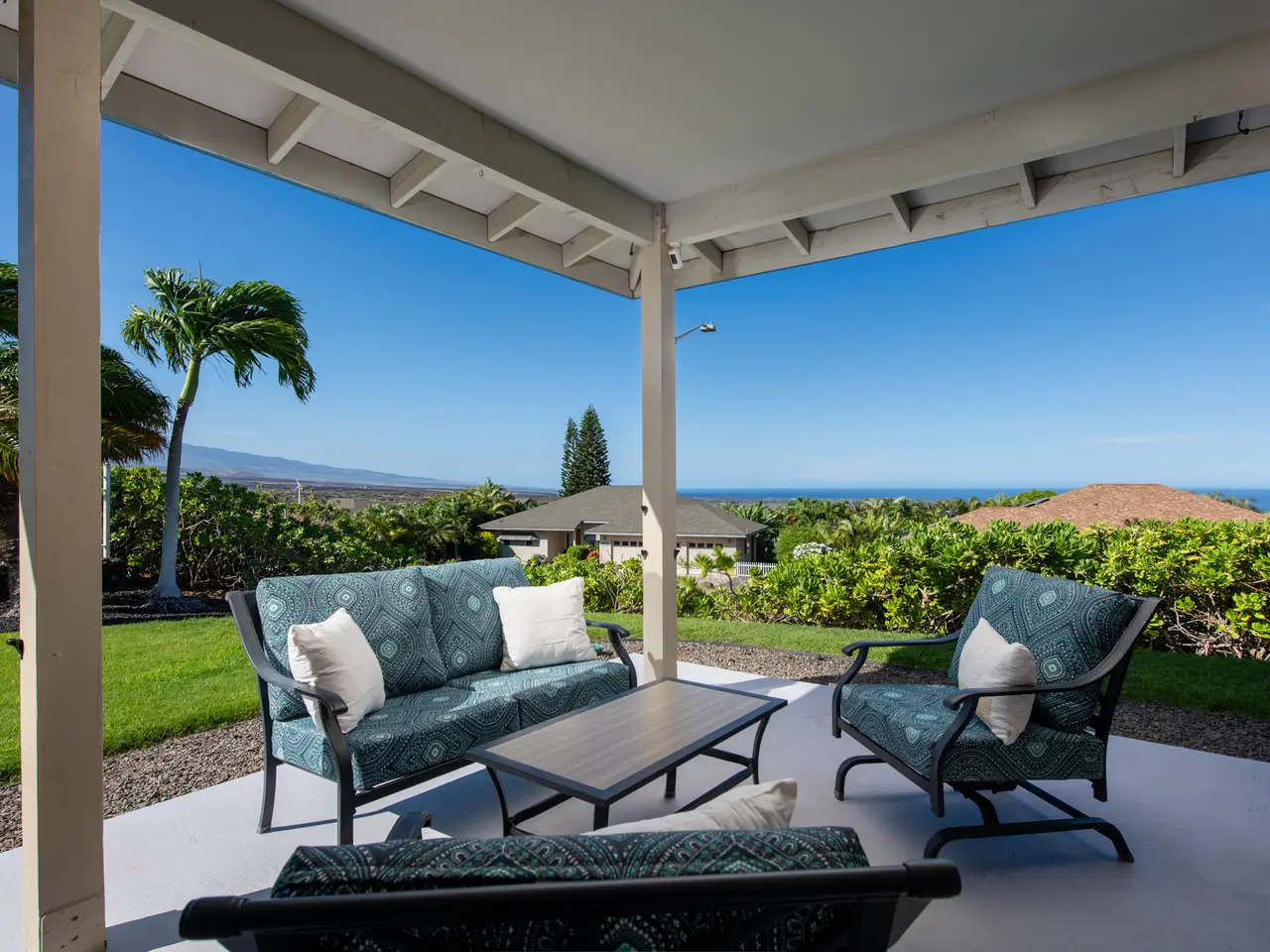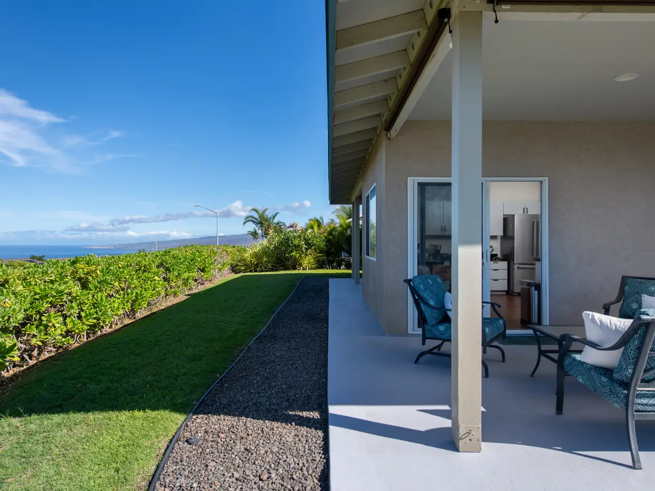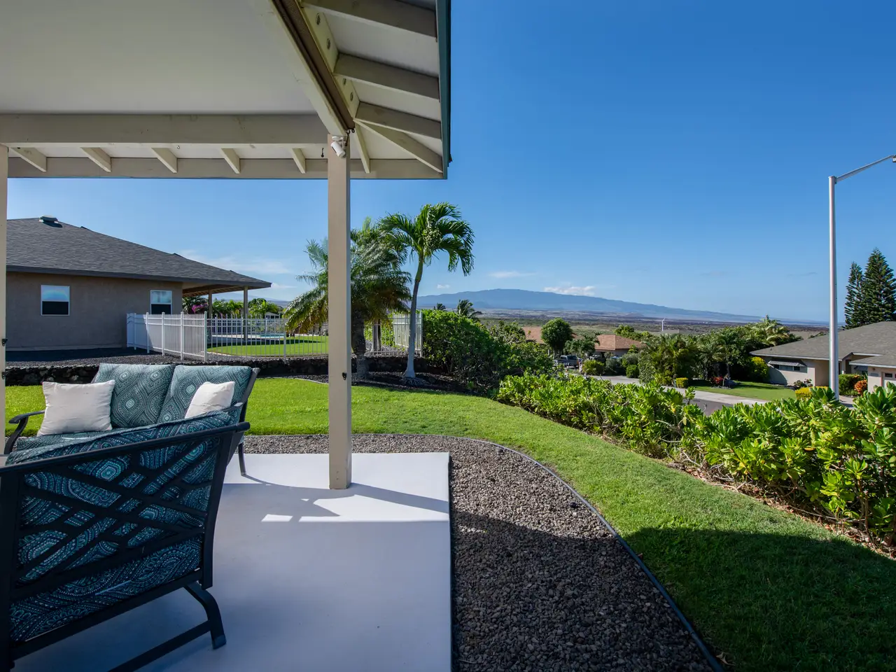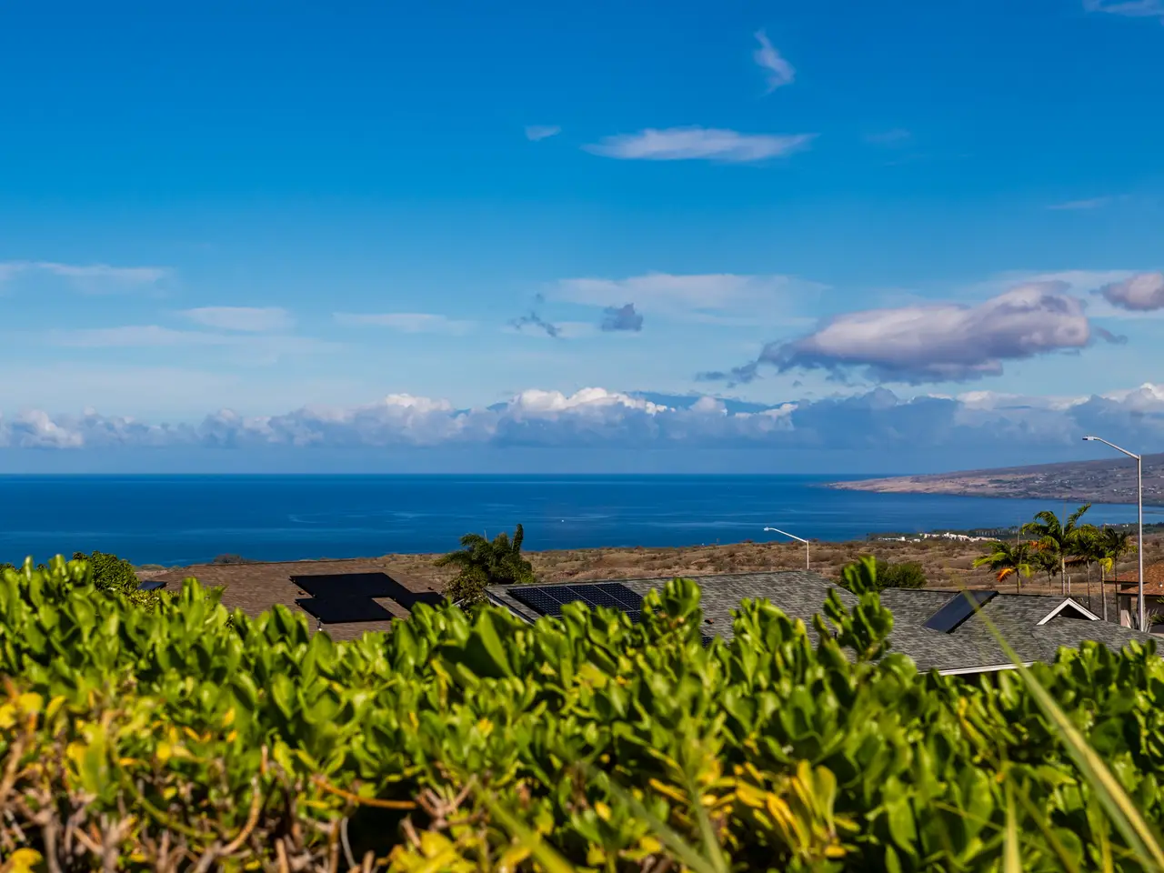 With sweeping 180-degree ocean views and a backdrop of 5 volcanoes, this home captures the beauty and balance of Big Island life. Located in the desirable Sunset Ridge neighborhood of Waikoloa Village, this single-level, move-in-ready residence blends thoughtful design, energy efficiency, and modern convenience. Highlights: Energy Smart Living: 24 fully owned solar panels with Powerwall battery backup keep electric bills around $50 a month. Views from Every Angle: Ocean and coastline views from the kitchen, primary suite, and covered lanais. Single-Level Ease: Flat front and backyards make everyday living simple and accessible. Tropical Surrounds: Mature fruit trees, vibrant flowering plants, and extra storage. 3-Car Garage: 660 sq. ft. with workstation and organized tool storage. EV Ready: Plug-in ChargePoint charger on a dedicated 240-volt circuit. Interior Details: The kitchen is the heart of the home, featuring Magma Black granite counters, modern appliances, an expanded pantry, and a new breakfast bar with storage—all perfectly positioned to take in ocean views, creating an easy indoor-outdoor flow. The primary suite is private and light-filled, with ocean views, a private lanai, dual vanities, a walk-in shower, and a generous walk-in closet. Both bathrooms have been upgraded with Costa Smeralda green granite and tiled walk-in showers. Additional Improvements: New septic tank & line, New lava rock wall with concrete base & drainage, rebuilt sprinkler system with new controller, Fujitsu Split Air Conditioning Located in Waikoloa Village. This Sunset Ridge home sits on a quiet cul-de-sac surrounded by wide streets and sidewalks. Residents enjoy access to the 18-hole Golf Course, tennis courts, and a community pool, adding to the relaxed lifestyle of the neighborhood. Just minutes from shopping and dining, and only 20 minutes to Hawaii’s best beaches and world-class resorts.