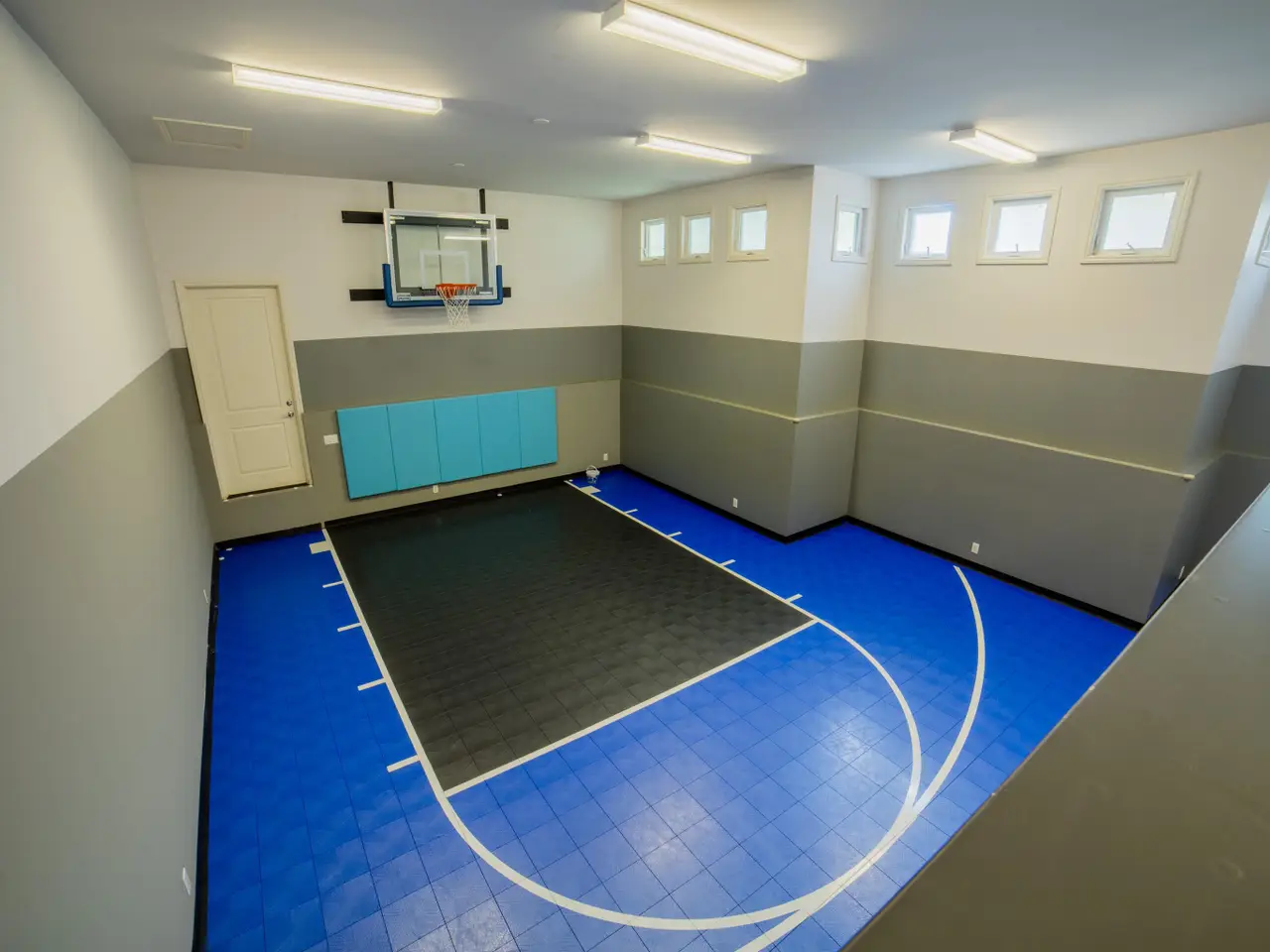 Home fitness with half court basketball court