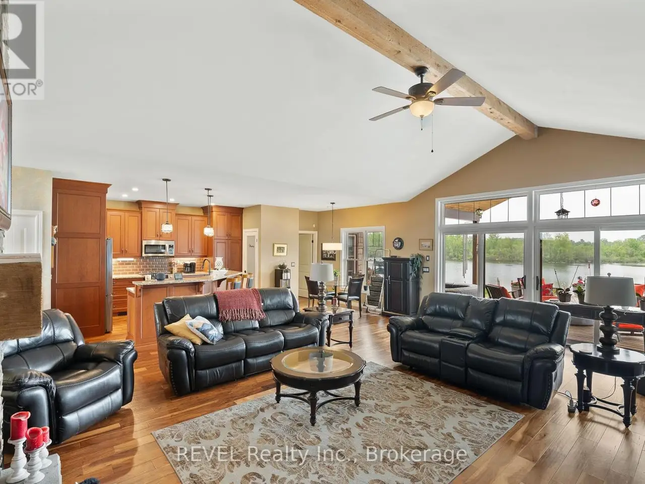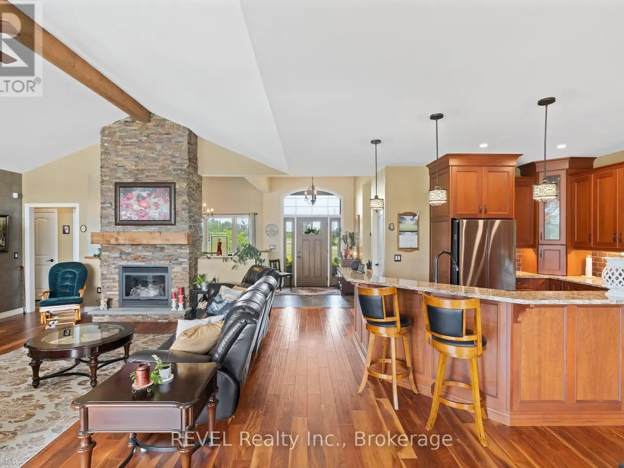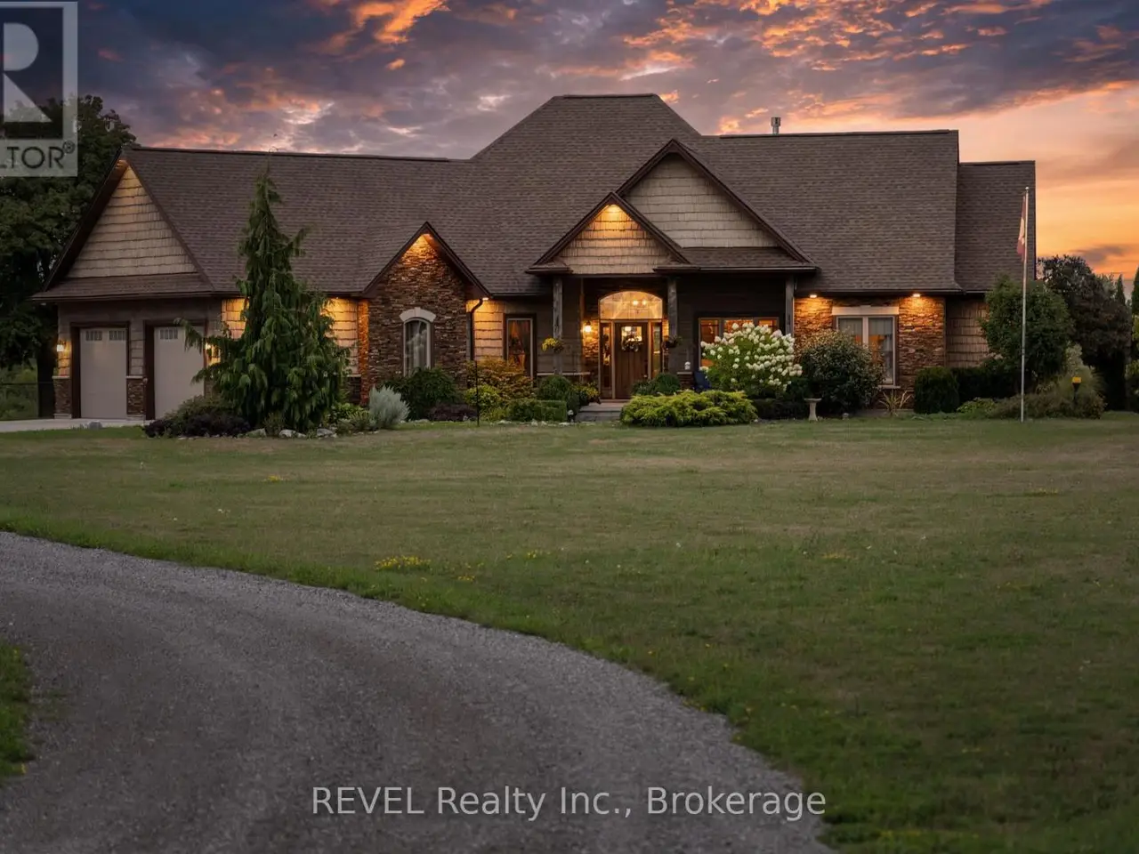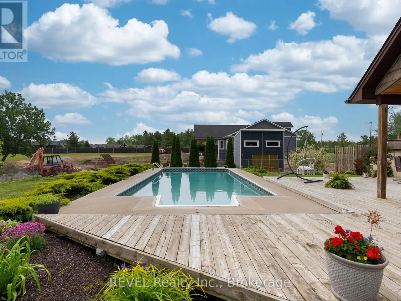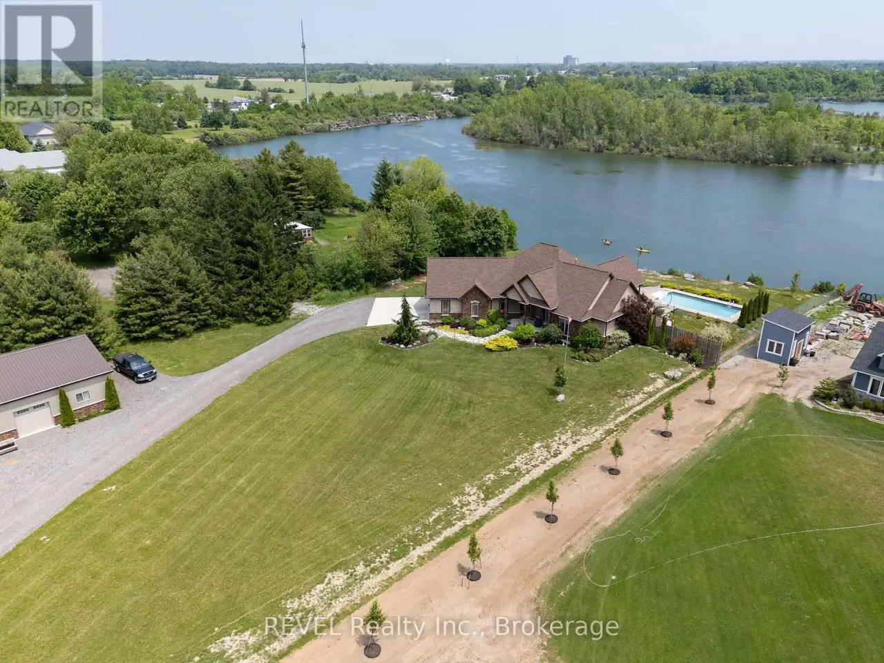 Located just outside the City of Port Colborne with sweeping Wainfleet views, this beautifully appointed bungalow backs onto the serene Port Colborne Quarry Pond and includes .5 acres of owned underwater land, offering an unmatched setting for water recreation and peaceful living. The home blends cottage charm with modern comfort, featuring four bedrooms and two bathrooms, including a private primary suite overlooking the pond with a luxurious 5-piece ensuite boasting a tile walk-in shower, soaker tub, and walk-in closet. The open-concept main floor is designed for both relaxation and entertaining, with vaulted ceilings in the living room, a striking stone gas fireplace, and large windows that frame the stunning quarry views. The kitchen is well-equipped with quartz countertops, a large island with bartop seating, stainless steel appliances, and a generous pantry, flowing seamlessly into the living and dining areas with rich hardwood flooring and real wood doors throughout. Two additional main-floor bedrooms, a full 4-piece bathroom, and an office that can serve as a fourth bedroom provide ample space for family or guests. A large covered rear deck with a vaulted roof extends your living space outdoors, overlooking an eight-year-old inground pool with a new pump and filter ideal for summer enjoyment. Additional highlights include a main-floor laundry room, an extra-large attached two-car garage, a 35x40-foot detached shop with full vehicle lift and air compressor, and a 5-foot height unfinished basement for storage. With a cistern water supply and a location that offers a true Muskoka-like experience just minutes from all local amenities, this home delivers the ultimate blend of lifestyle, privacy, and practicality.