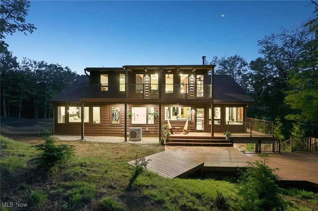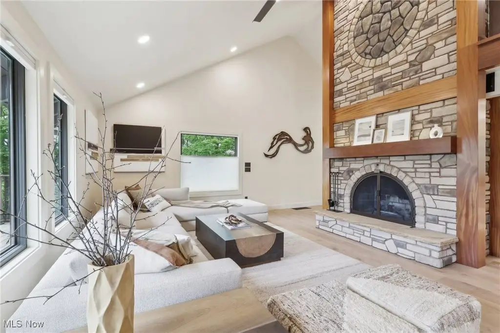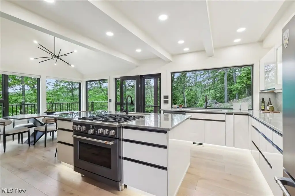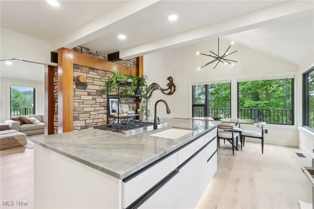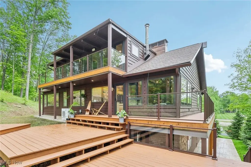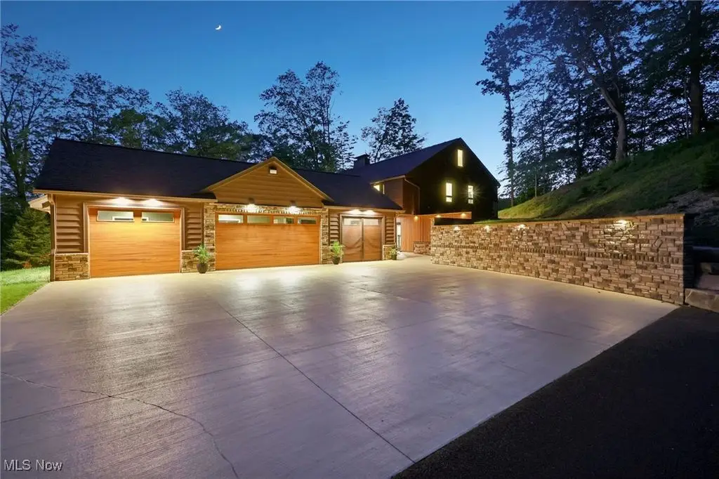 Discover a one-of-a-kind luxury retreat nestled in the heart of Waite Hill, where refined living, thoughtful design, and serene natural beauty come together in perfect harmony. Fully renovated from top to bottom, this 4-bedroom, 5.5-bath home is situated on a 5 acre wooded lot with a winding driveway, tranquil pond, and minimalist landscaping designed to blend seamlessly with the natural surroundings. High-quality finishes and meticulous attention to detail are evident throughout. The stunning chef's kitchen features quartzite countertops, Cafe appliances, custom cabinetry, and an open dining area. The main living space is anchored by a dramatic floor-to-ceiling stone fireplace. The spacious primary suite includes a walk-in closet and spa-like bath with a stone walk-in shower, multiple shower heads, and double vanity. A second ensuite bedroom, laundry, and half bath complete the main floor. The garden level offers a private guest suite, two full bathrooms, a large living area, fully equipped gym, swim spa, and a gallery-style hallway. An elevator connects the garden level to the main floor for ease and accessibility. The third floor features a loft with a wood-burning stove, a balcony with peaceful wooded views, and a private apartment with full kitchen, bedroom, and bath-ideal for guests or extended family. Additional highlights include a 3-car attached garage with an optional fourth bay currently used for the swim spa, second-story front and rear porches, and bonus storage space above the garage. Zoned heating and cooling ensure year-round comfort, while dimmable lighting throughout the home allows you to tailor the ambiance to any mood or occasion. Stylish furnishings from Restoration Hardware, Pottery Barn, and Arhaus-most included-complete this rare offering. An adjacent 5-acre parcel is also available for purchase, offering the opportunity to expand your private estate. A truly one-of-a-kind Waite Hill retreat combining luxury, privacy, and natural beauty.