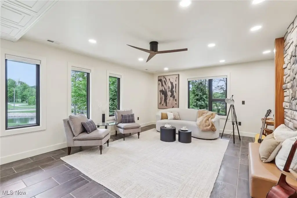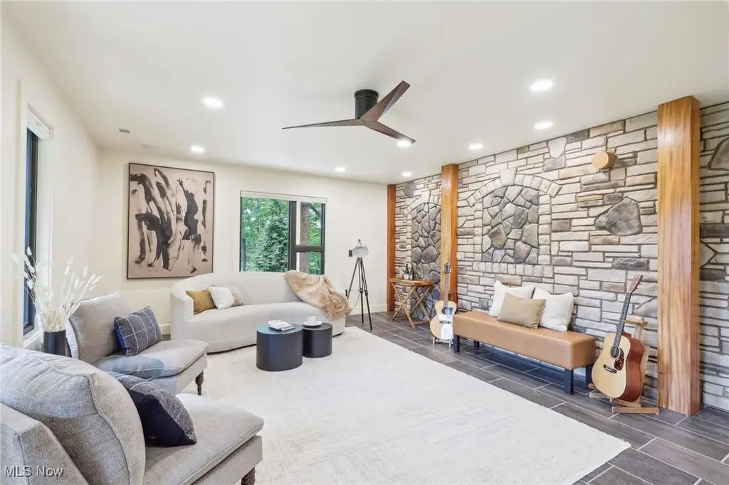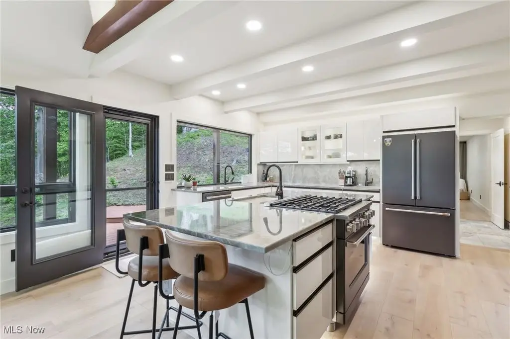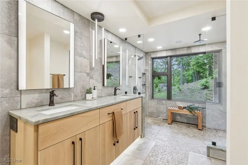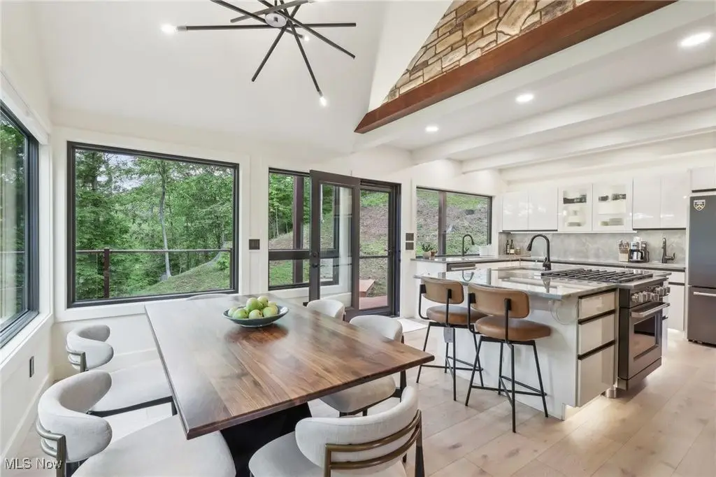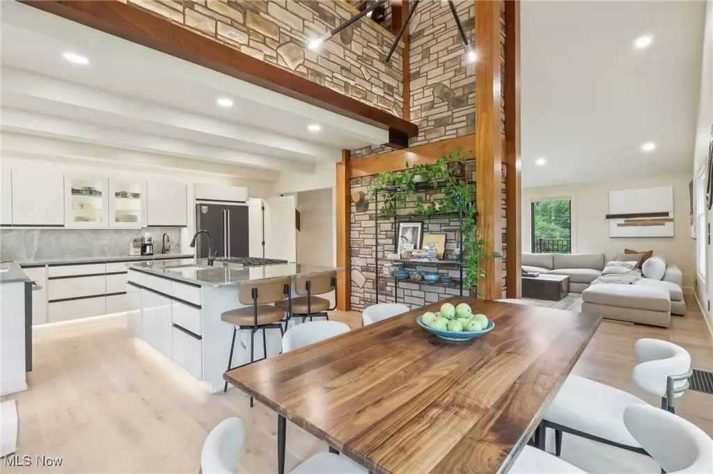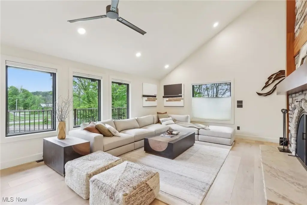Discover a one-of-a-kind luxury retreat nestled in the heart of Waite Hill, where refined living, thoughtful design, and serene natural beauty come together in perfect harmony. Fully renovated from top to bottom, this 4-bedroom, 5.5-bath home is situated on a 5 acre wooded lot with a winding driveway, tranquil pond, and minimalist landscaping designed to blend seamlessly with the natural surroundings. High-quality finishes and meticulous attention to detail are evident throughout. The stunning chef's kitchen features quartzite countertops, Cafe appliances, custom cabinetry, and an open dining area. The main living space is anchored by a dramatic floor-to-ceiling stone fireplace. The spacious primary suite includes a walk-in closet and spa-like bath with a stone walk-in shower, multiple shower heads, and double vanity. A second ensuite bedroom, laundry, and half bath complete the main floor. The garden level offers a private guest suite, two full bathrooms, a large living area, fully equipped gym, swim spa, and a gallery-style hallway. An elevator connects the garden level to the main floor for ease and accessibility. The third floor features a loft with a wood-burning stove, a balcony with peaceful wooded views, and a private apartment with full kitchen, bedroom, and bath-ideal for guests or extended family. Additional highlights include a 3-car attached garage with an optional fourth bay currently used for the swim spa, second-story front and rear porches, and bonus storage space above the garage. Zoned heating and cooling ensure year-round comfort, while dimmable lighting throughout the home allows you to tailor the ambiance to any mood or occasion. Stylish furnishings from Restoration Hardware, Pottery Barn, and Arhaus-most included-complete this rare offering. An adjacent 5-acre parcel is also available for purchase, offering the opportunity to expand your private estate. A truly one-of-a-kind Waite Hill retreat combining luxury, privacy, and natural beauty.