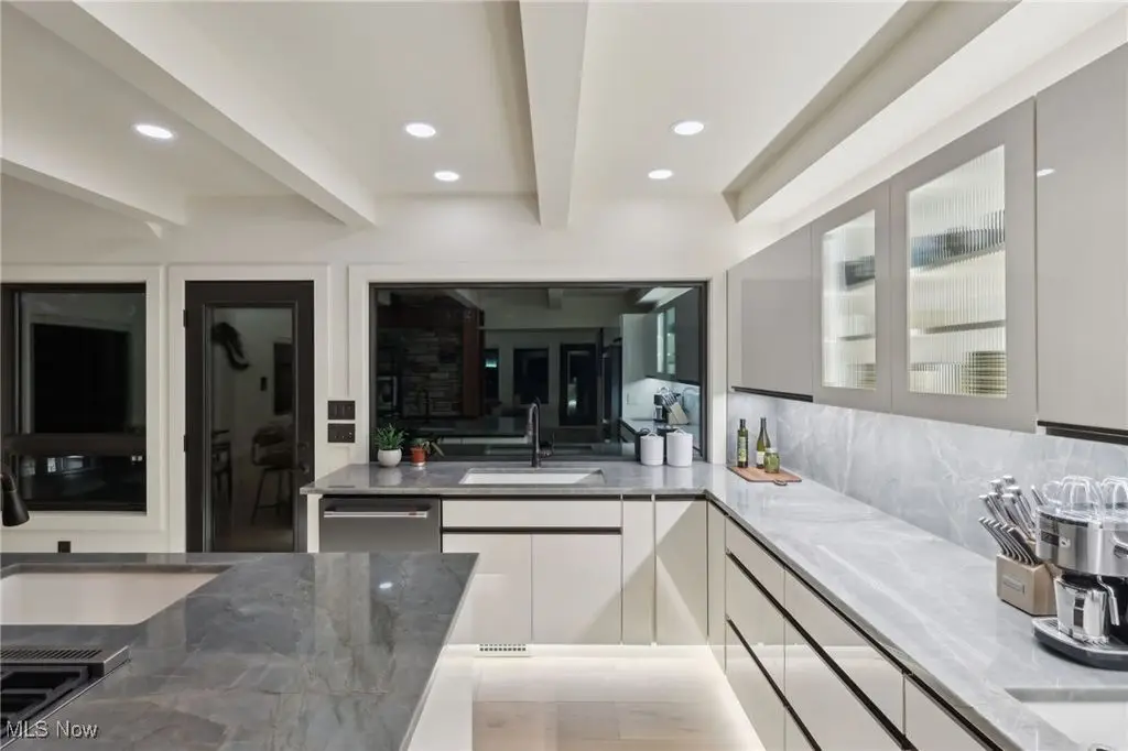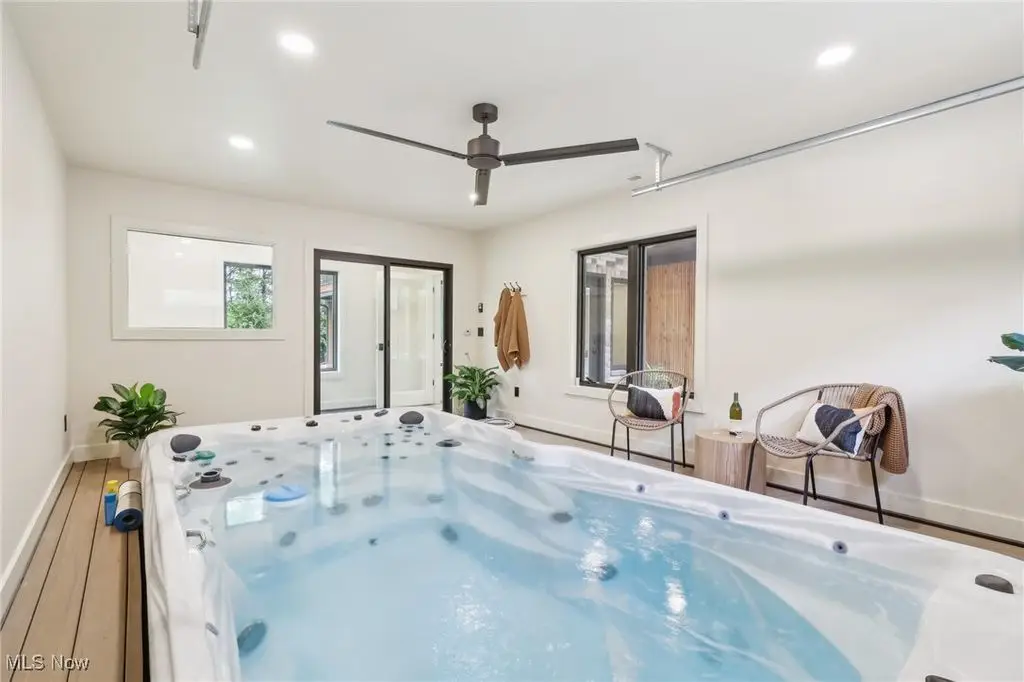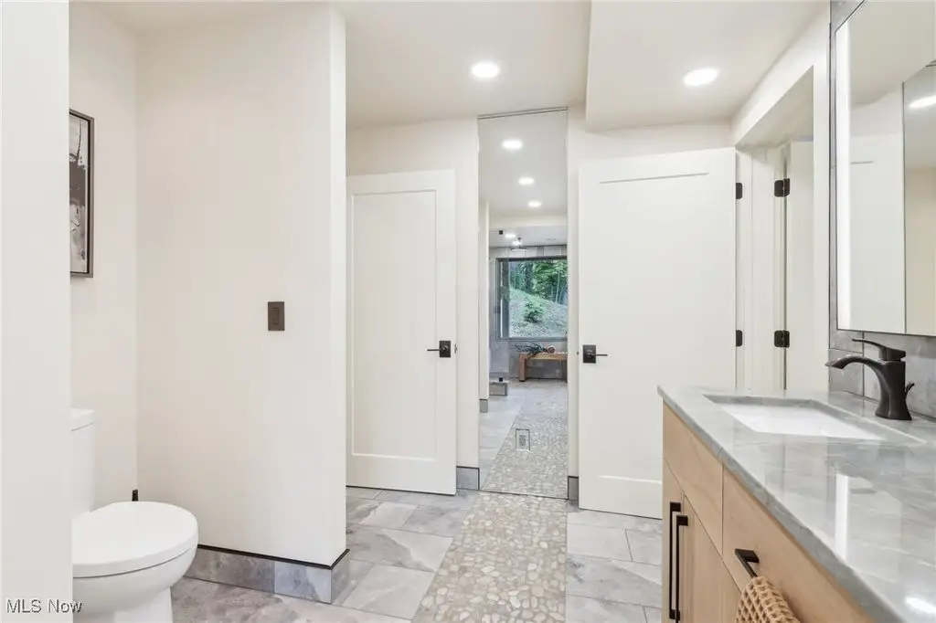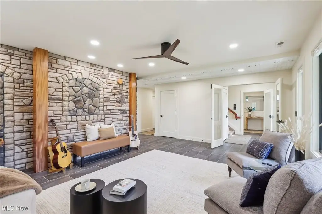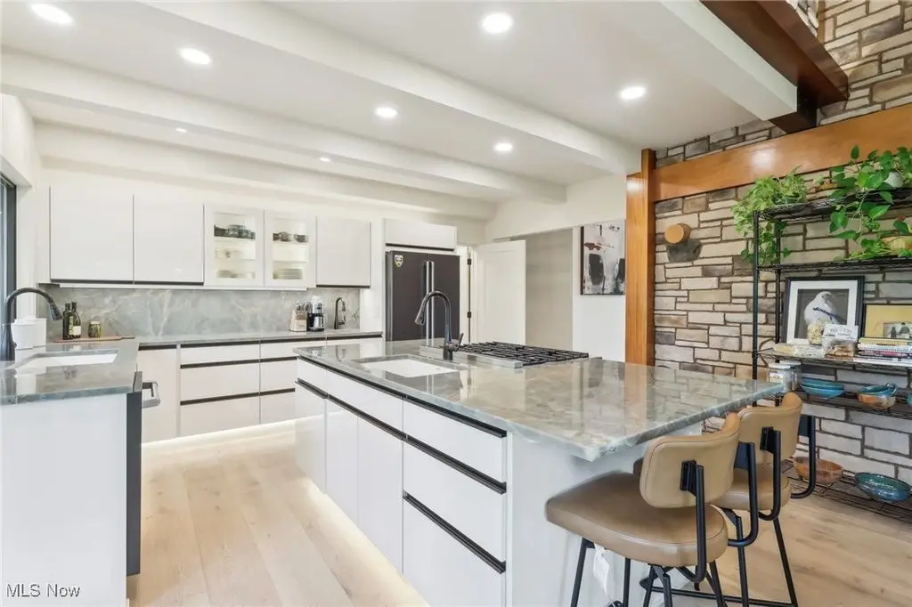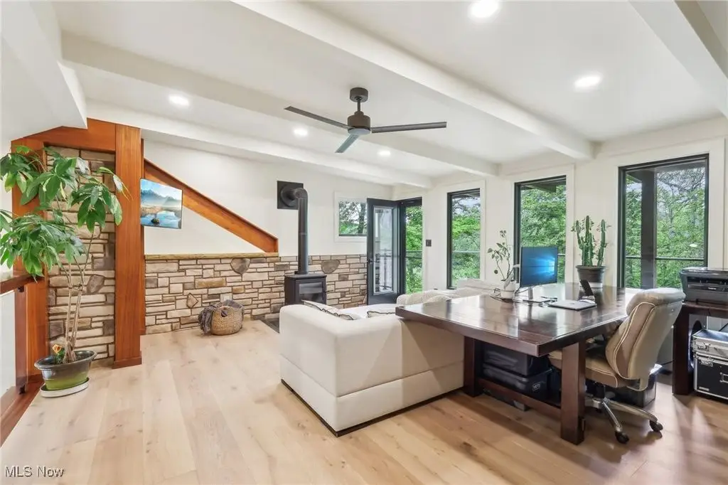 Discover a one-of-a-kind luxury retreat nestled in the heart of Waite Hill, where refined living, thoughtful design, and serene natural beauty come together in perfect harmony. Fully renovated from top to bottom, this 4-bedroom, 5.5-bath home is situated on a 5 acre wooded lot with a winding driveway, tranquil pond, and minimalist landscaping designed to blend seamlessly with the natural surroundings. High-quality finishes and meticulous attention to detail are evident throughout. The stunning chef's kitchen features quartzite countertops, Cafe appliances, custom cabinetry, and an open dining area. The main living space is anchored by a dramatic floor-to-ceiling stone fireplace. The spacious primary suite includes a walk-in closet and spa-like bath with a stone walk-in shower, multiple shower heads, and double vanity. A second ensuite bedroom, laundry, and half bath complete the main floor. The garden level offers a private guest suite, two full bathrooms, a large living area, fully equipped gym, swim spa, and a gallery-style hallway. An elevator connects the garden level to the main floor for ease and accessibility. The third floor features a loft with a wood-burning stove, a balcony with peaceful wooded views, and a private apartment with full kitchen, bedroom, and bath-ideal for guests or extended family. Additional highlights include a 3-car attached garage with an optional fourth bay currently used for the swim spa, second-story front and rear porches, and bonus storage space above the garage. Zoned heating and cooling ensure year-round comfort, while dimmable lighting throughout the home allows you to tailor the ambiance to any mood or occasion. Stylish furnishings from Restoration Hardware, Pottery Barn, and Arhaus-most included-complete this rare offering. An adjacent 5-acre parcel is also available for purchase, offering the opportunity to expand your private estate. A truly one-of-a-kind Waite Hill retreat combining luxury, privacy, and natural beauty.