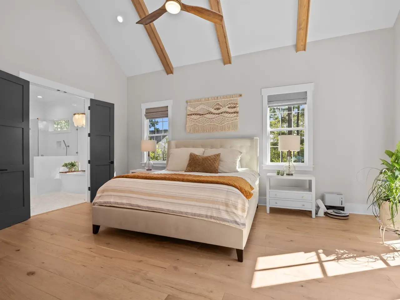 Vaulted ceilings with wood beams