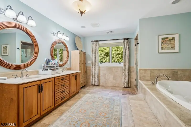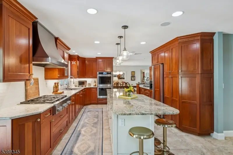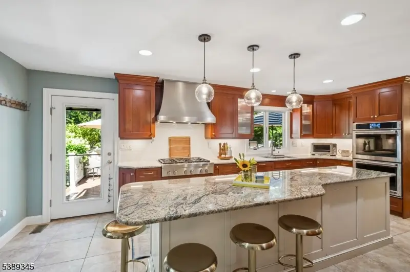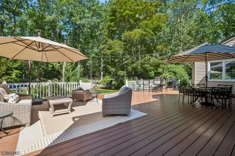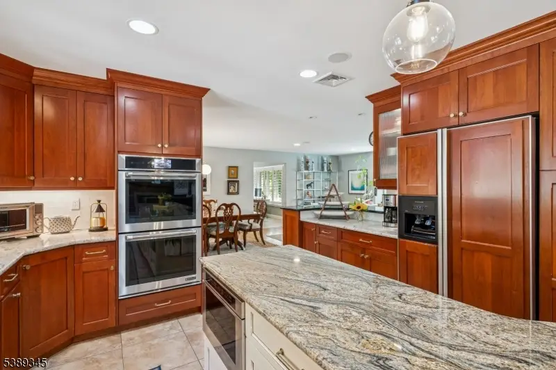 Elegant and Spacious Home in Sought-After Wall Township. Welcome to this exceptional property that effortlessly blends elegance, comfort, and functionality ideally located in the desirable Wall Township community. From the moment you enter, you're greeted by a grand foyer that flows seamlessly into an open-concept dining and living area perfect for entertaining. The chef's kitchen is a culinary dream, featuring high-end stainless steel appliances, abundant counter space, and exquisite granite countertops. The main level also offers a cozy yet spacious family room adorned with skylights and a stunning stone fireplace, creating an inviting atmosphere for relaxation. Adjacent to the family room, the impressive primary suite boasts French doors leading to an expansive patio, a luxurious en-suite bath, and ample closet space. One of two dedicated home offices is also located on the first floor Upstairs, a custom-crafted stair rail leads to three generously sized bedrooms, a full shared bath, and a second home office or creative workspace. Step outside into your private backyard oasis, featuring a large Trex deck, beautifully manicured landscaping, and a substantial saltwater pool for summer enjoyment. Ideally situated just minutes from iconic Jersey Shore beaches and major highways,