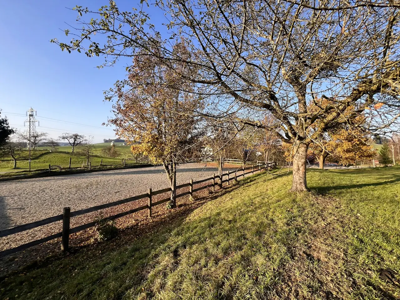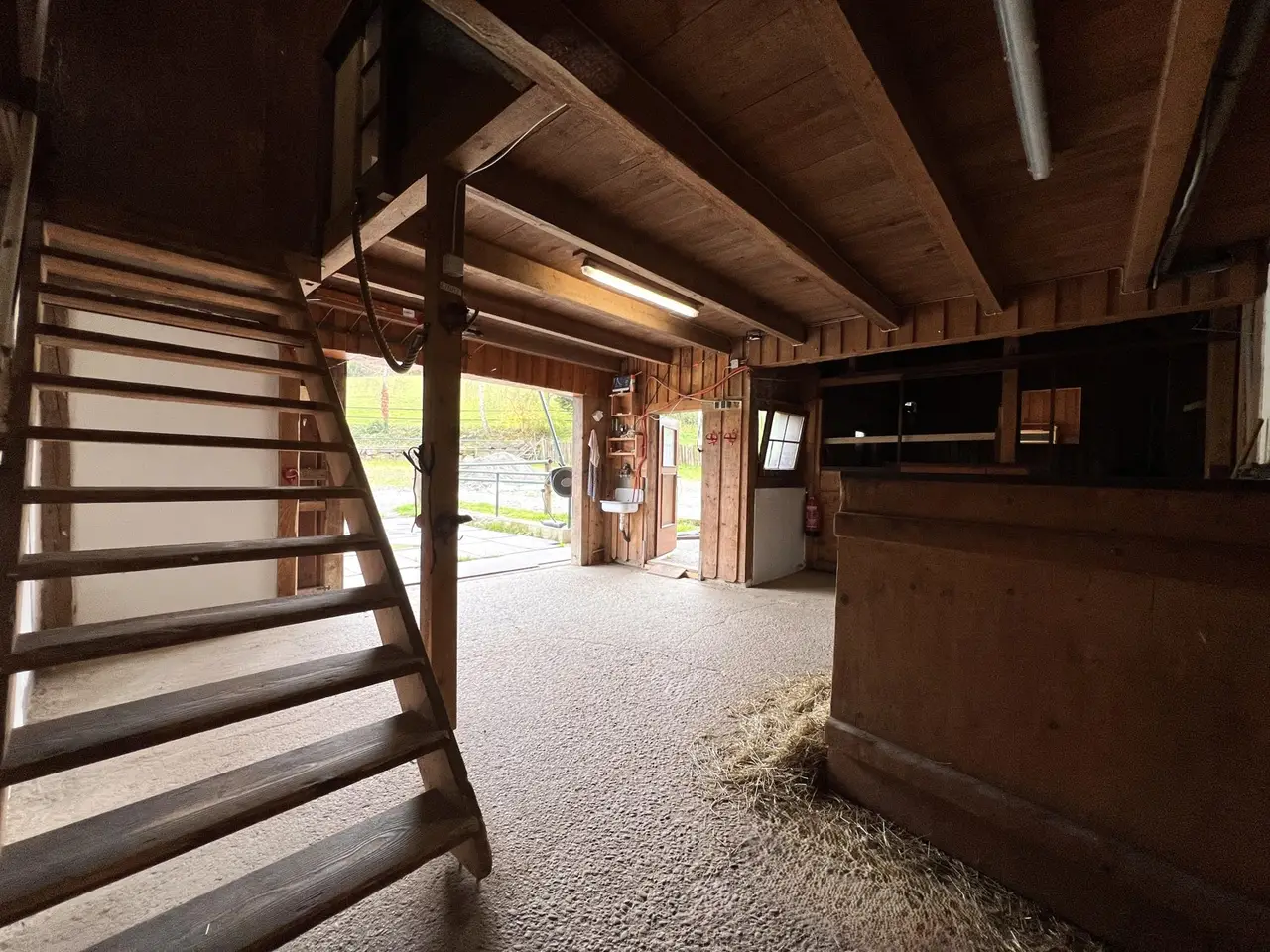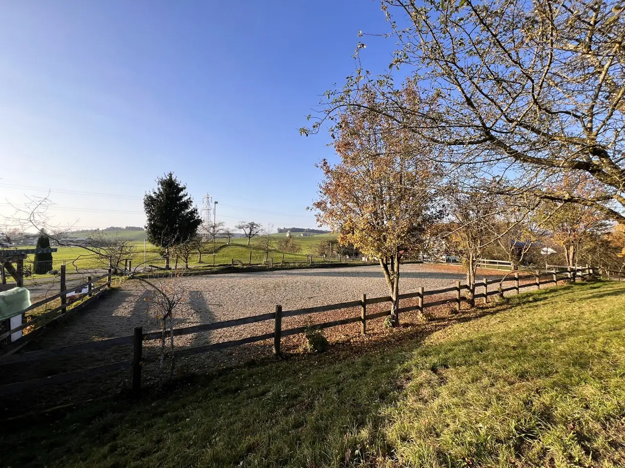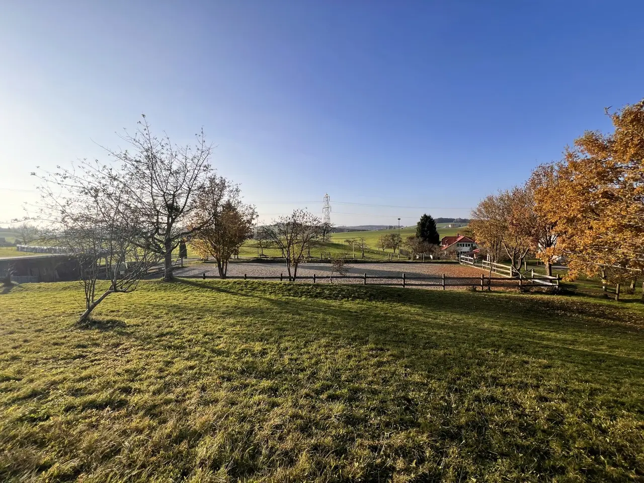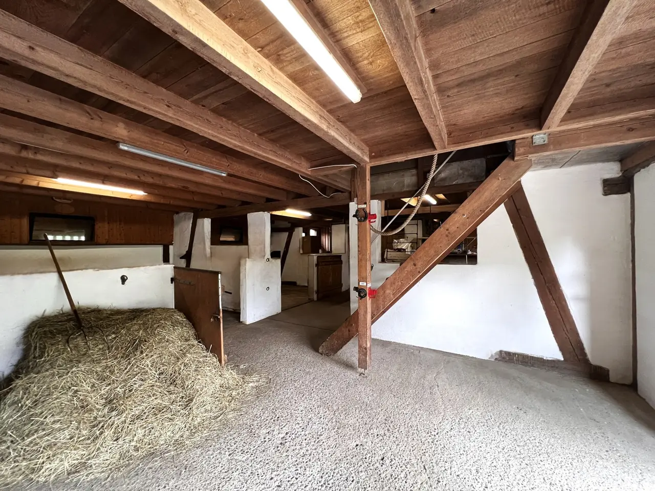 For sale is a well-kept equestrian property with two residential units (one of which has a registered right of residence) and an additional equestrian apartment with a total living space of approx. 266 m², set in extensive grounds with a total area of approx. 27,000 m². The property is in a very well-kept condition. In 2009 and 2010, significant renovation work was carried out, such as new roofing, new façade insulation, window replacement and renovation of the heating system, etc. The property is in very good condition. As a result, the house offers contemporary furnishings and meets modern living standards. The property also has a PV system with an output of 10 KW and an air-to-water heat pump. The living space of this property can be extended by 80 - 100 m² on the upper floor of the stable building. This property is a particular highlight for horse lovers. There are 7 spacious horse boxes with built-in water troughs and an open stable with space for up to five horses. Attached is a paved paddock with sandy ground measuring approx. 300 m². In the stables there is also a spacious tack room, a rider's lounge and a newly installed WC. There is a 22 m x 42 m riding arena and a 22 m diameter round pen on the property. In the area of the riding arena there is also a covered parking area of approx. 70 m², of which 30 m² is a lockable area. The entire property is fenced and can be divided into spacious paddocks. Behind the farm building is a large orchard with tall apple trees of different varieties. The property is ideal for anyone looking for a spacious home with plenty of open space and additional design options. The extremely quiet and sunny location in combination with the spacious plot allows for a high degree of privacy and offers enough space for outdoor activities, be it for private leisure activities or for the hobby animal keeper. Overall, this property impresses with a successful combination of living comfort and functional amenities for horse lovers. The facilities and additional infrastructure for keeping horses make it an excellent choice for prospective buyers who want to realize their dream home and lifestyle in a natural environment. If you are interested in viewing the property, we would be delighted to show you the potential of this unique property.
