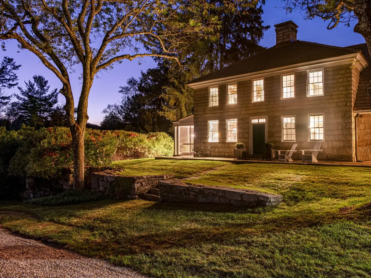Reverie Farm is an exceptionally rare late 18th century stone and shingle estate, on more than one hundred acres, located in one of the highest and most private parts of Connecticut. Situated in the heart of Litchfield County, the property rises more than 1,200 feet in elevation across four distinct tax parcels, among which are several estate quality building sites. The setting is dreamlike in every season, and quintessentially New England. The 1799 Main house is an architectural marvel that achieves effortless balance between its Georgian-Federal, Dutch Colonial, and European elements. The effect is nothing short of entering a fairy tale, one that unfolds endlessly with each new detail that one discovers. An incredibly intimate home, the Main house at Reverie is nonetheless nearly 7,000 square feet and boasts seven bedrooms, five full and two half baths, several ancient fireplaces, and an historic pub, reputed to be the oldest part of the house. There is a Gunite pool, privately situated among mature gardens, a tennis court, and a beguiling number of ancient trees around the property. Reverie has an overwhelming number of outbuildings including a guest house, separate dance studio with apartment, and an antique barn that was the studio of American Abstract Expressionist painter Cleve Gray. Gray lived at the property with his wife Francine du Plessix, the noted journalist-novelist.