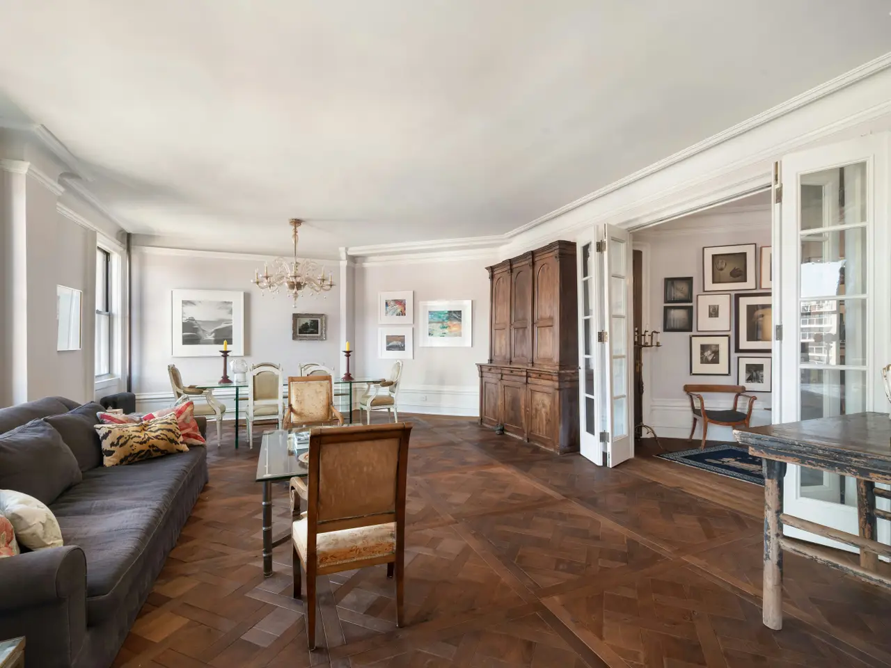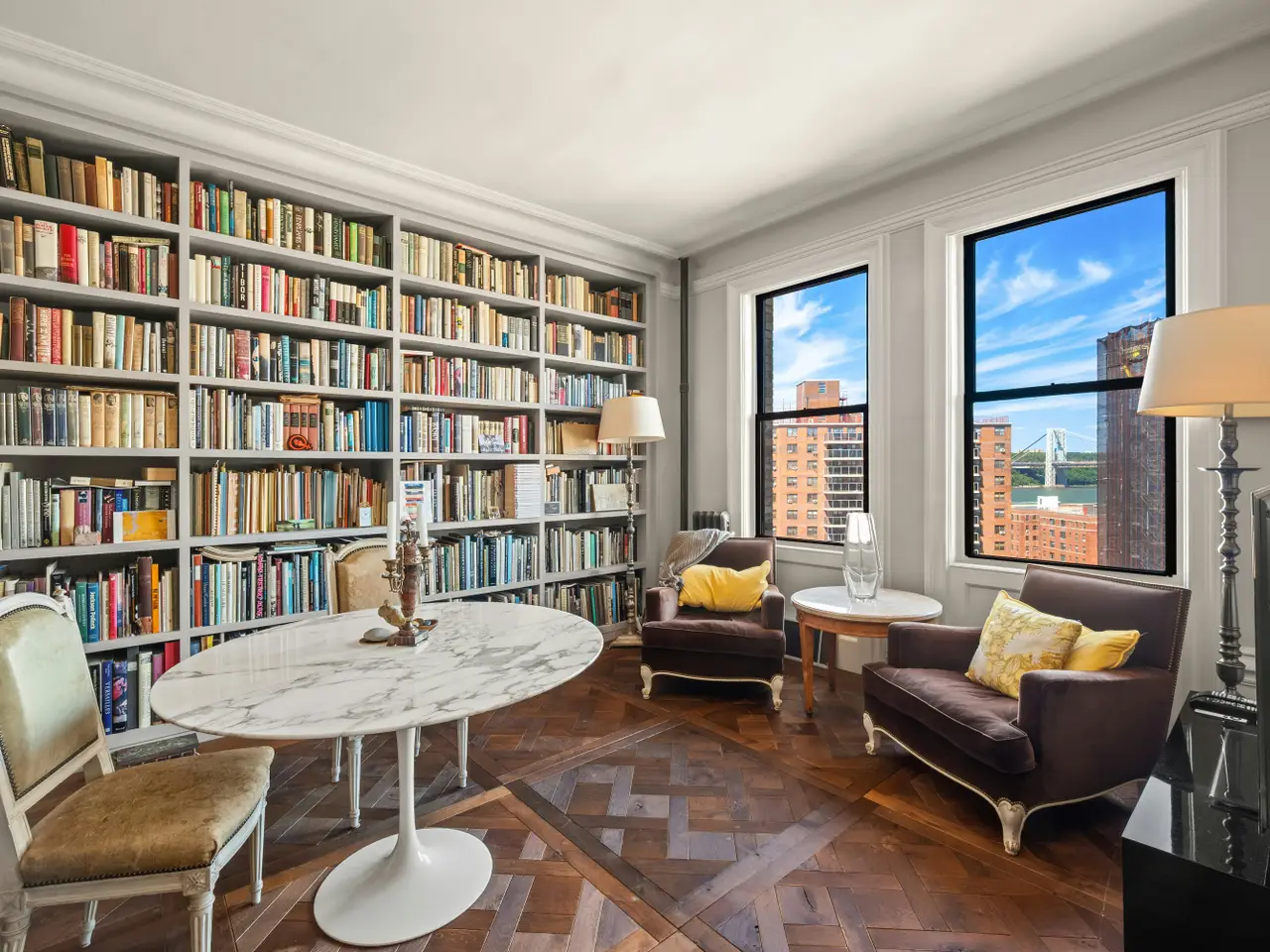 Beautifully renovated, bright and sunny 2300 square foot 3 bedroom, 2.5 bath apartment. Old world charm with a layout that meets present-day expectations: ensuite bath with herring-bone marble floors and a standing shower, and a second, hallway bath offers a contemporary deep soaking tub. Additional powder room by the kitchen. Exceptionally large living room and separate dining room/library with a row of 5 full-sized windows along one plane of the building offers floods of northern light. Large foyer area can be a gallery or could be an additional dining or office space. Contemporary, eat-in country-style kitchen with built-in shelves and custom cabinetry connect to a mudroom/laundry room with ample storage, W/D and even a view of the Hudson River. New walnut floors, repaired or replaced decorative details and mouldings to matching the original luxurious details. Legendary, block-long a EXTREMELY pet friendly Beaux Arts building, the Riviera, is served by 24-hour doorman, live-in super, and porters and handymen. A ground-level entrance is flush with the level of the lobby floor where an automatic door facilitates entry. Conveniently located one block from the #1 train station and the M4 and M5 bus stops, one stop from the A and C trains, one exit from the GWB on the Henry Hudson Parkway which is just around the corner. Block-long lush garden just outside the building, and two parks are in the vicinity: Fort Washington Park featuring the Hudson River Greenway, tennis courts, open access to the Hudson river shoreline, ball courts and play facilities is 3 blocks away and ten blocks away is Riverbank State Park well-equipped with indoor and outdoor swimming pools, roller skating and ice rink, track, and sports fields as well as rentable gardening plots to grown your own veggies. Easy access to Yankee Stadium, as well as Columbia Medical Center, NY-Presbyterian Hospital, City College, Yeshiva, and Columbia University's graduate campus at 125th Street as well as the college on Morningside Heights. ALL SHOWINGS BY APPOINTMENT ONLY. Serious buyers please!