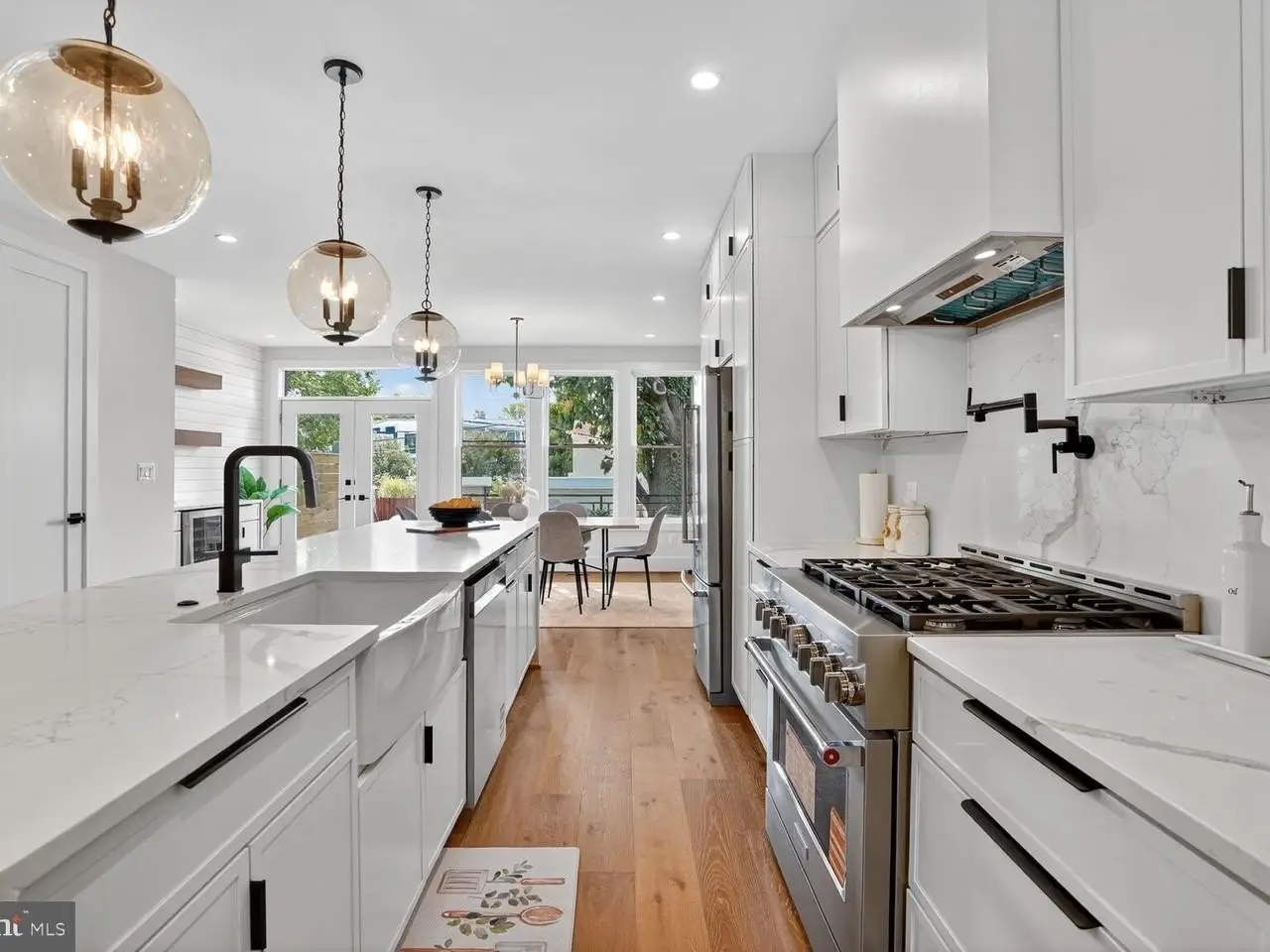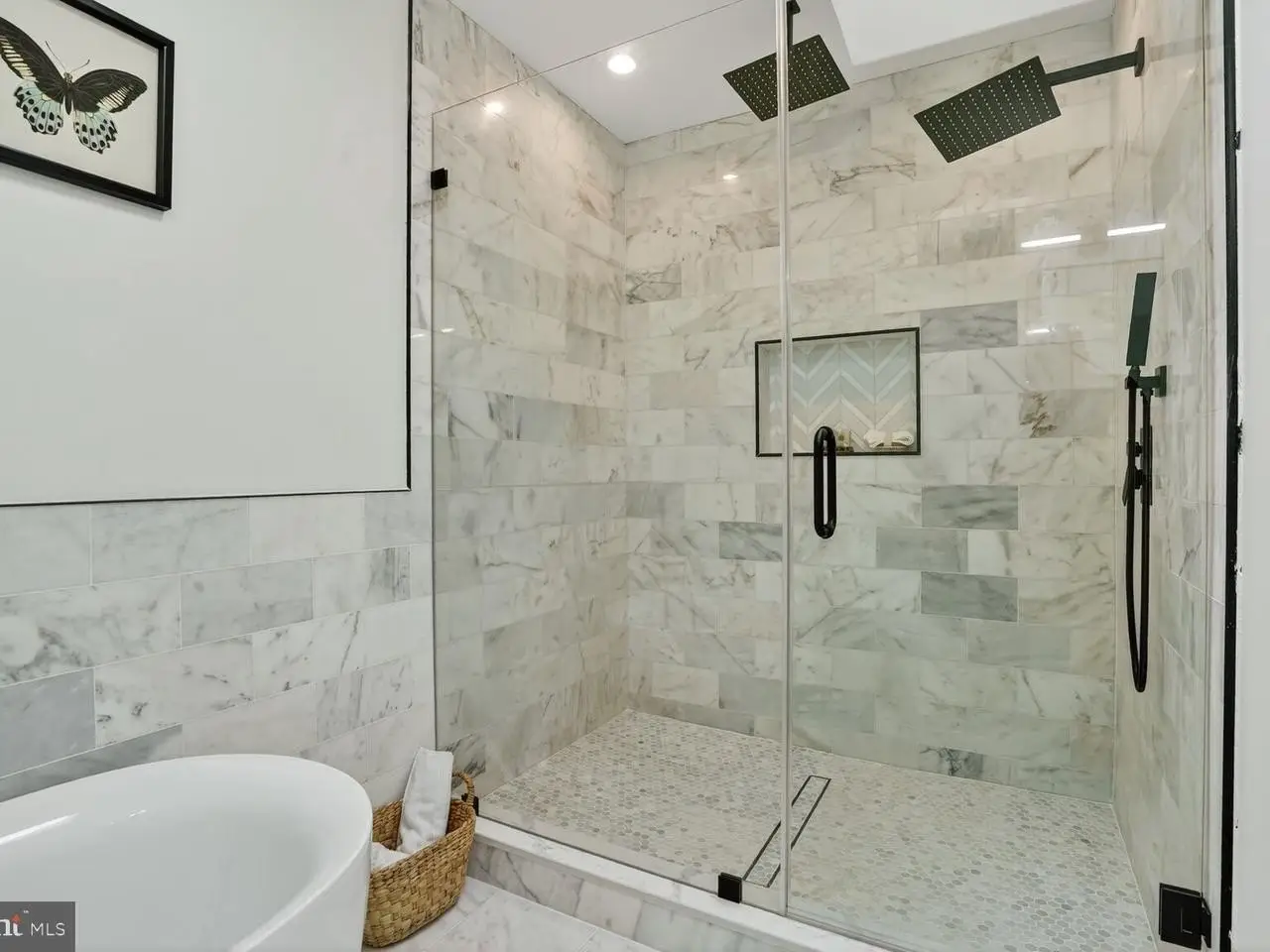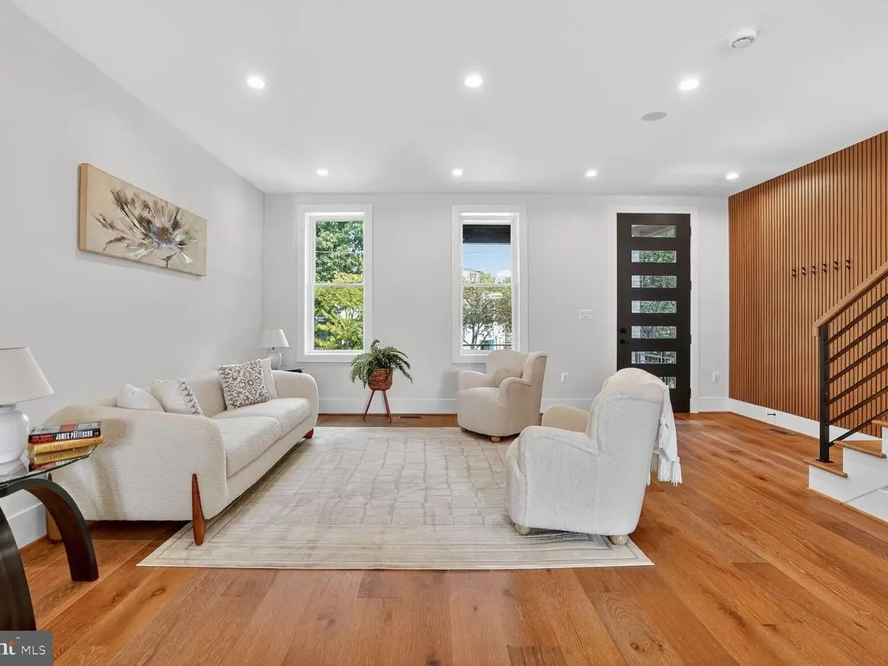 Our newest addition to the renovated canvas of Washington, this five-bedroom three-and-one half bath residence sits perched on the Northern end of 16th Street Heights. Once part of Maple Grove Farm, an 80-acre nursery that helped the green improvements of the National Mall, Capitol, and White House grounds this understated and impeccably designed home has every modern convenience, vast green spaces and subtle designer details that exceed expectations. The latest master piece built by prolific local builder Center Point Homes. This block of Longfellow Street is tree lined and bucolic, with large front porch Wardman homes. A front green space, dotted with evergreens and lower-level front entrance greet you as you ascend the concrete steps to the front porch. The six-panel windowed steel door with transom is the perfect blend of modern, hinting at the Architectural integrity of the open concept living beyond. Requisite rustic oak engineered flooring underfoot and so much more to take in; massive front windows, and an ample living room space. A fluted wood wall with built in coat hooks frames the front entrance. The modern kitchen boasts fixtures a gourmet chef would demand. Stainless Kitchenaide appliances with a built in 36- inch six burner range with accessible pot filler, ample storage in stacked ceiling height modern shaker cabinetry, and seating for six at the waterfall quartz stone island and a deep farmer's sink. A wall oven and convection microwave make the space complete. An oversized dining space adjacent to the island features a wood panel wall for texture and a wine bar area with banquet space and whitewashed shiplap and custom shelving. French doors lead to the oversized Trex deck with privacy screens and custom metal railings. Ascend the modern stairs with down lit riser lighting and custom metal railings to the primary suite. You are welcomed to the space with oversized windows, nine-foot Cathedral ceilings, double closets with built in walk-in spaces and an ensuite spa bathroom. Double vanity sinks, frameless glass shower, pedestal soaking tub, a skylight and elegant timeless Carrera marble tile surround. The second and third bedrooms are serviced by an equally furnished hall bath with soaking tub. A full-size stackable washer and dryer complete the level. The lower level is a guest or nanny suite with rear and front entrances, bar area, recreation space, a full bath, and warm engineered flooring. A main bedroom, and additional bedroom or office space flanks the rear of the lower level with walk out access to the rear yard through a lower-level area way that serves as a second patio. The rear yard is a verdant green space with plat areas for entertainment or any gardening you may fancy. A two-car off street parking pad in zero maintenance poured concrete provides access to the paver alleyway. A commercial roll up garage door and electric vehicle charging port finish the space. All systems are new, plumbing, 200 AMP electrical service, and dual HVAC systems for true two zoned heating and cooling. All windows low E double Thermal Pane, and double hung. New cool white TPO roofs, and Trex decking installed. If you are looking for timeless elegance in a suburban/urban setting, with easy bus access to all of the Metropolitan area, this is the home you have been hoping would come along. Make this elegant part of history your home for a lifetime.