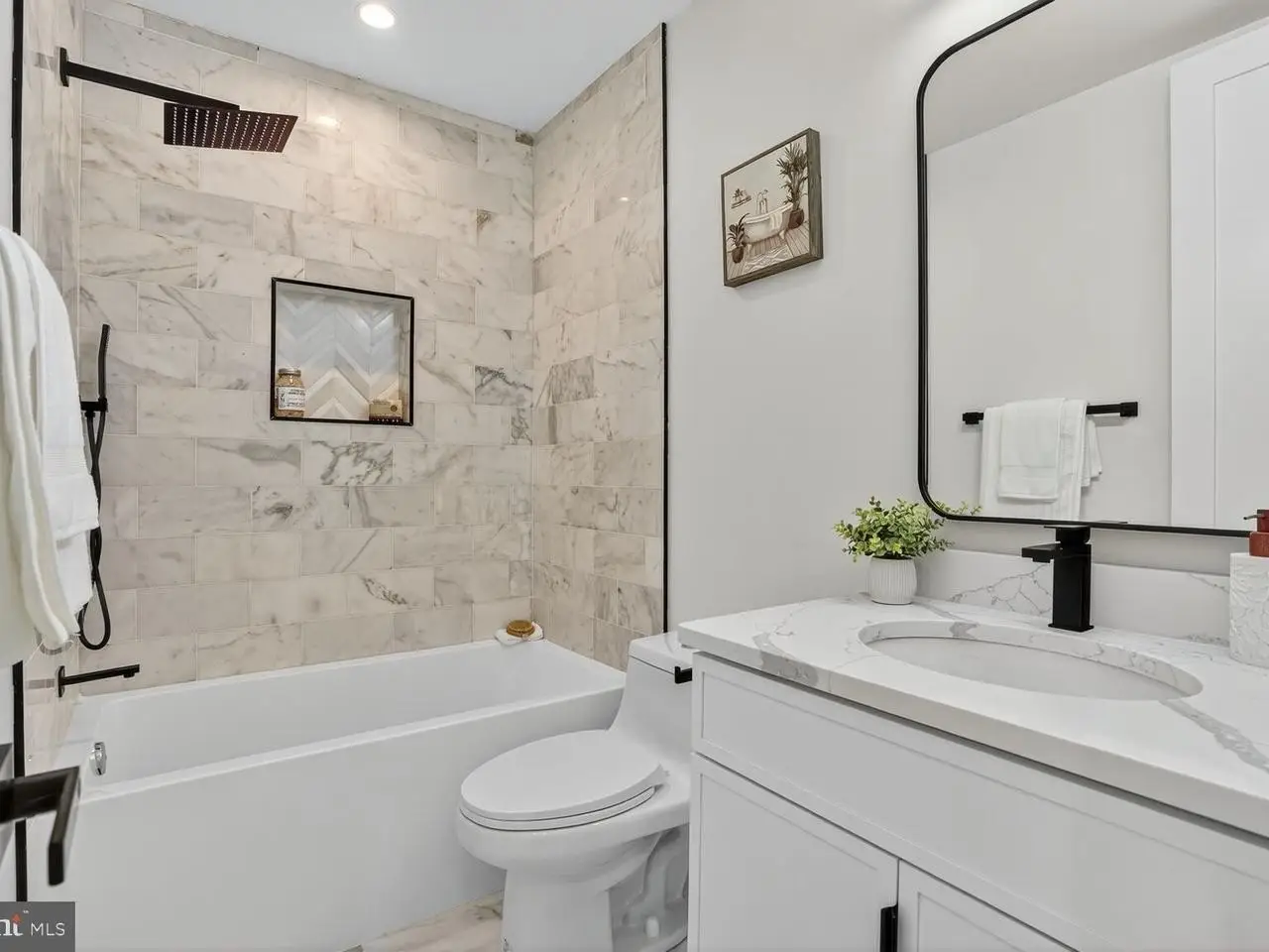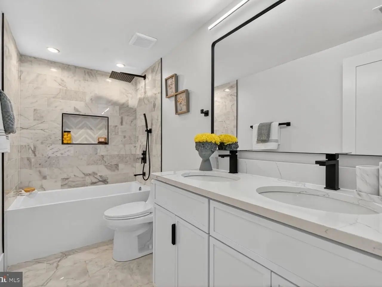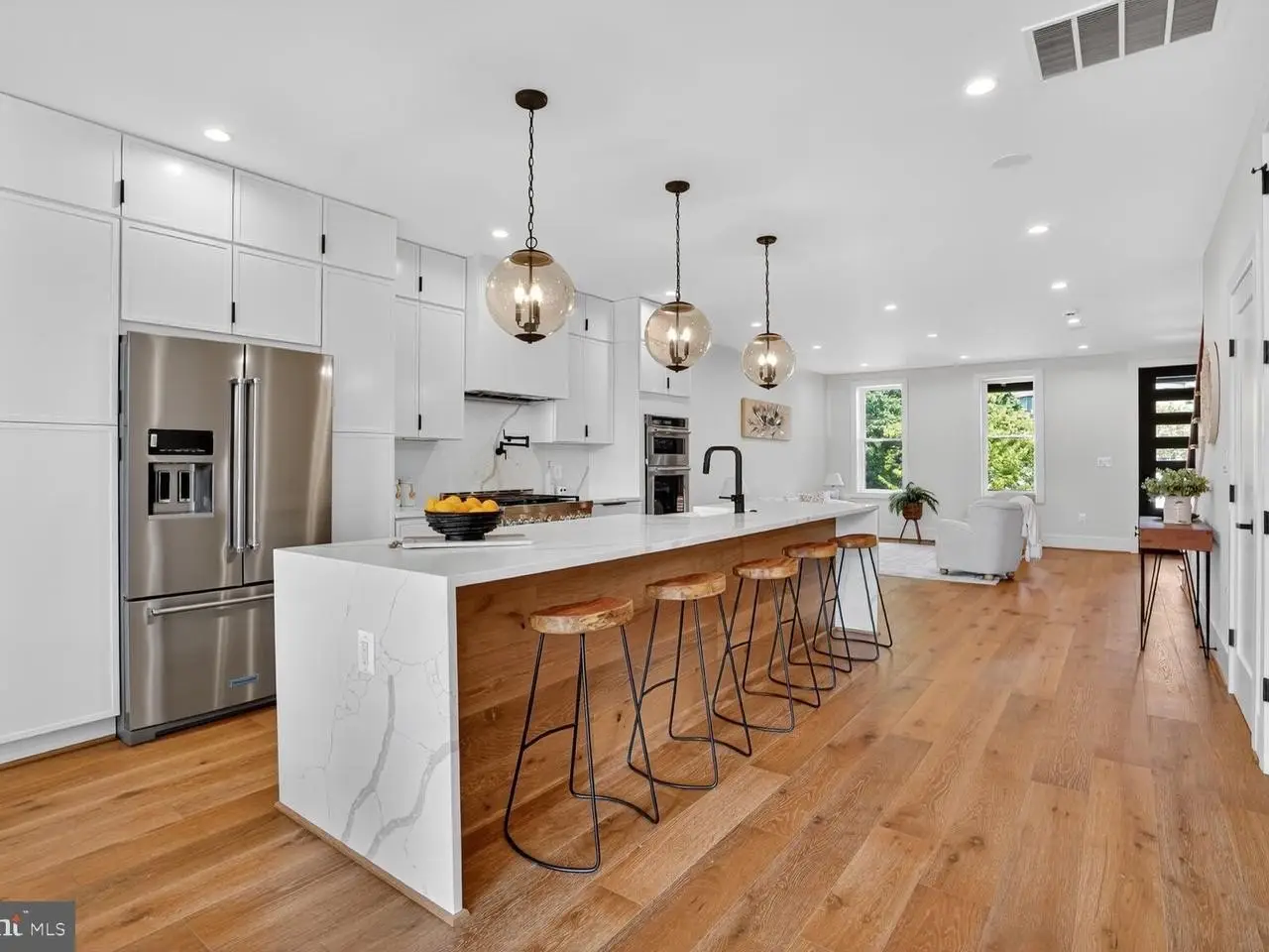 Our newest addition to the renovated canvas of Washington, this five-bedroom three-and-one half bath residence sits perched on the Northern end of 16th Street Heights. Once part of Maple Grove Farm, an 80-acre nursery that helped the green improvements of the National Mall, Capitol, and White House grounds this understated and impeccably designed home has every modern convenience, vast green spaces and subtle designer details that exceed expectations. The latest master piece built by prolific local builder Center Point Homes. This block of Longfellow Street is tree lined and bucolic, with large front porch Wardman homes. A front green space, dotted with evergreens and lower-level front entrance greet you as you ascend the concrete steps to the front porch. The six-panel windowed steel door with transom is the perfect blend of modern, hinting at the Architectural integrity of the open concept living beyond. Requisite rustic oak engineered flooring underfoot and so much more to take in; massive front windows, and an ample living room space. A fluted wood wall with built in coat hooks frames the front entrance. The modern kitchen boasts fixtures a gourmet chef would demand. Stainless Kitchenaide appliances with a built in 36- inch six burner range with accessible pot filler, ample storage in stacked ceiling height modern shaker cabinetry, and seating for six at the waterfall quartz stone island and a deep farmer's sink. A wall oven and convection microwave make the space complete. An oversized dining space adjacent to the island features a wood panel wall for texture and a wine bar area with banquet space and whitewashed shiplap and custom shelving. French doors lead to the oversized Trex deck with privacy screens and custom metal railings. Ascend the modern stairs with down lit riser lighting and custom metal railings to the primary suite. You are welcomed to the space with oversized windows, nine-foot Cathedral ceilings, double closets with built in walk-in spaces and an ensuite spa bathroom. Double vanity sinks, frameless glass shower, pedestal soaking tub, a skylight and elegant timeless Carrera marble tile surround. The second and third bedrooms are serviced by an equally furnished hall bath with soaking tub. A full-size stackable washer and dryer complete the level. The lower level is a guest or nanny suite with rear and front entrances, bar area, recreation space, a full bath, and warm engineered flooring. A main bedroom, and additional bedroom or office space flanks the rear of the lower level with walk out access to the rear yard through a lower-level area way that serves as a second patio. The rear yard is a verdant green space with plat areas for entertainment or any gardening you may fancy. A two-car off street parking pad in zero maintenance poured concrete provides access to the paver alleyway. A commercial roll up garage door and electric vehicle charging port finish the space. All systems are new, plumbing, 200 AMP electrical service, and dual HVAC systems for true two zoned heating and cooling. All windows low E double Thermal Pane, and double hung. New cool white TPO roofs, and Trex decking installed. If you are looking for timeless elegance in a suburban/urban setting, with easy bus access to all of the Metropolitan area, this is the home you have been hoping would come along. Make this elegant part of history your home for a lifetime.