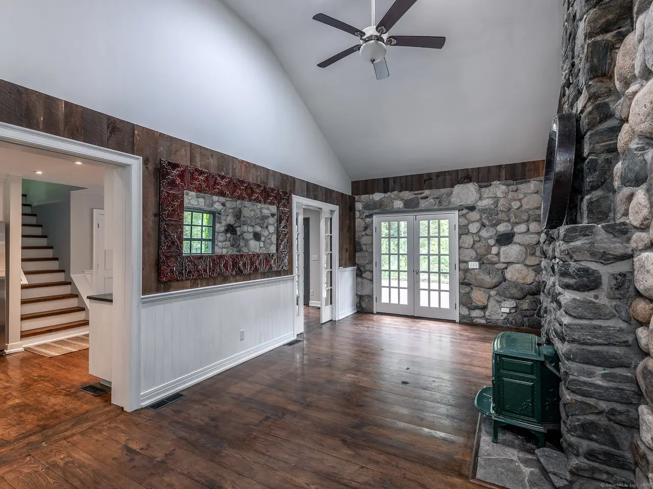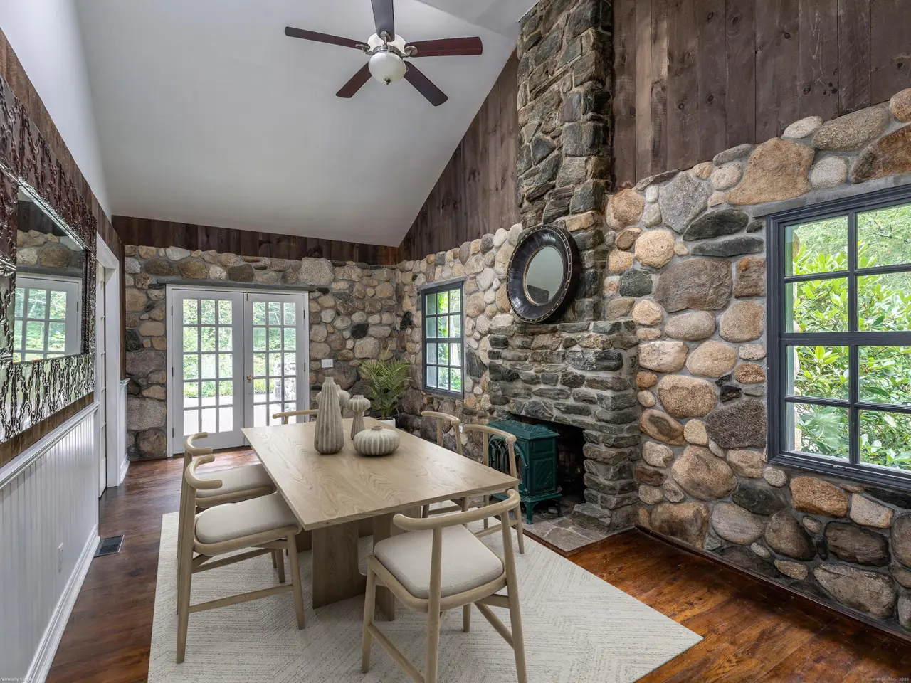 A Storybook Stone Cottage with 2000+/- feet of frontage along the Shepaug River. Step into a fairy tale with this enchanting stone cottage, where timeless charm meets natural beauty. The welcoming front terrace with wood-burning fireplace sets the stage for outdoor gatherings, all while the soothing sound of the Shepaug River echoes in the background. Inside, the warmth continues with two additional stone fireplaces anchoring the Living and Dining rooms. The main-floor primary suite opens directly to a private back terrace-perfect for morning coffee. Upstairs, two additional bedrooms share a full bath and an office nook. Follow the extensive trail system to the handcrafted stone steps into your own private swimming/fishing hole in the river. This is a truly rare and magical retreat, located on an officially designated scenic road. The property in fronted by a 1000 foot stone wall and offers direct access to miles of walking/mountain biking and borders Steeprock Land Trust. Just minutes from Lake Waramaug's beach access and the charming villages of New Preston, Washington Depot, Bantam, and Litchfield. Indoor tennis at Rumsey Hall School is just a short walk away, and the property's extensive trail network invites year-round exploration. Town shows two bedrooms but house used as three. Square footage increased slightly when dormer was added upstairs.