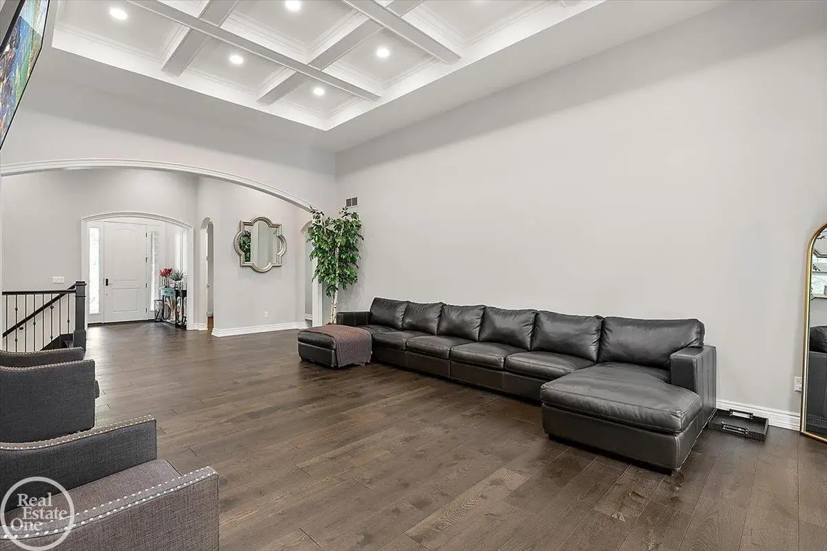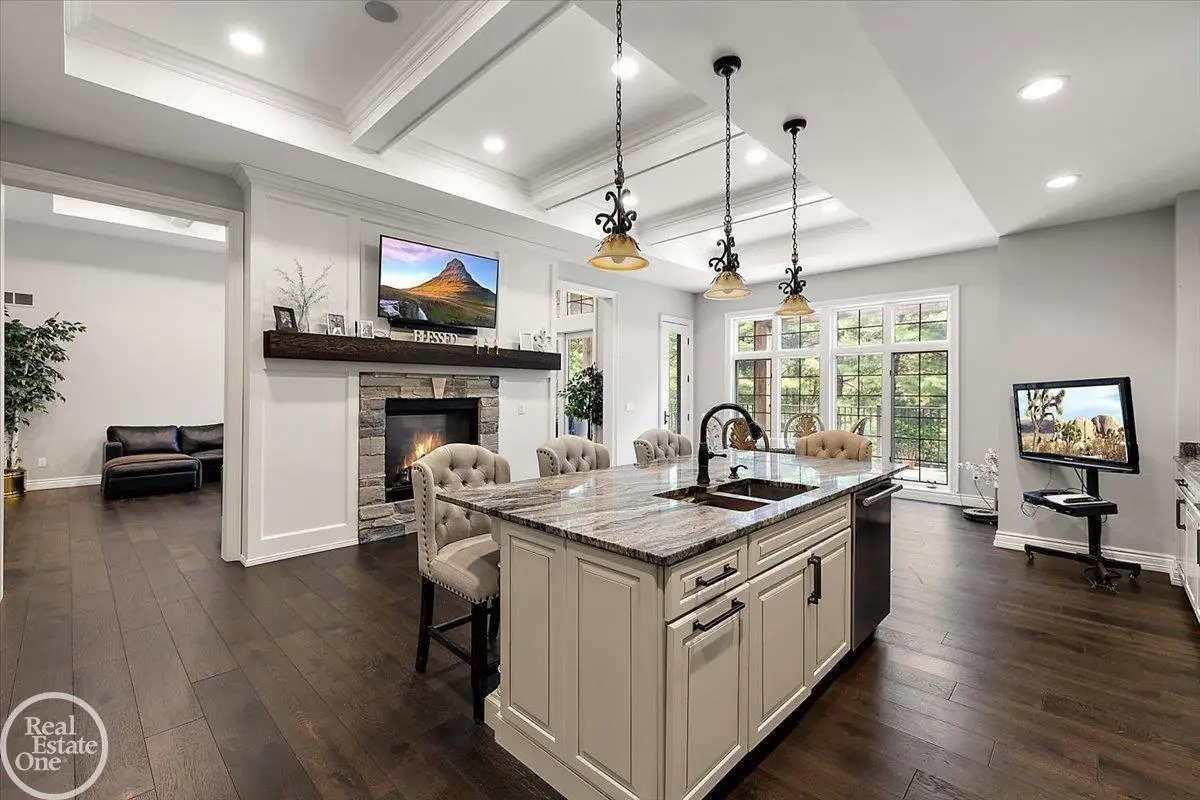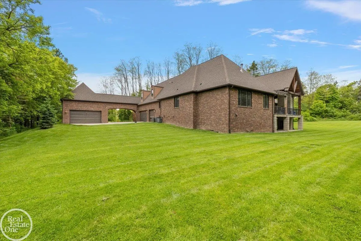 Introducing a stunning 4,600 square foot custom designer ranch situated on a secluded 2-acre lot, conveniently located near Stoney Creek Metro Park. This exceptional home features exquisite high-end finishes throughout, including beautiful wide-plank hardwood flooring covering the entire first floor. Enjoy intricately designed woodwork and elegant trim, complemented by coffered ceilings in the great room and kitchen. The gourmet island kitchen is a chef's dream with stainless steel appliances, a spacious breakfast nook, and a cozy fireplace. The impressive primary suite, nearly 1,000 square feet, comes with a sitting area and fireplace, a luxurious bathroom, and ample His and Her walk-in closets. There are also three additional bedrooms with bath access, and a second-floor suite with a full bath. The property includes garage space for six vehicles, expansive upper and lower patios with wood-burning fireplaces, and a walkout lower level with limitless potential. Enjoy the serene and private setting within the reputable Rochester Schools district.