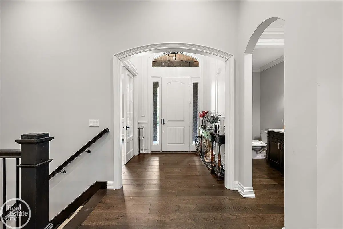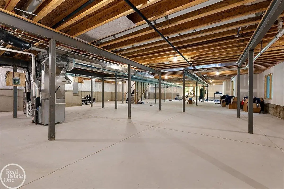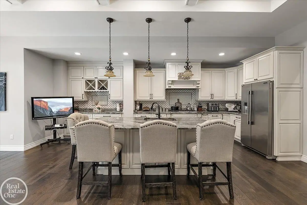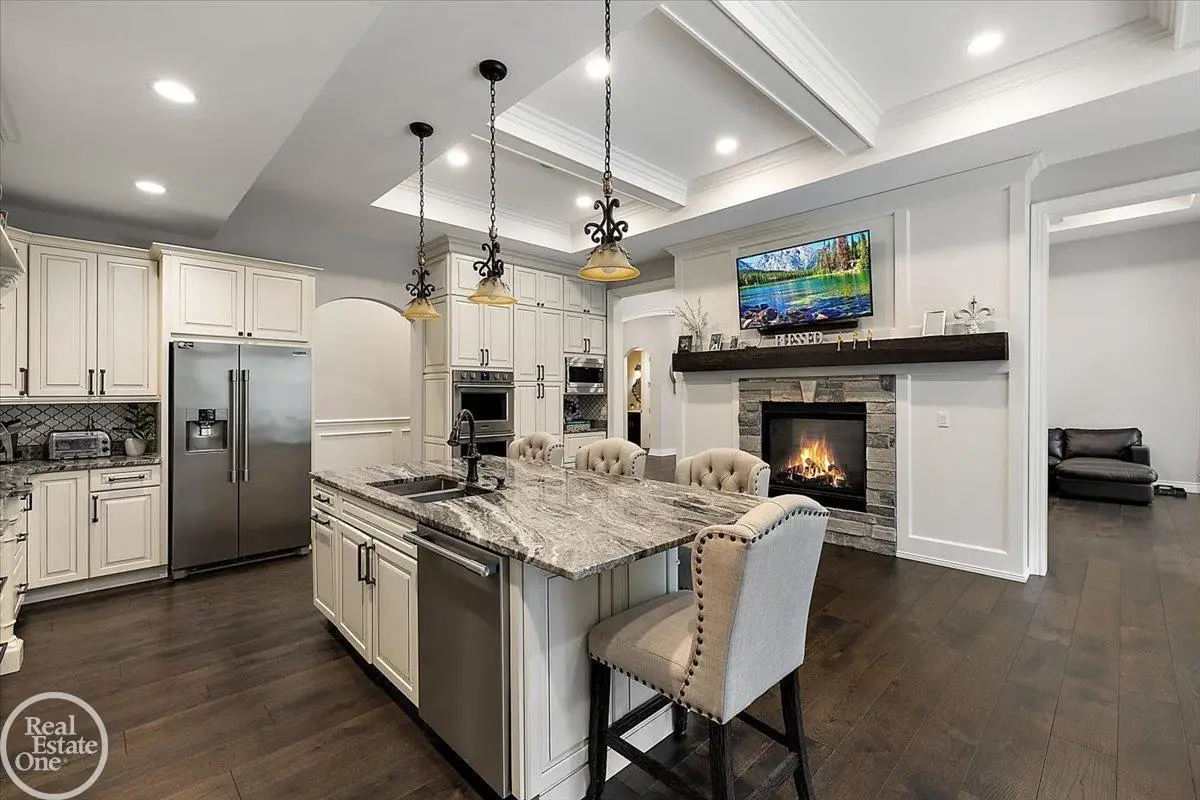 Introducing a stunning 4,600 square foot custom designer ranch situated on a secluded 2-acre lot, conveniently located near Stoney Creek Metro Park. This exceptional home features exquisite high-end finishes throughout, including beautiful wide-plank hardwood flooring covering the entire first floor. Enjoy intricately designed woodwork and elegant trim, complemented by coffered ceilings in the great room and kitchen. The gourmet island kitchen is a chef's dream with stainless steel appliances, a spacious breakfast nook, and a cozy fireplace. The impressive primary suite, nearly 1,000 square feet, comes with a sitting area and fireplace, a luxurious bathroom, and ample His and Her walk-in closets. There are also three additional bedrooms with bath access, and a second-floor suite with a full bath. The property includes garage space for six vehicles, expansive upper and lower patios with wood-burning fireplaces, and a walkout lower level with limitless potential. Enjoy the serene and private setting within the reputable Rochester Schools district.