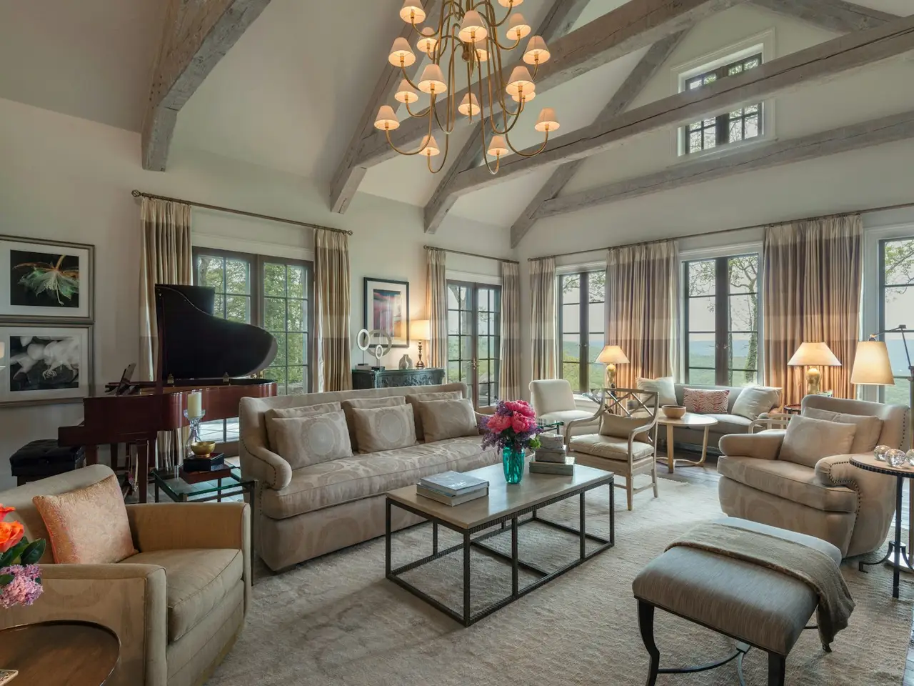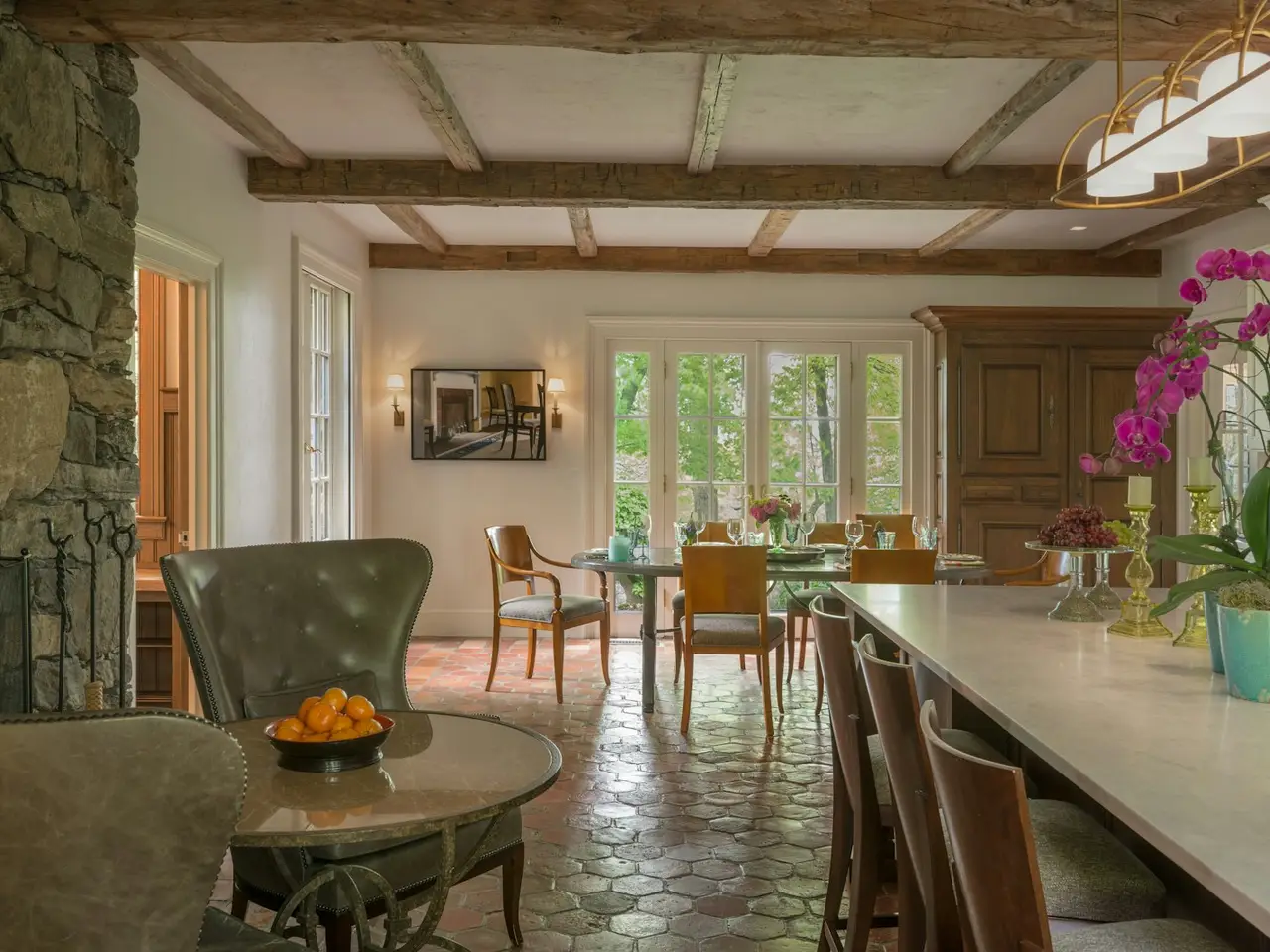 Perched on the crest of a plateau overlooking panoramic, protected views, West Wind Hill, a bespoke country estate on 389 plus acres, straddles Kent, CT and Amenia, NY. Experience this truly magnificent classic stone and shingle manor house sited perfectly to experience lush sunsets and fairytale mists with the upmost in privacy. Only eight minutes from the center of Kent and less than two hours from New York City, access is via a private gated road that winds through trees, past old stonewalls with glimpses of open meadow and a serene pond. Spacious rooms perfect for entertaining include a large great room with a soaring peaked ceiling and a 20' stone fireplace, a sun-filled formal dining room with three exposures and a huge chef's kitchen with a massive stone fireplace and adjoining catering kitchen, a marble paneled powder room and mud room. Beautiful reclaimed chestnut floors, exquisite detailing and numerous banks of windows and French doors make this an unparalleled home. The primary bedroom suite which includes a paneled library, separate office workspace and large bathroom and dressing areas--is located on the first floor in a private wing of the house. Of course, there is a billiard room, complete with mini-kitchen and bar, full bath and adjoining guest bedroom/office area. A second-floor, primary-sized guest room has a beautiful bath with soaking tub and deck that faces the amazing mountain views. Two bedroom suites with ensuite bathrooms, a charming peaked bedroom and a well-appointed office area complete this floor. The extensive and recently renovated lower level contains a media room with 9' screen, half bath, wine tasting room and wine cellar with adjoining prep kitchen for large gatherings. In addition, there is a sunny laundry room, craft room and gym with ground level access. Beautiful stone steps lead down to a stunning natural stone pool and a tennis court. There is also a two-story pool house with spiral staircase, full kitchen and full bath. The expansive two building maintenance court also contains a pumping system for irrigating the lawns and gardens.
