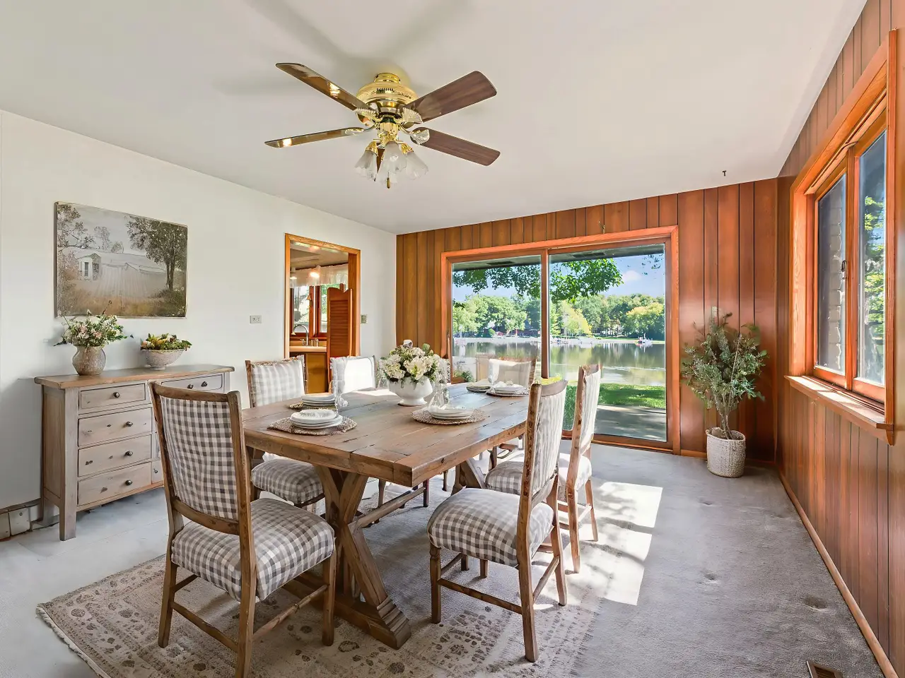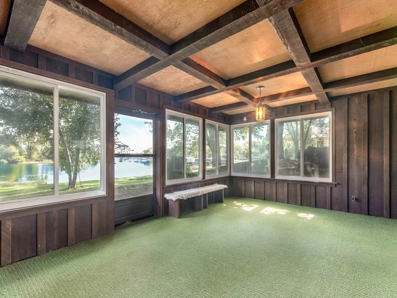 Now Available for the First Time! Discover this spacious five-bedroom home located on four lots along the Fox River, leading directly into Lake Tichigan, featuring over 200 feet of level water frontage. The stunning views are captivating from every direction. Upon entering, you are welcomed by a large tiled, slate foyer that leads to a generous great room, complete with vaulted ceilings and a striking "California Stone" fireplace that reaches the ceiling. The family room includes a cozy fireplace and connects to a three-season room for enjoying the beautiful waterfront. The kitchen, which boasts a brick pizza oven, includes a dining area with river views. The upper-level hosts five bedrooms, highlighted by a sizable primary suite with a connected bathroom, plenty of storage, its own fireplace surrounded by a wall of natural amethyst stone and a marble hearth along with access to a deck overlooking the water. A finished recreation space is perfect for entertaining. Enjoy outdoor living with decks, patios, and a covered patio for rainy days. In addition to the oversized 3-1/2 car garage, there?s a sizable, dedicated workshop area.