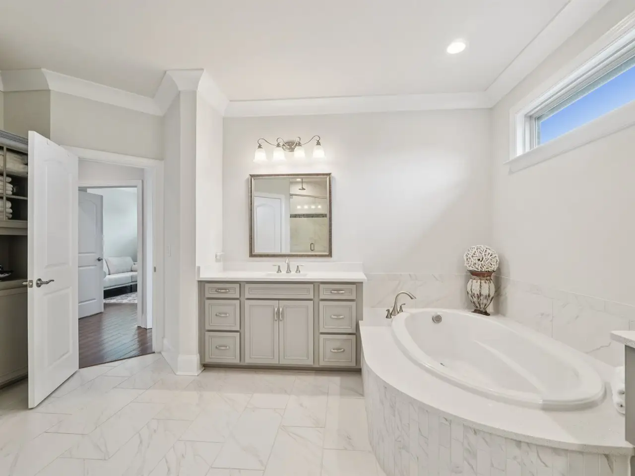 Elegant ensuite bath with soaking tub