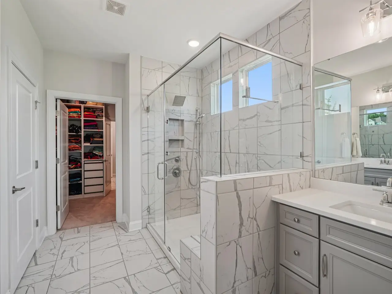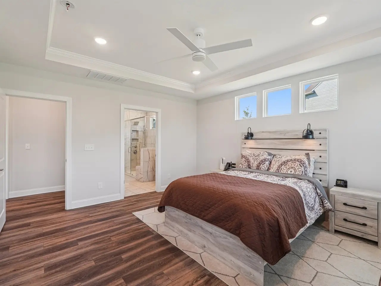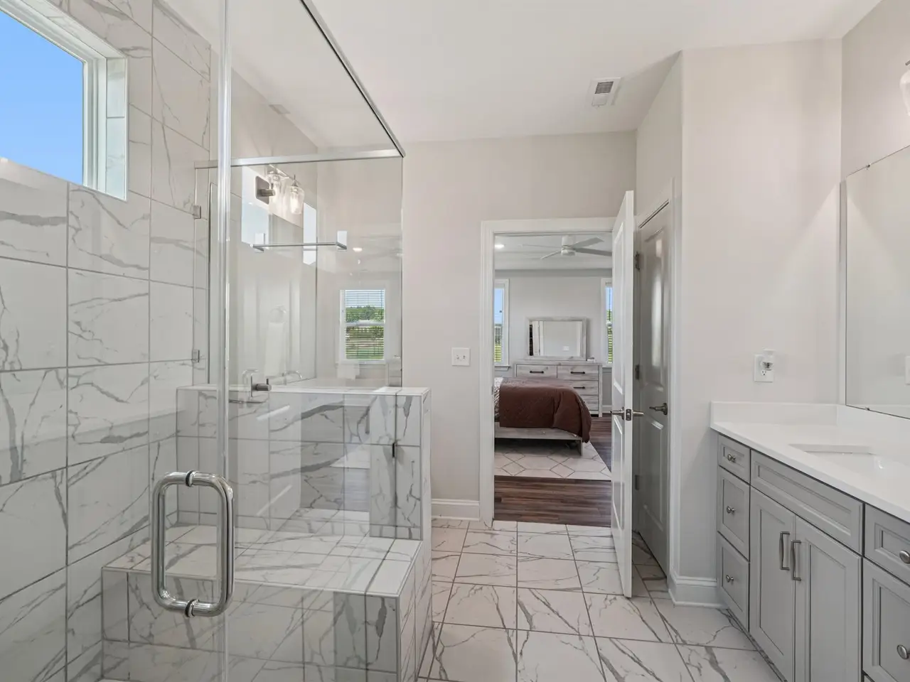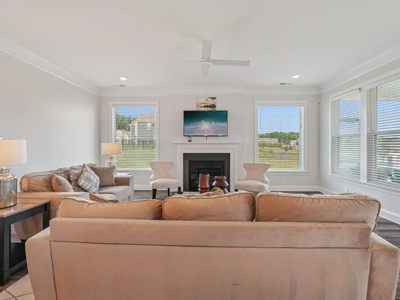 Freshly Priced! Beautiful east-facing, ranch-style home with over 2,600 SF on the main floor plus 500+ SF upstairs. The main level showcases a luxurious primary suite with spa-like shower, tray ceiling, custom closets, and quartz countertops (featured throughout the kitchen and all baths). Two additional bedrooms and full baths, a formal dining room, and a chef's kitchen with large quartz island, walk-in pantry, and drop zone complete the main level.Enjoy casual dining and gatherings in the spacious family room with gas fireplace. A private office offers built-in cabinetry, French doors to the family room, and sliding doors to the screened porch. Abundant natural light fills every space.Upstairs, a versatile loft with built-in cabinets, plus a 4th bedroom and full bath, create the perfect flex space. Outdoor living is ideal with a screened porch, paved patio, firepit, and a large, flat backyard just waiting to make this your own.Immaculately maintained and move-in ready?this home easily accommodates multi-generational living!