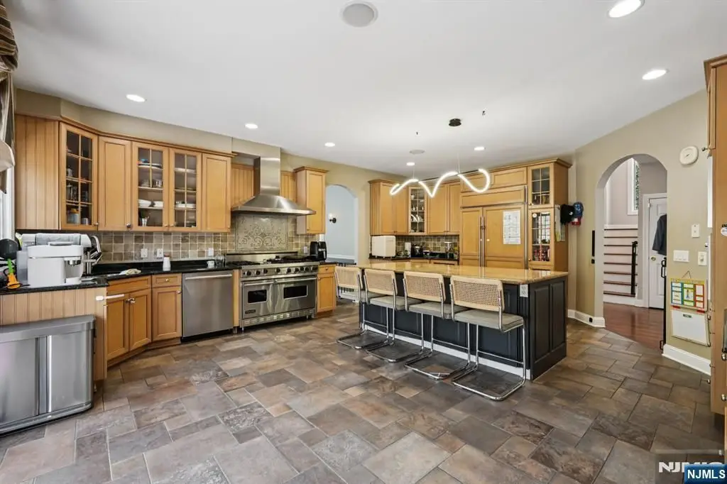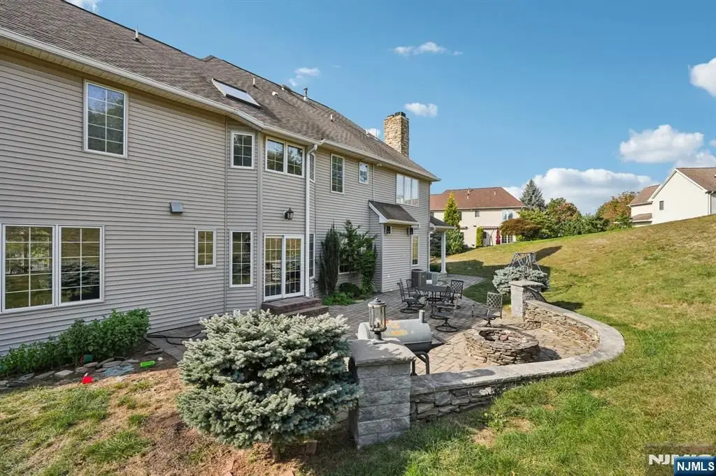 Welcome to this beautifully maintained 4,000 sq ft Colonial featuring 4 bedrooms and 3.5 bathrooms, ideally set on a large lot in one of Wayne's most desirable communities. The grand two-story foyer introduces an elegant yet inviting home, leading into the sophisticated living room with oversized windows and a striking stone fireplace perfect for relaxed evenings, lively conversation, or playtime. Flowing seamlessly from the living room, the chef's kitchen is a true centerpiece with custom cabinetry, marble countertops, high-end stainless steel appliances, a walk-in pantry, and a spacious island with seating. Sliding glass doors open to the patio, creating an effortless transition for al fresco dining and outdoor entertaining.From the kitchen, the elegant dining room offers an intimate yet refined setting for dinner parties or holiday gatherings, while the adjacent home office provides a quiet retreat for work or study. Upstairs, the luxurious primary suite boasts vaulted ceilings, fireplace, sitting area, walk-in closet, and spa-like en suite bathroom. Three additional bedrooms, convenient laundry room and full bathroom complete the second floor. The full basement with 9' ceilings and bathroom hook-up offers endless potential for expanded living space. Outdoors, a large patio and spacious yard set the stage for gatherings, recreation, and lasting memories. Two-car garage and ample driveway parking. This exceptional residence blends timeless design and modern updates.