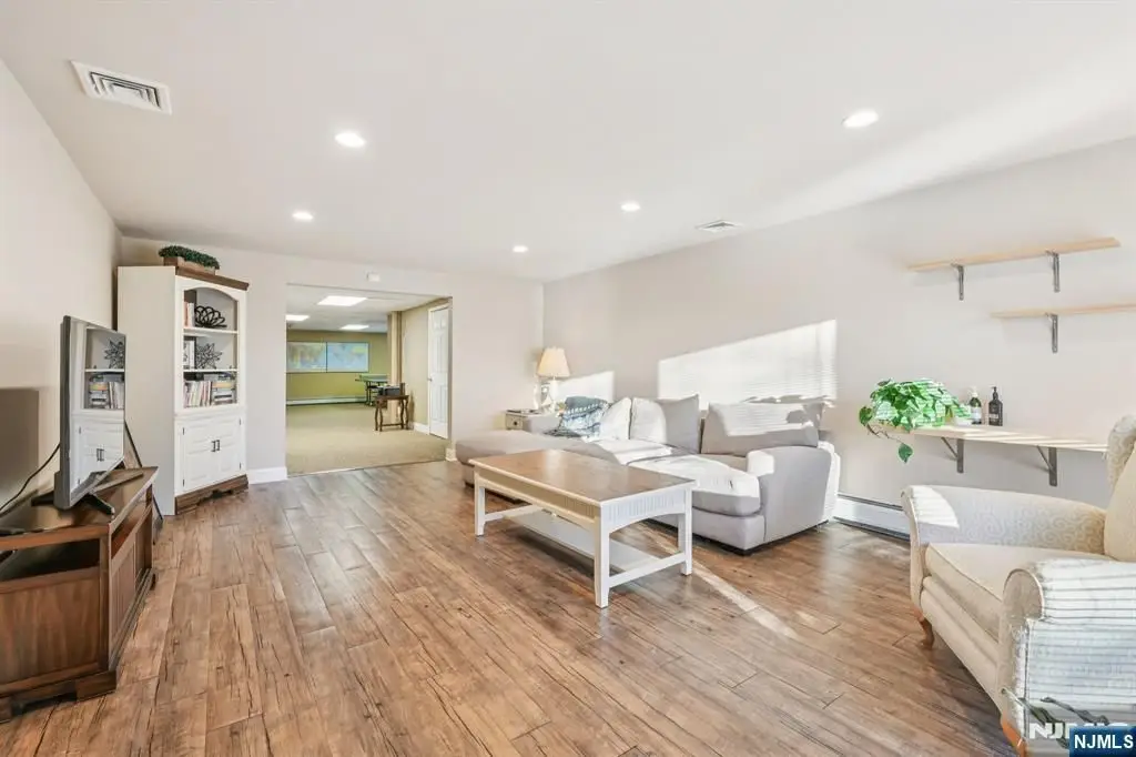 Welcome home to this beautifully maintained 4,900 sq ft Ranch nestled on a thoughtfully landscaped lot. Designed for effortless one-floor living, this spacious residence combines comfort, elegance, and functionality. Step into the welcoming entry foyer that opens to the bright, open-concept main living area. The spacious living room invites relaxation with its large windows and cozy gas fireplace, seamlessly flowing into the elegant dining room adorned with custom moulding an ideal setting for intimate meals and lively gatherings. The home chef's dream kitchen features custom cabinetry, marble countertops, stainless steel appliances, built-in desk, and separate dining area, opening to the inviting family room with large windows, fireplace, and access to the deck perfect for indoor-outdoor living. The main level offers two primary suites, each with a private en suite bath, along with two additional bedrooms and a full bathroom. The expansive finished lower level provides versatility with a second family room, gas fireplace, den overlooking the backyard, sliding doors to the patio, a third primary suite, additional bedroom, full bath, laundry, and ample storage. Outdoor living is equally impressive with a deck for al fresco dining, a patio ideal for entertaining, and a fully fenced yard offering privacy and space for recreation. Conveniently located near NYC transportation, shopping, and dining, this exceptional home offers the perfect blend of space, style, and convenience.