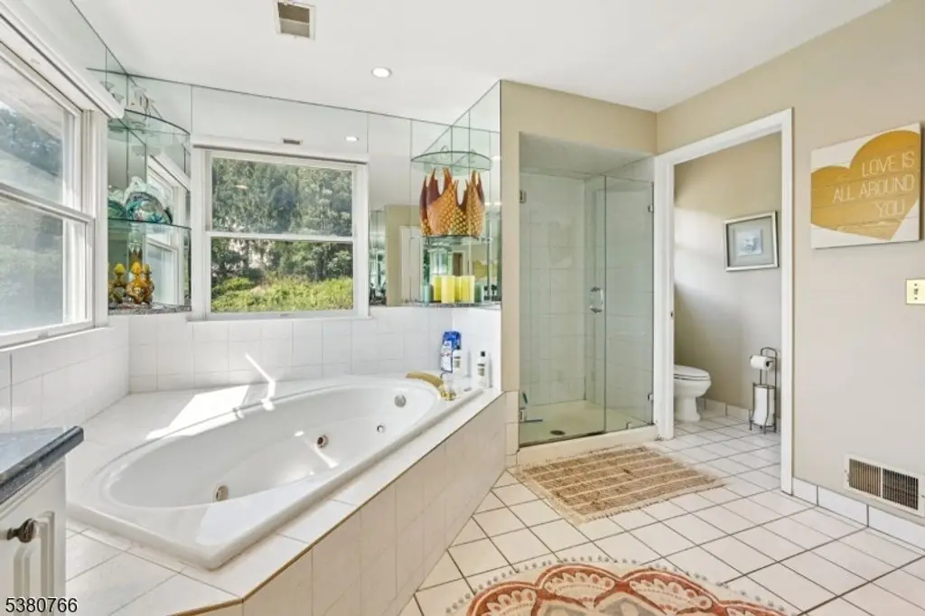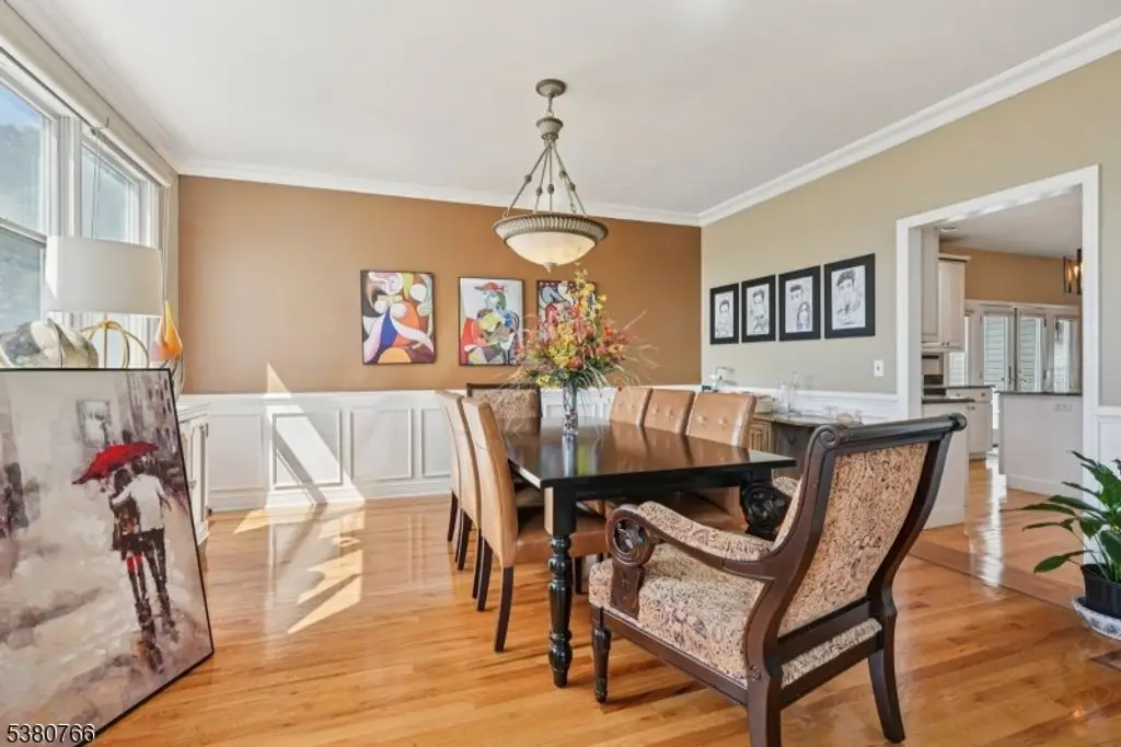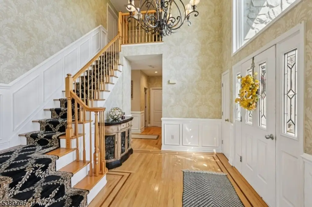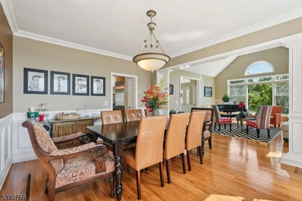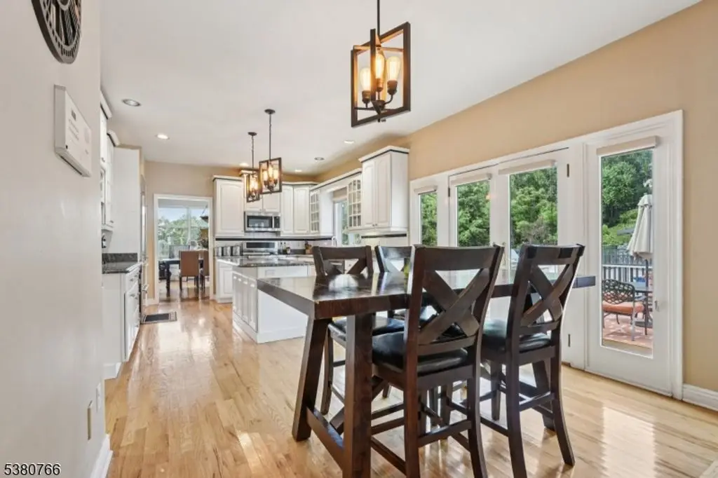 Welcome home to this exquisite 6 bedroom, 5.5 bathroom Colonial, situated on a beautifully manicured lot in the prestigious Cobblestone Woods. Step inside the elegant two-story foyer and be greeted by a sun-drenched living room with soaring vaulted ceilings, expansive windows, and gleaming hardwood floors an inviting space for relaxation and conversation. The open flow continues into the formal dining room, ideal for intimate gatherings or festive entertaining. The heart of the home is the chef's kitchen, showcasing custom cabinetry, marble countertops, premium stainless steel appliances, a center island, and breakfast area. French doors open to an expansive deck, offering the ultimate setting for al fresco dining, grilling, and outdoor entertaining. Unwind in the sophisticated family room with its cozy fireplace and seamless connection to the kitchen. Half bath and laundry complete the level. Upstairs, the luxurious primary suite boasts walk-in closet and spa-inspired en suite, while four additional bedrooms and three bathrooms provide comfort and privacy. The full finished walkout basement offers versatility with a bedroom, full bath, second kitchen, den, and access to the backyard. Step outside to your private retreat featuring a sparkling in-ground pool, patio, and lush yard perfect for play or gardening. A three-car garage and ample parking complete this remarkable property. Experience private luxury living just minutes from NYC transportation, shopping, and fine dining.