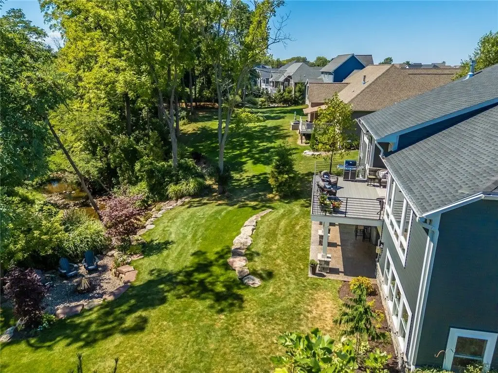 This stunning ranch was custom built in 2022 and personifies all the qualities and features that you have been wanting for your own. This home is being offered significantly under replacement price. And you can move right in! The photos showcase the features, the attention to detail as well as the architectural detail and design elements. Some of the highlights: a 12' ceiling in the very spacious great room, most interior doors are 36", A professionally finished lower level with multiple living spaces, a full bedroom and bath, a gas fireplace, barn doors, and multiple egress windows plus a walkout to a beautiful, covered patio, a private yard with stunning landscaping and firepit overlooking Four Mile Creek and an abandoned flour mill (a little piece of Rochester history). Amazing Azec deck (partially covered) off the main floor. Stairs down to creek, a sport closet off the back hall which features custom built-ins, a walk in pantry PLUS a wet bar/butlers pantry. A spectacular primary bath (roll in shower with custom glass doors) with separate dressing area, heated floors, a huge walk in closet, and it walks through to the laundry room! Both upstairs bathrooms have under cabinet motion lights. ADDITIONALLY, Some of the build features that you cannot see: Attic insulation r-49, garage walls R-15 garage ceiling R-21, gutters connected to sewers, 2x6 sidewall construction, dimple warp, form-a-drain, sanitary sewer floor drain for crock overflow (backup), plug in garage for gas powered generator includes transfer switch on panel box, tv hook ups on the deck and the patio, wine cellar under the front porch, utility sinks in the basement and the garage, stone accents on the exterior on all four sides of the house, invisible fence pet containment system, alarm system, Sonos surround sound. Delayed Negotiations until Monday, September 8th at 3pm