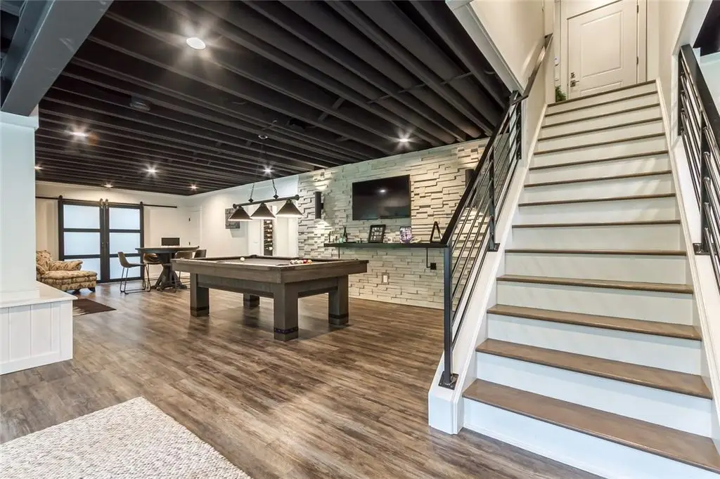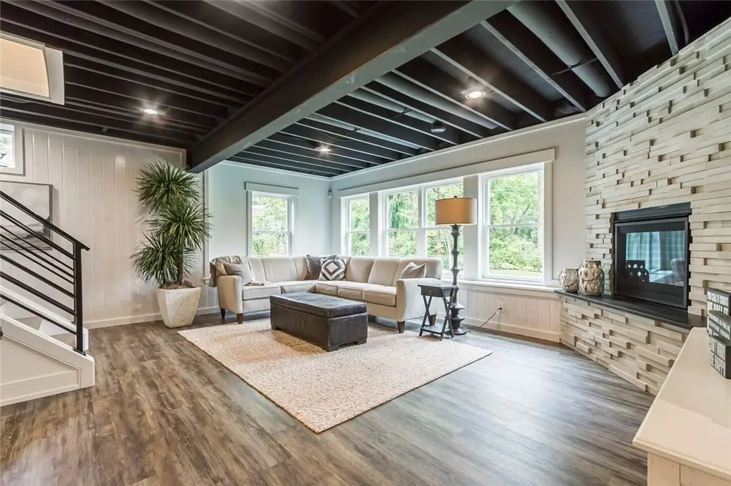 Professionally finished lower level with gas fireplace