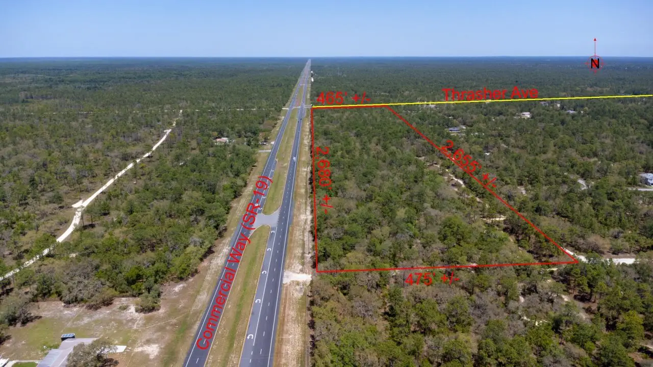 Looking to own a large corner lot for residential development and or maybe commercial? Come take a look at this 31-acre (2680 ft x 465ft) site situated directly on Highway 19, the Main Road going through Hernando County, and Thrasher Ave. Has a deceleration lane on the corner, with 22840 cars per day going passed this site. This property is less than 5 miles away from main shopping, restaurants, stores etc.THE CURENT ZONING IS R1C PER COUNTY.This land is listed below market value! Buying land in Florida is a solid investment for your future build, your dream home, vacation home, rental or investment, or let the land build value as a great long-term investment to resell for a future profit.
