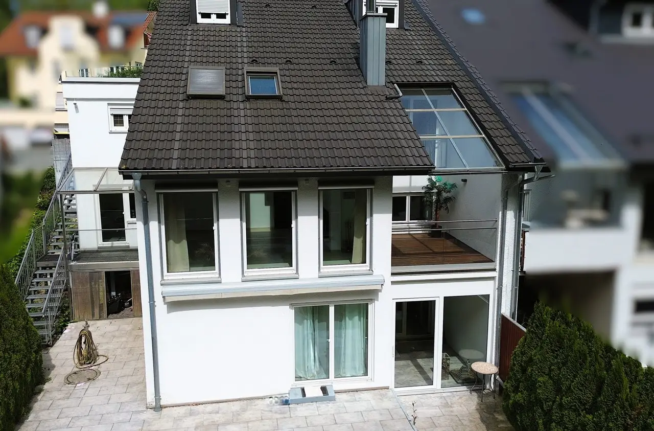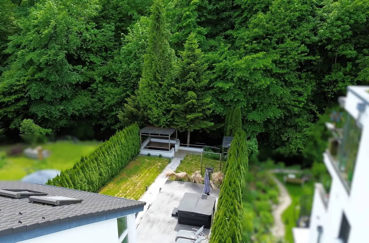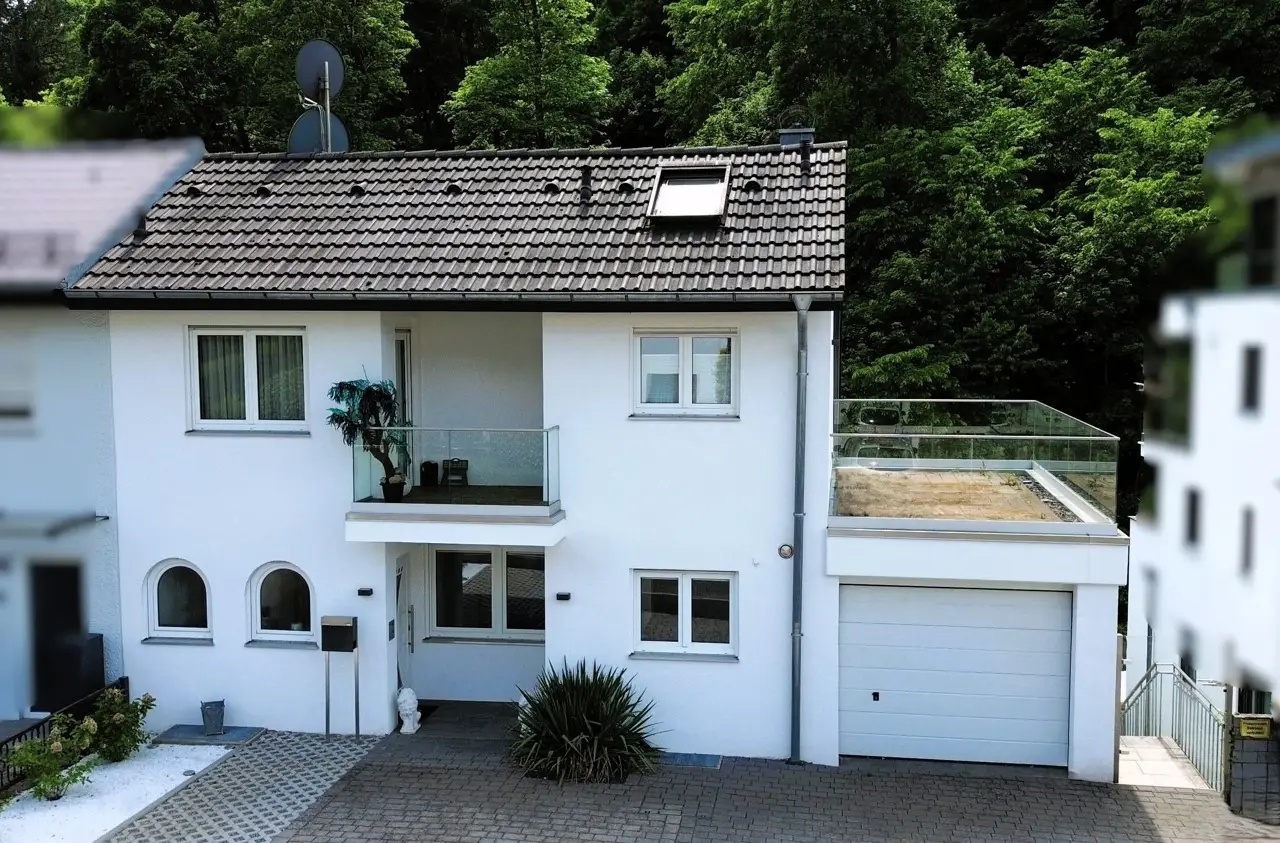 This high-quality semi-detached house with a living space of approx. 225 m² and a plot of approx. 468 m² offers you generous space and a well thought-out room layout on several levels. Built in 1980, the house is in as-new condition thanks to extensive modernization and renovation work since 2007. Thanks to its quiet yet central location, this property offers an excellent combination of comfort and functionality. The property has a total of nine rooms, providing ample space for families or other uses. The open-plan living and dining area has floor-to-ceiling windows that flood the rooms with light. Two modernized bathrooms with high-quality sanitary facilities such as a corner bathtub, a shower and a bidet offer additional living comfort. The master bedroom has an adjoining dressing room, which provides practical storage space. The furnishings of the house meet the highest standards: "Galaxy Star" granite floors from India, beech wood doors and frames, underfloor heating in the dining area and electric shutters complete the high-quality living experience. A modern kitchen with granite worktop and brand-name appliances. Two fireplaces provide cozy warmth on cool days. The house has been extensively modernized and brought up to the latest technical standards. Among other things, plastic windows (some with triple glazing), roof windows, a new entrance door and an attic conversion with insulation were installed in 2007. The floor plan was also optimized. Additional improvements were added later, such as the installation of a solar system for hot water (2010), an automatic heating control system (2015) and a water softening system (2013). The heating system was last replaced in 2014. The property offers numerous outdoor areas, including three balconies or terraces, a natural stone terrace with electric awning and a barbecue area with gazebo. The garden has been carefully landscaped and has direct access to the Scherzach, which opens up further potential uses. An integrated sauna in the basement and a whirlpool in the garden area complete the offer. The house also offers a garage and four outdoor parking spaces. A local alarm system provides security. Due to the layout, it is also possible to separate a granny apartment. The property is ideal for prospective buyers looking for a high-quality, modern semi-detached house in a central yet quiet location. Arrange a viewing appointment now to get to know the property in person and discover the many possibilities.