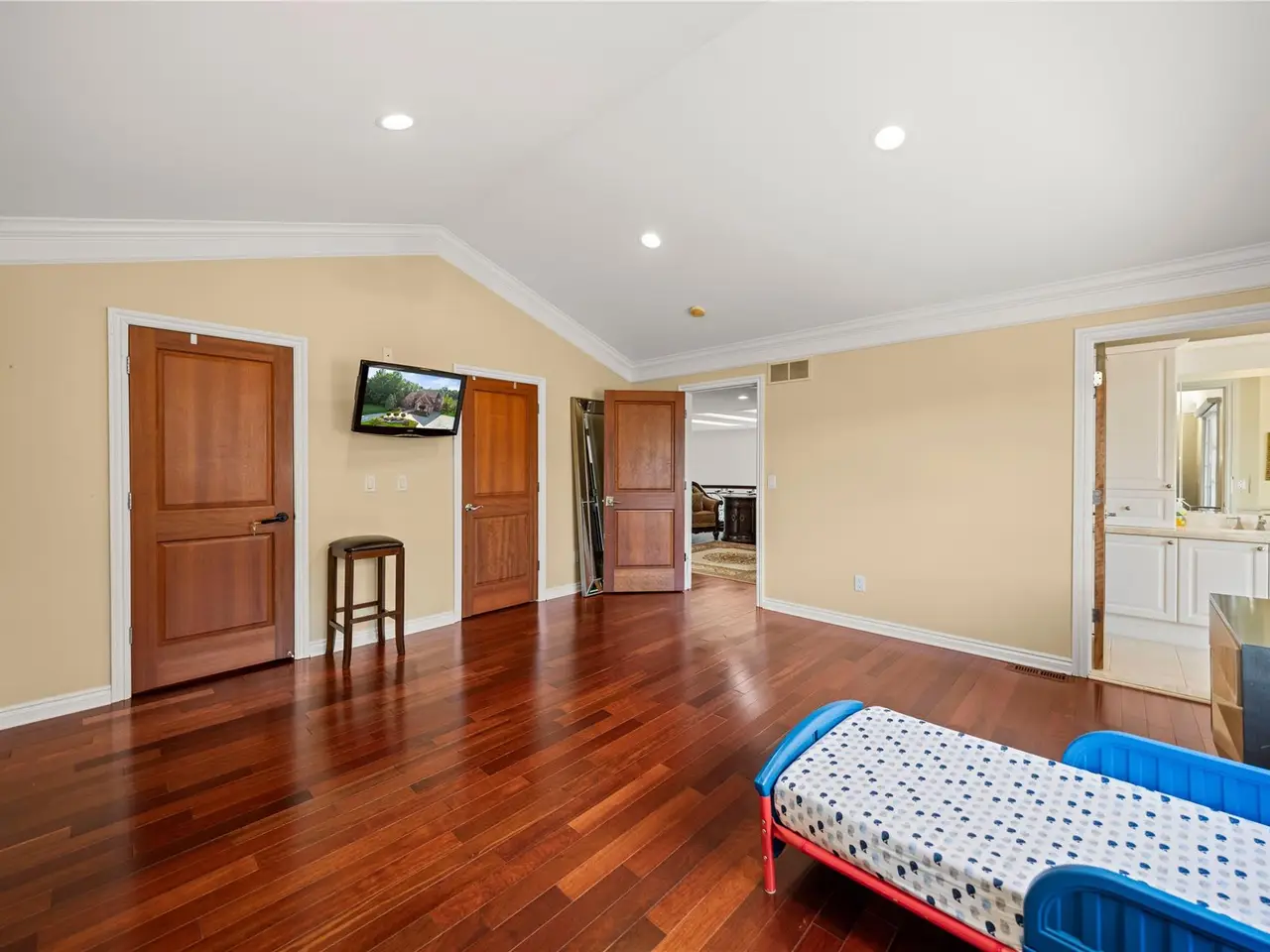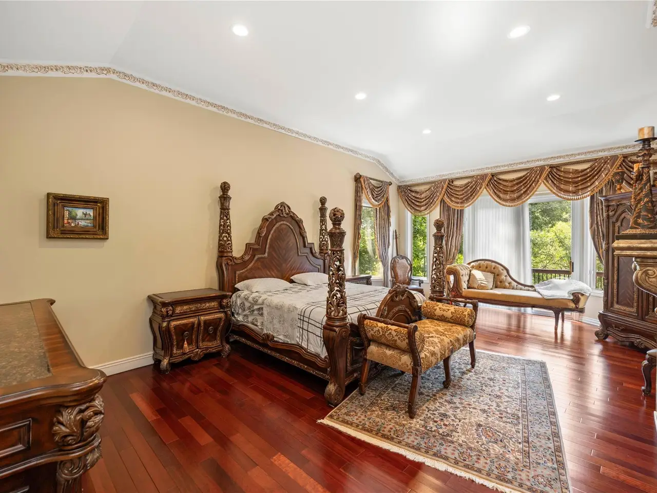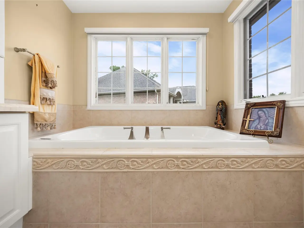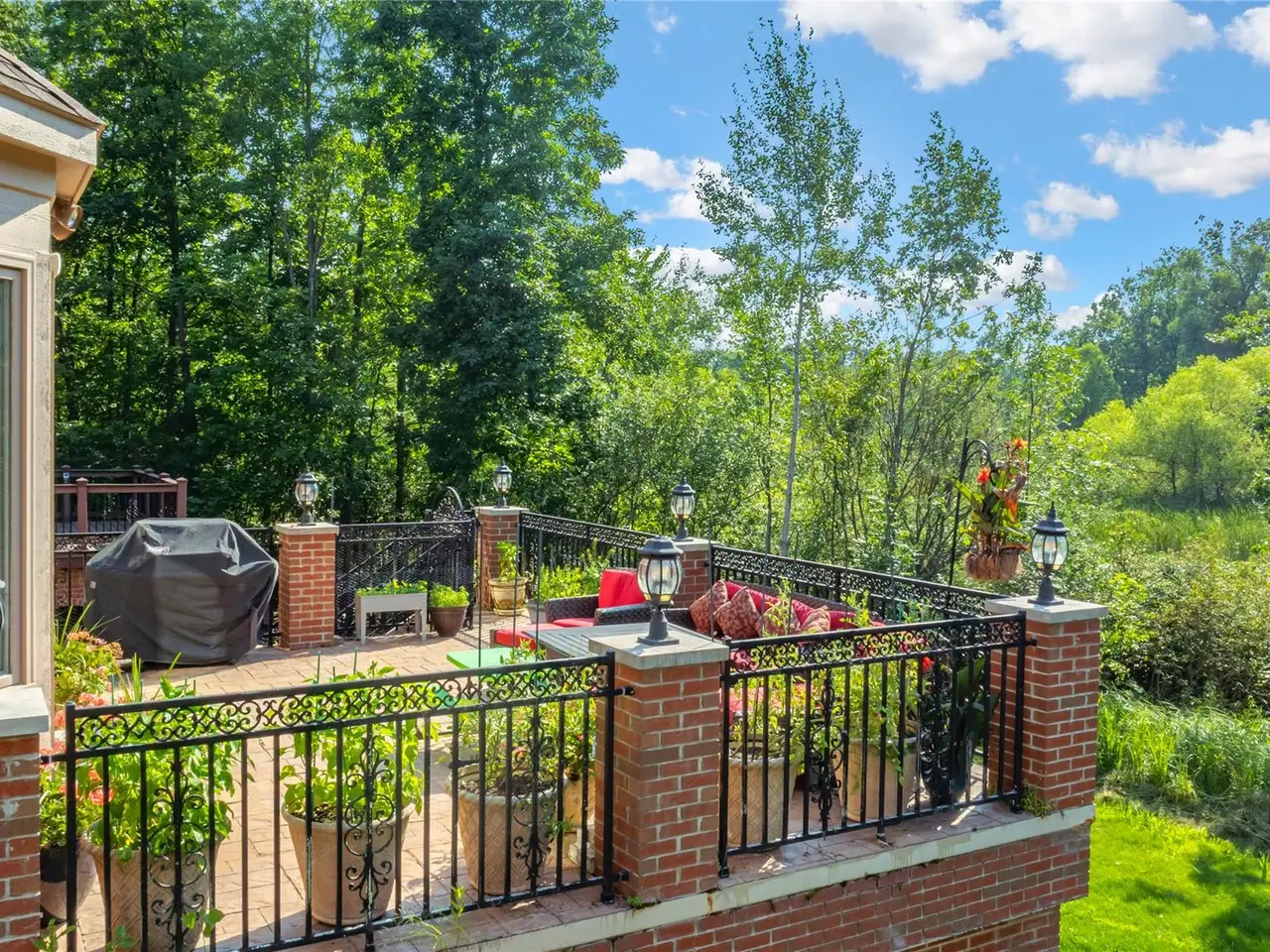 Welcome to this exquisite 4-bedroom, 3.2-bath estate featuring a coveted first-floor primary suite with a private deck overlooking beautiful woodlands. Nestled in a quiet cul-de-sac with minimal traffic, this home offers a 3-car heated side-entry garage, circular driveway, and a spacious unfinished walk-out basement with 10-foot ceilings, already plumbed for a bathroom. The gourmet kitchen is a chef’s delight with granite countertops, custom cabinetry, and premium finishes. Elegant crown molding, soaring ceilings, and generously sized rooms add a touch of grandeur, while a large bonus room with skylights above the garage provides the perfect space for a gym, office, playroom, or more. Enjoy peace of mind with a full-house generator and surveillance cameras surrounding the property. The beautifully landscaped grounds create an ideal setting for outdoor entertaining or peaceful relaxation. Conveniently located near expressways, fine dining, shopping, and more this home blends luxury, comfort, and convenience in one remarkable package.