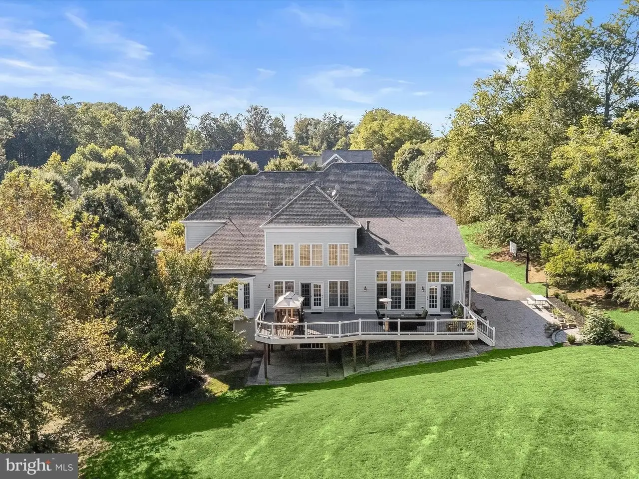Welcome to 13531 Julia Manor Way, an exquisite Pulte Compton model nestled in West Friendship. Offering more than 8,100 square feet of luxurious living space, this residence is thoughtfully designed with high-end details, modern upgrades, and serene surroundings that back to preserved land and a tranquil creek. The exterior showcases three sides of brick, a private tree-fringed rear lawn, a low-maintenance composite deck, brick paver drive and patio, and an epoxy-finished garage floor. Three sides of brick and a charming, bordered paver walk lead to a stone front porch and into the impressive foyer, flanked by a formal dining room and study. The dining room features box molding, engaged columns, and a pivot door to the kitchen, while the study is enhanced by French doors, a coffered ceiling, and a large picture window. The heart of the home is the main level kitchen, a chef's dream with vaulted ceilings, wrap-around island, upgraded quartz countertops, designer backsplash, professional stainless-steel appliances, six-burner gas cooking, wall ovens, and a walk-in pantry. A breakfast room with atrium access to the deck and a planning station add both function and style. The kitchen flows seamlessly to the family room with a gas fireplace and built-ins, as well as the soaring two-story great room where a chandelier, crown moldings, and over-mantle detail create a striking centerpiece. Two primary suites offer the ultimate in comfort, flexibility and privacy, with one located on the main level featuring French door entry, bay window bump-out, and plush upgraded carpet. The upper-level primary suite impresses with tray ceilings, decorative moldings, and a sun-filled picture window. Additional ensuite bedrooms include a private bath for Bedroom 3 and a shared Jack & Jill bath for Bedrooms 4 and 5, all with upgraded carpeting. A sixth ensuite bedroom on the lower level offers additional lifestyle options with an attached dual-entry bath and a theater room option. The fully finished, walk-out lower level is designed for entertainment and extended living. A second kitchen with breakfast bar, stainless appliances, and dining area complements the expansive recreation room with billiards space and walk-out access to a covered rear patio and lush green lawn. Abundant storage is provided by an oversized walk-in closet, while the walk-out slider door opens to a private tree-fringed rear lawn and beautiful setting. Recent upgrades ensure modern comfort, including a new constant pressure water system and conditioner (2025), reverse osmosis drinking water system (2025), LVP flooring (2024), LED recessed lighting (2024), new upper-level carpet (2024), a 30-year architectural roof (2020), and a residential elevator added in 2019. Natural gas services the heating, cooking, fireplaces, dryer, and hot water, ensuring efficiency throughout. This remarkable estate combines timeless architectural detail with lifestyle options and amenities galore, all in a private yet convenient West Friendship location.