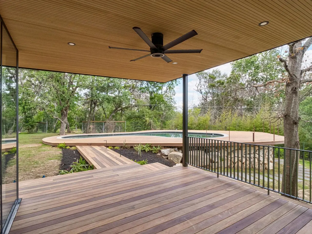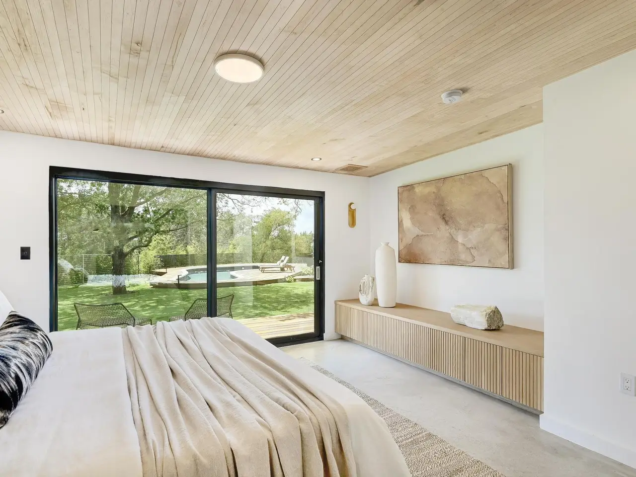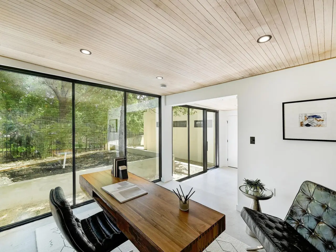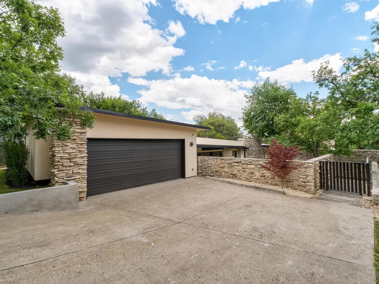 Tucked beneath a canopy of mature trees, 201 Redbud Trail invites you to experience the timeless charm of an expertly restored mid-century home, complete with a detached guest casita and pool house. Glass walls and expansive sliding doors open the home to its lush surroundings, blurring the boundary between indoors and out in the heart of central Westlake. From the moment you arrive, the architecture nods to another era -- but the updates are thoroughly modern, with elevated finishes, fixtures, and functionality throughout. The main residence features light-filled living spaces that open to patios and a pool courtyard, while the detached guest quarters include a fully outfitted outdoor kitchen -- ideal for entertaining or accommodating guests with privacy. This home offers the rare combination of architectural integrity, modern comfort, and natural seclusion -- all within Eanes ISD and just a few miles from downtown Austin and retail and dining in Westlake.