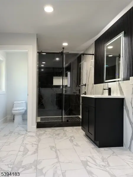Rare Opportunity! Modern 5-Bedroom Home with Manhattan View on Private Road! This stunning modern residence offers the perfect blend of luxury, comfort, and privacy. Featuring 5 spacious bedrooms, 2 full and 2 half baths, and captivating Manhattan skyline views. This home is truly one of a kind. The primary suite offers a luxury bathroom with two windows, dual sinks, a hot tub, stylish shower and a large walk-in closet. Elegant kitchen with quartz countertops and all new appliances. Enjoy an impressive 18' vaulted ceiling in the living room, sun-filled skylights, and sliding doors from the family room leading to a vast open deck. Includes a dedicated office, full-house ventilation system, and exceptional modern finishes throughout. Enjoy a fully aluminum-fenced backyard, two car garages, and a finished basement - a rare opportunity combining style, comfort, and privacy. A must see home for those seeking elegance and tranquility just nearby from the city. Minutes away from Seton Hall prep school, downtown Montclair vibe. Close to public transportation, places of worship and shopping