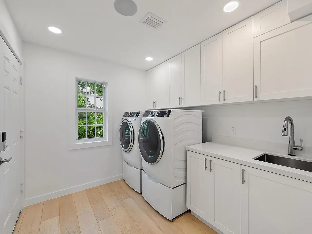 Welcome to 291 Austin Lane, a fully reimagined historic 'Mango Prominade' residence in the heart of West Palm Beach that captures the ease and freshness of new construction while honoring its 1940s heritage! Taken down to the studs in 2023, this 2,914+/- total square-foot traditional/West Indies-style gem was meticulously planned and masterfully renovated by its current owner/builder to combine timeless charm with modern luxury amenities. Light-filled and airy, the interiors are defined by a soothing white-on-white color palette complemented by handsome lightly stained wood flooring.