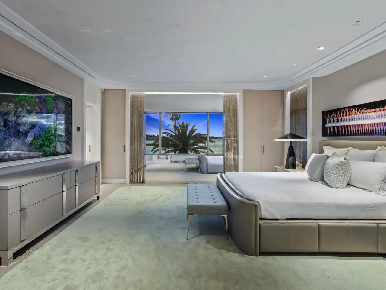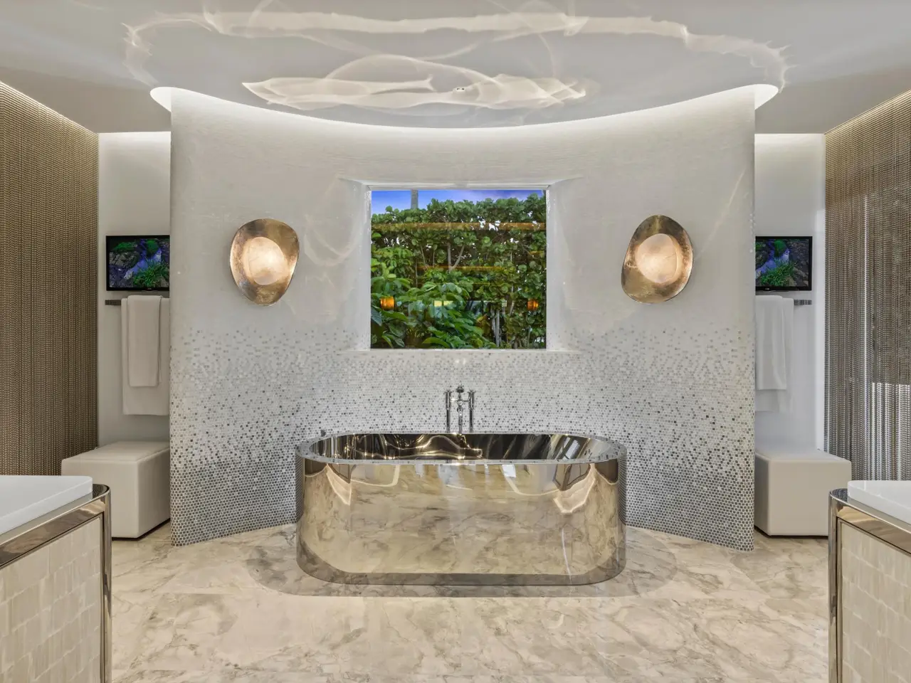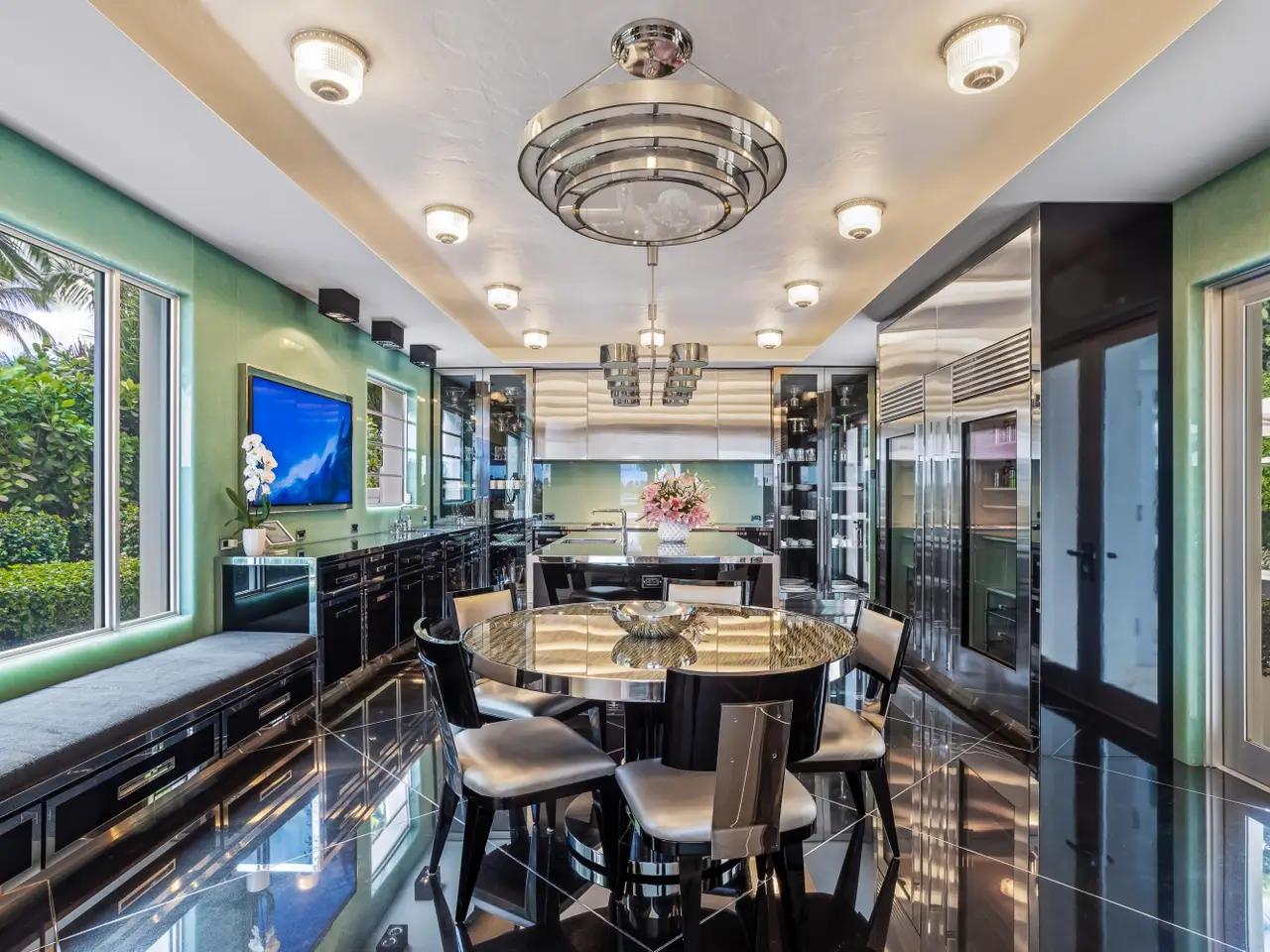 On the West Palm Beach waterfront, this 1937 Belford Shoumate iconic architectural legacy beautifully bridges its nautical moderne heritage with today's modern luxury. Thoughtfully and comprehensively updated, the home retains its signature period details- including sea-foam green terrazzo floors, wavy ironwork banisters, a graceful circular staircase crowned by a domed ceiling frieze, and a curved fireplace-all blending historic artistry with contemporary sophistication. Steamship-inspired railings, a blue-tile-lined pool, and a scrolled stucco banister leading to a side entry complete the picturesque waterfront setting. Featuring 6 BR, 7.1 Ba, elevator, 3-car garage, and outdoor kitchen, this landmark property spans 23,836+/- SF of magnificence along the Intracoastal.