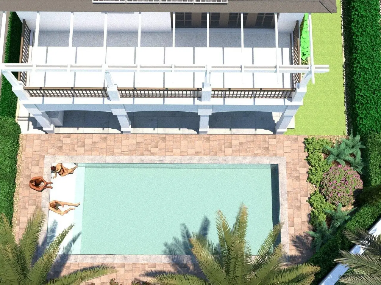 Expansive landscaped courtyard garden
