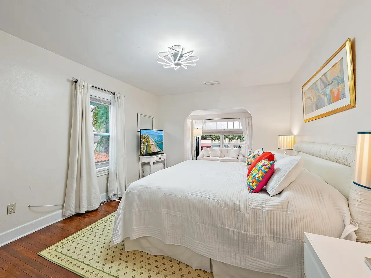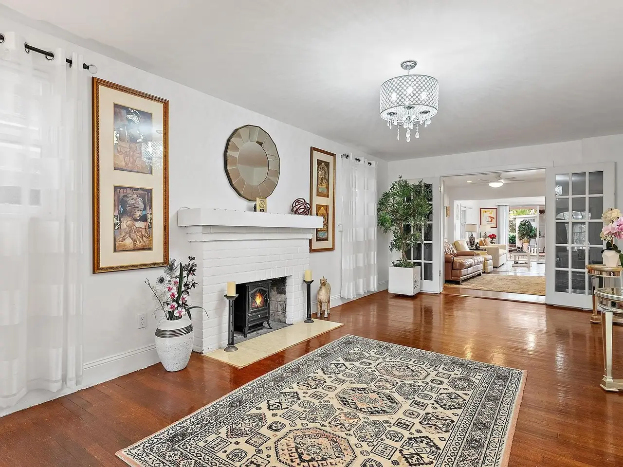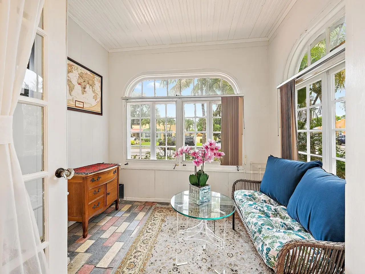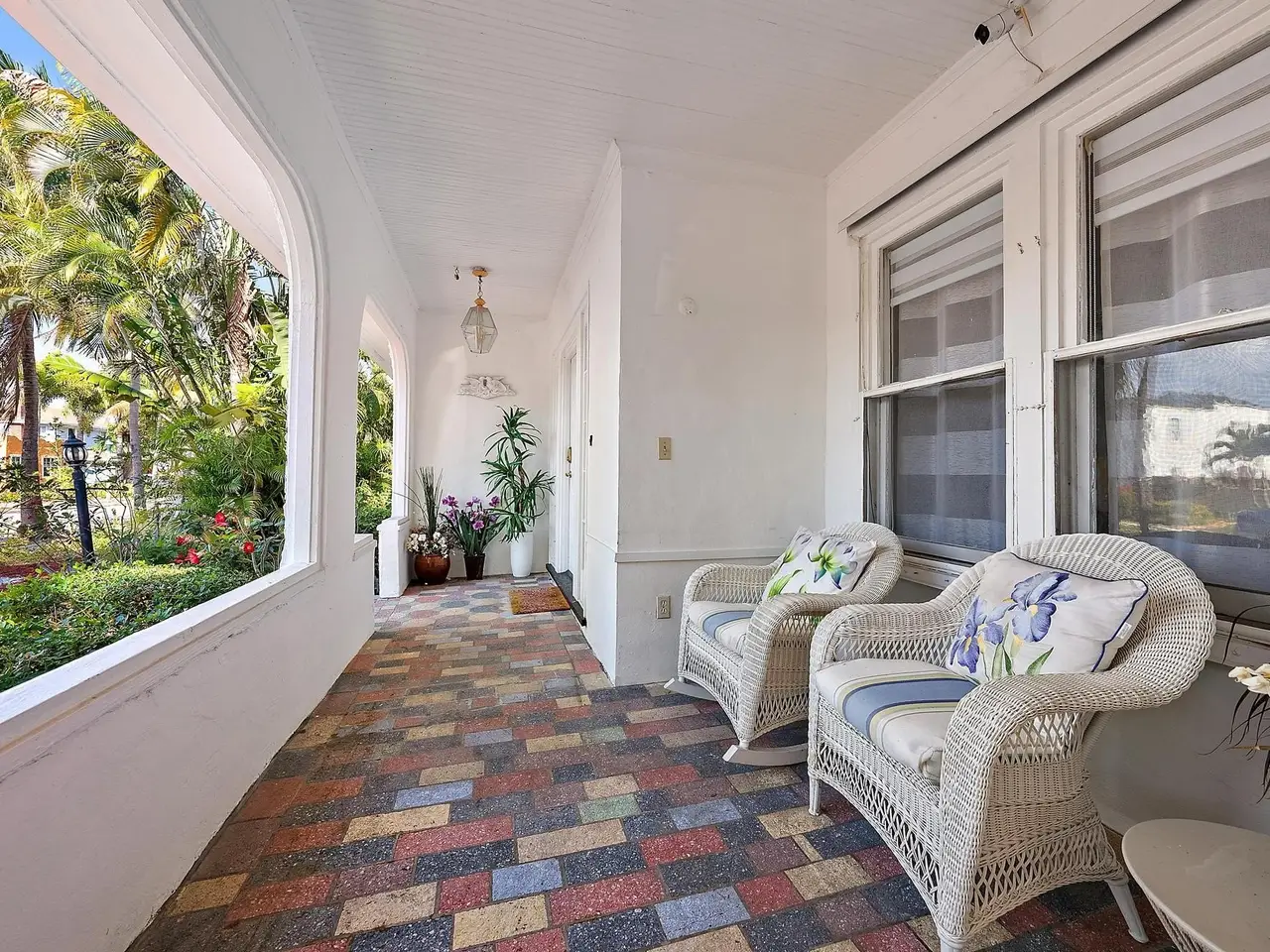An Exquisite Spanish Colonial Estate in prestigious Southland Park! Tucked away on a tree lined street in Southland Park-- one of West Palm Beach's most coveted enclaves--this restored 1920s Spanish Colonial Revival residence marries historic style with modern coastal sophistication. This 3,753 square foot estate unfolds with timeless architectural details: original Dade County pine floors, artisan beadboard molding, and graceful arched windows that flood its rooms with verdant garden and treetop vistas.