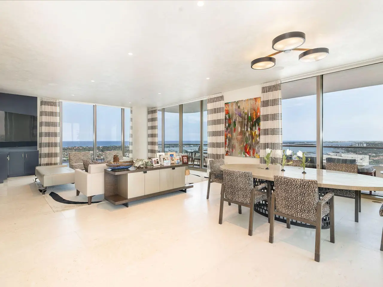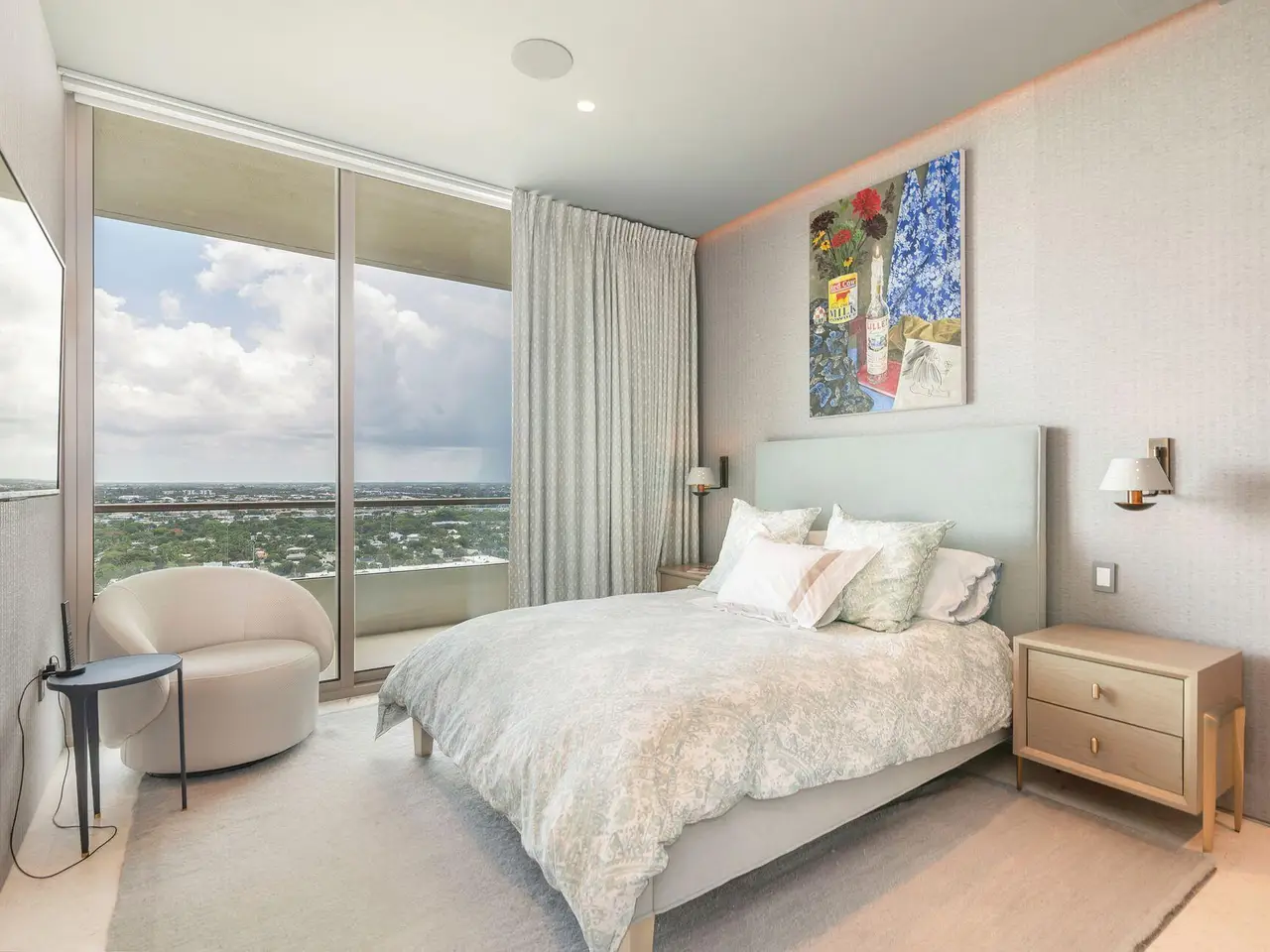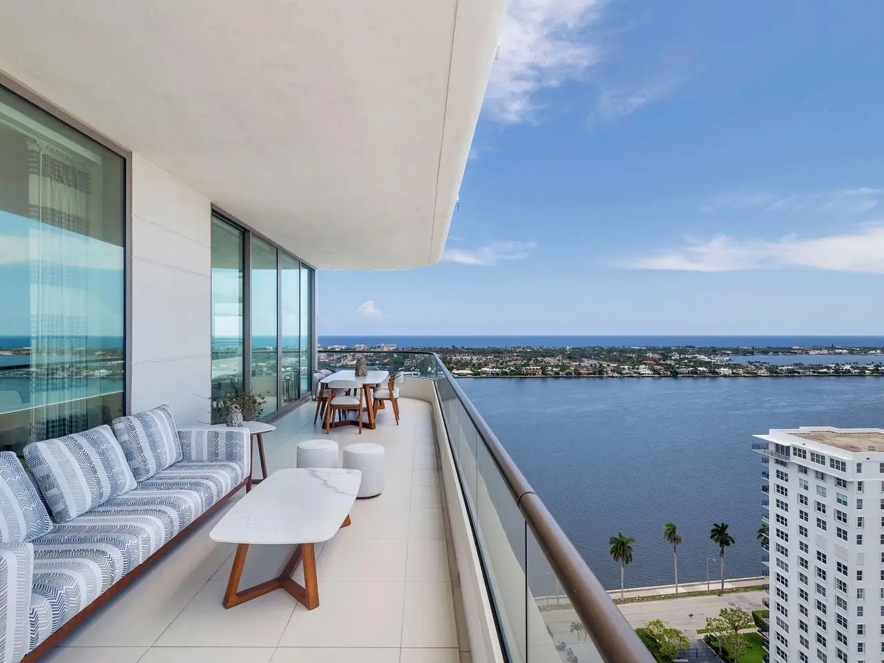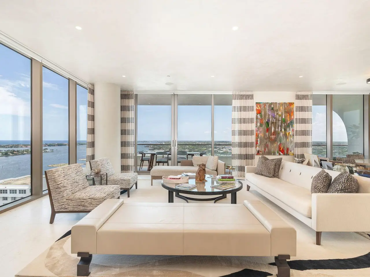 Spectacular LA Clara apartment with majestic jaw-dropping views. Meticulously renovated and decorated, upgrades include full stone second and third bedroom baths, control audio/video system throughout, automatic blinds and all vents flush throughout the unit. Most walls upgraded to level 5 and then Venetian plastered, while others have high-end wallpaper. Primary bedroom closets upgraded with high-end wood built-ins. Permanently unobstructed views to the East, West and South. Wonderful location close to Palm Beach, offered unfurnished but much of the furniture is available separately.
