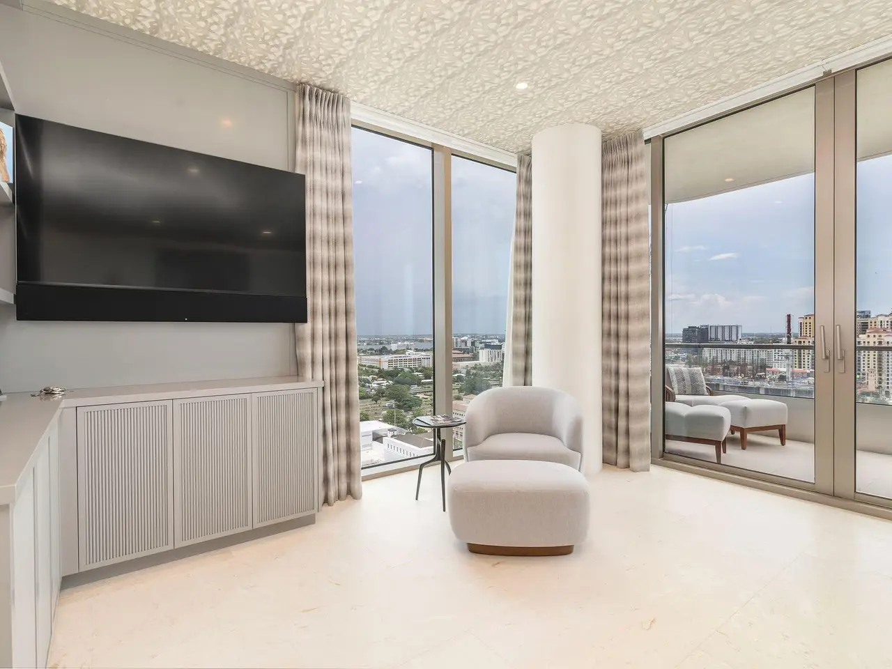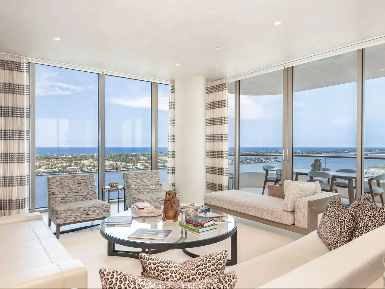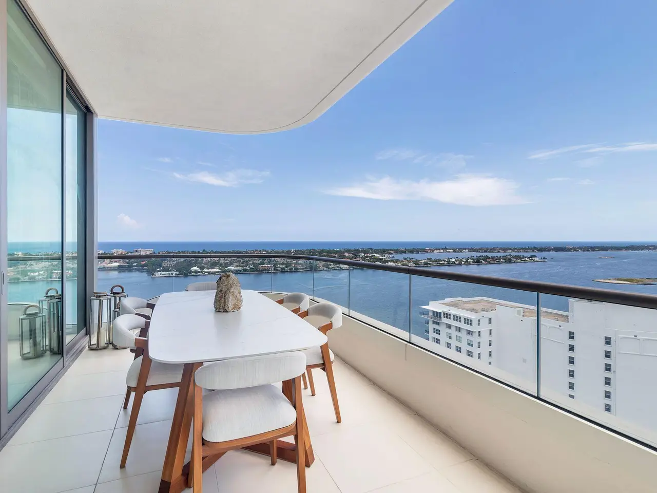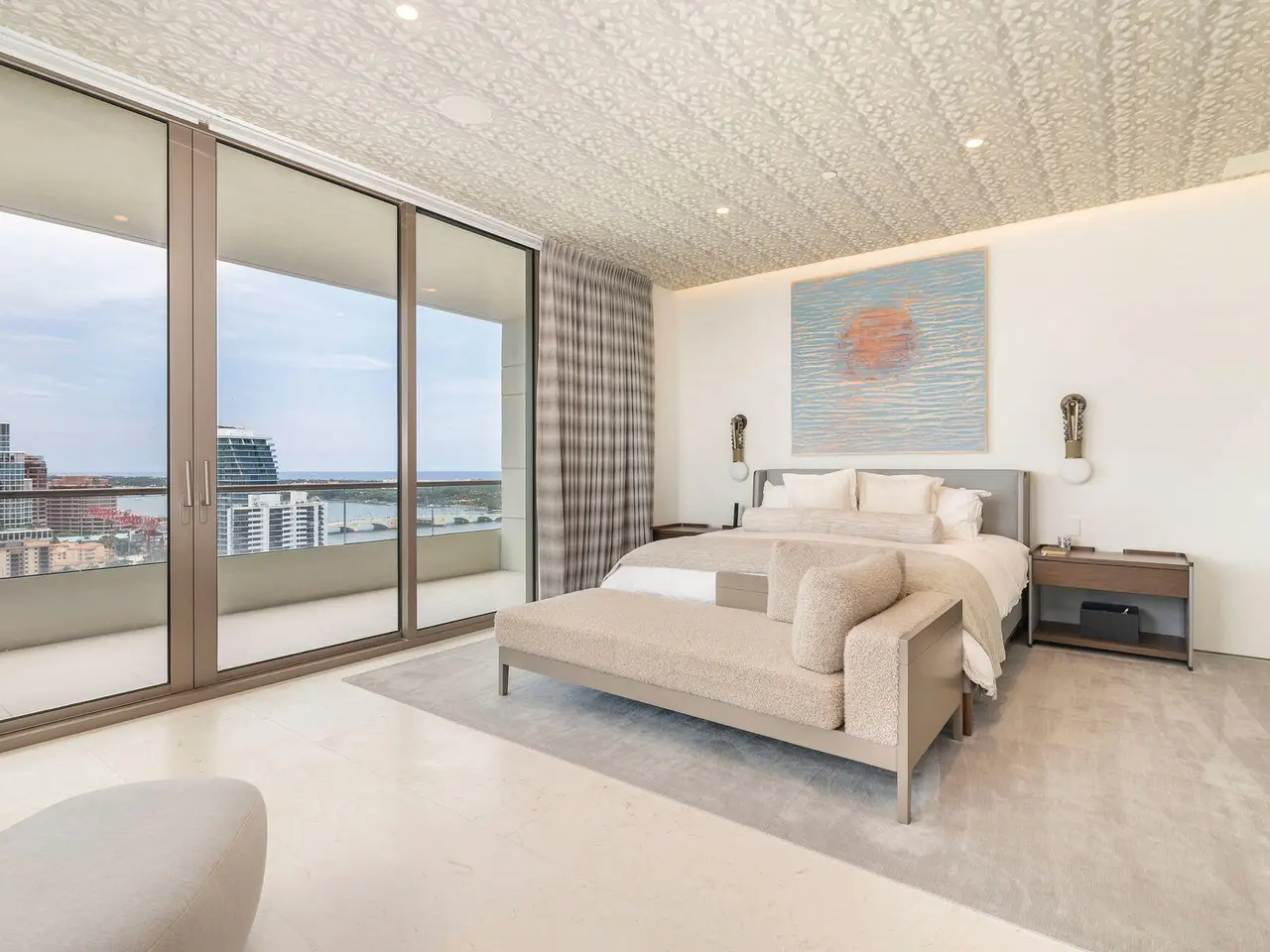 Spectacular LA Clara apartment with majestic jaw-dropping views. Meticulously renovated and decorated, upgrades include full stone second and third bedroom baths, control audio/video system throughout, automatic blinds and all vents flush throughout the unit. Most walls upgraded to level 5 and then Venetian plastered, while others have high-end wallpaper. Primary bedroom closets upgraded with high-end wood built-ins. Permanently unobstructed views to the East, West and South. Wonderful location close to Palm Beach, offered unfurnished but much of the furniture is available separately.