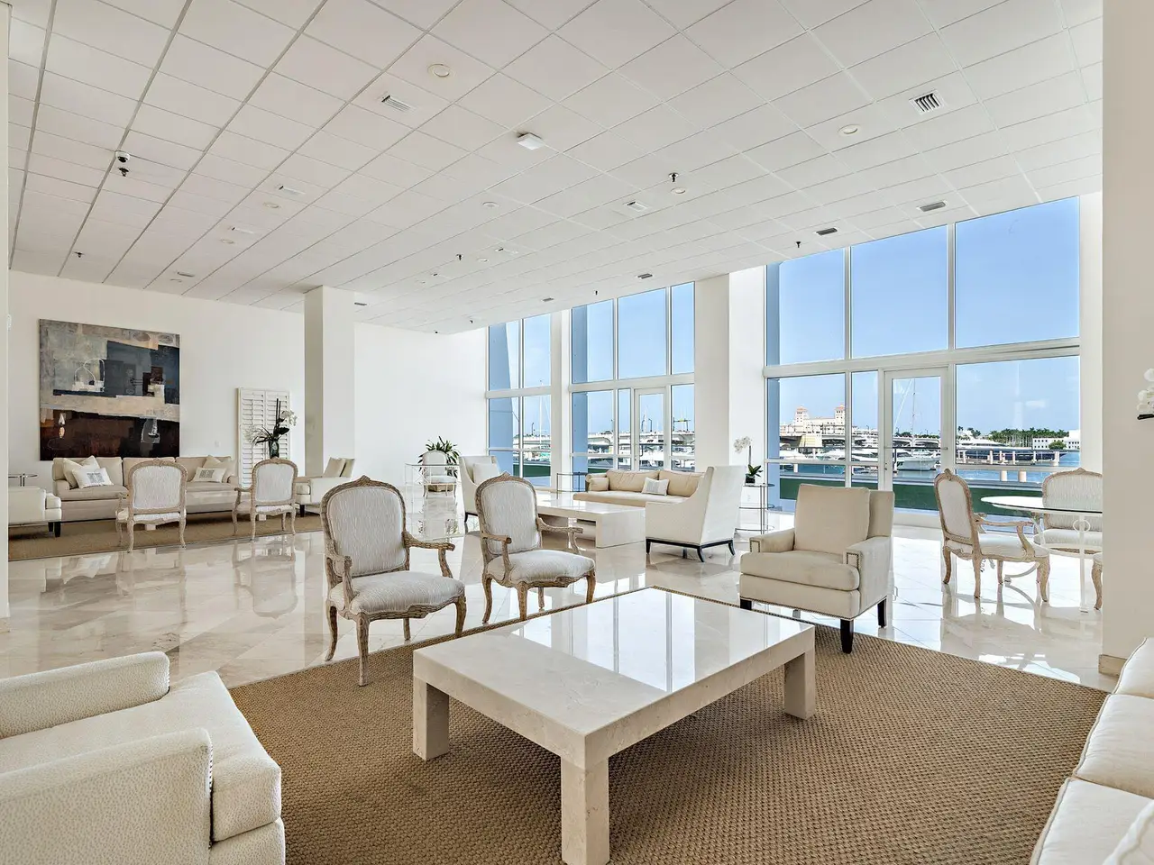 Stunning Waterview Towers, gorgeous Intracoastal setting. Premiere full-service building boasts newly renovated lobby, elevators, terrace overlooking Palm Harbor Marina. Breathtaking view overlooking the island, Poinciana Plaza, The Breakers. Open spaces boasting modern updates with artful decor. Rare design has full wall of retracting sliding doors for an uninterrupted meld from outdoors to in. Bar offers open views thru the main spaces. Kitchen w black granite, Bespoke fridge, custom sink, pantry. MBR en-suite bath, custom vanity, renovated walk-in shower, walk-in closet. 2nd BR has modern built-in office & shelving. Newer HVAC, HWT, lighting, electric, windows, blinds. In-unit laundry & trash chute. Building amenities incl. concierge, 24hr valet, pool, sauna, tennis, pickle ball, gym.