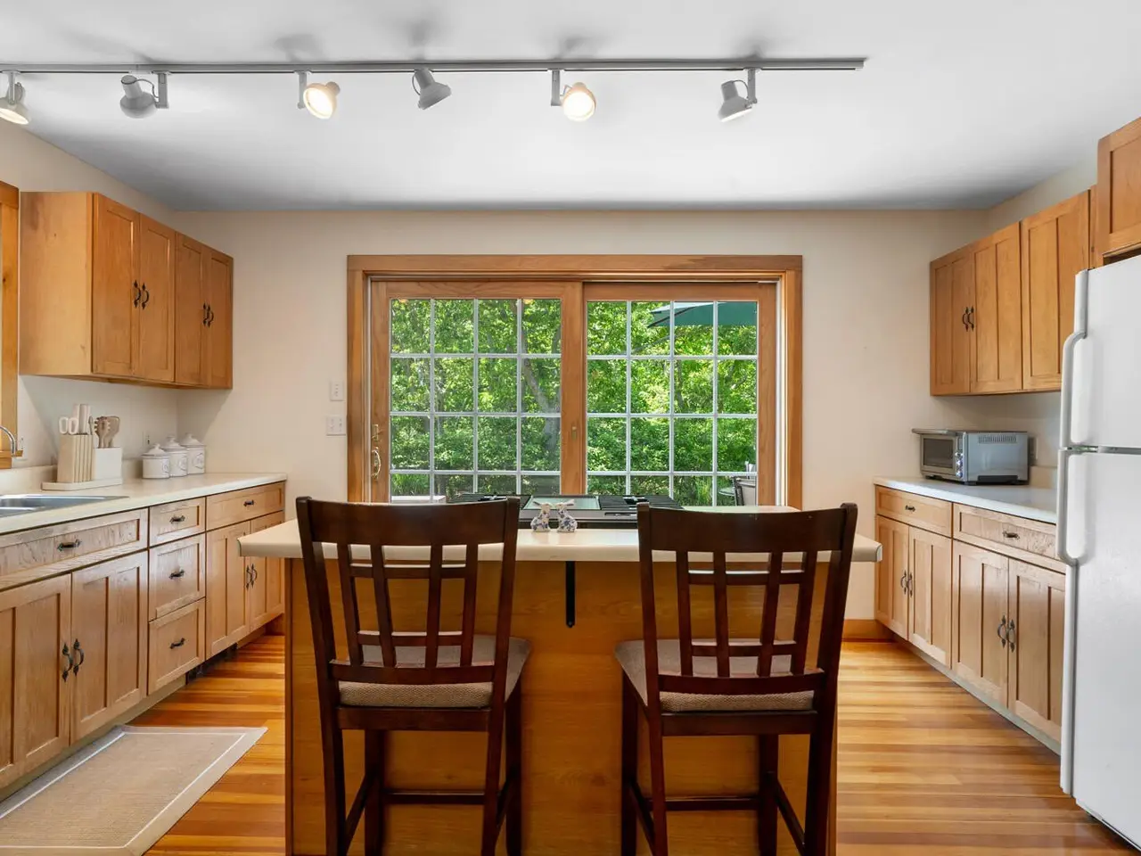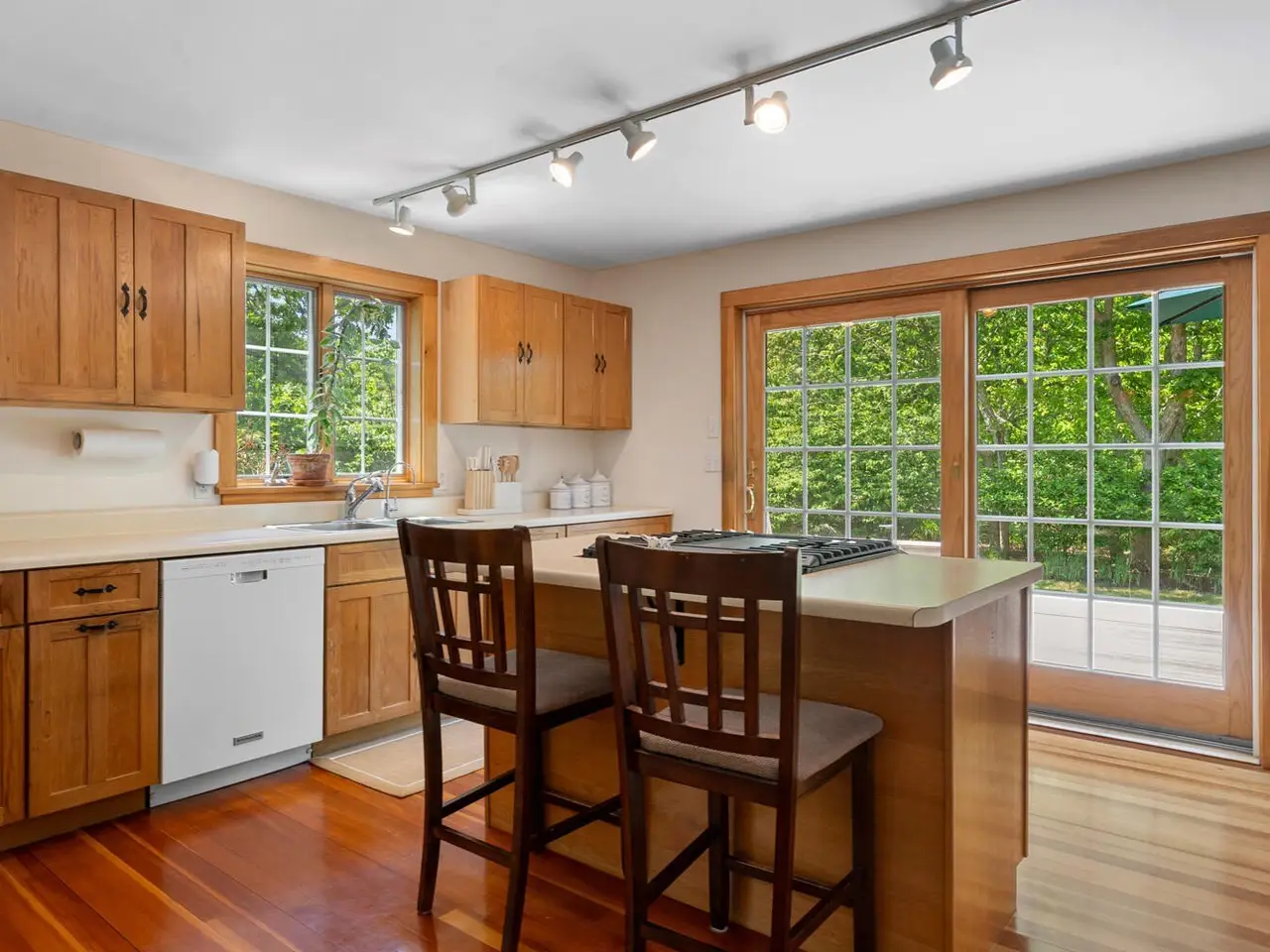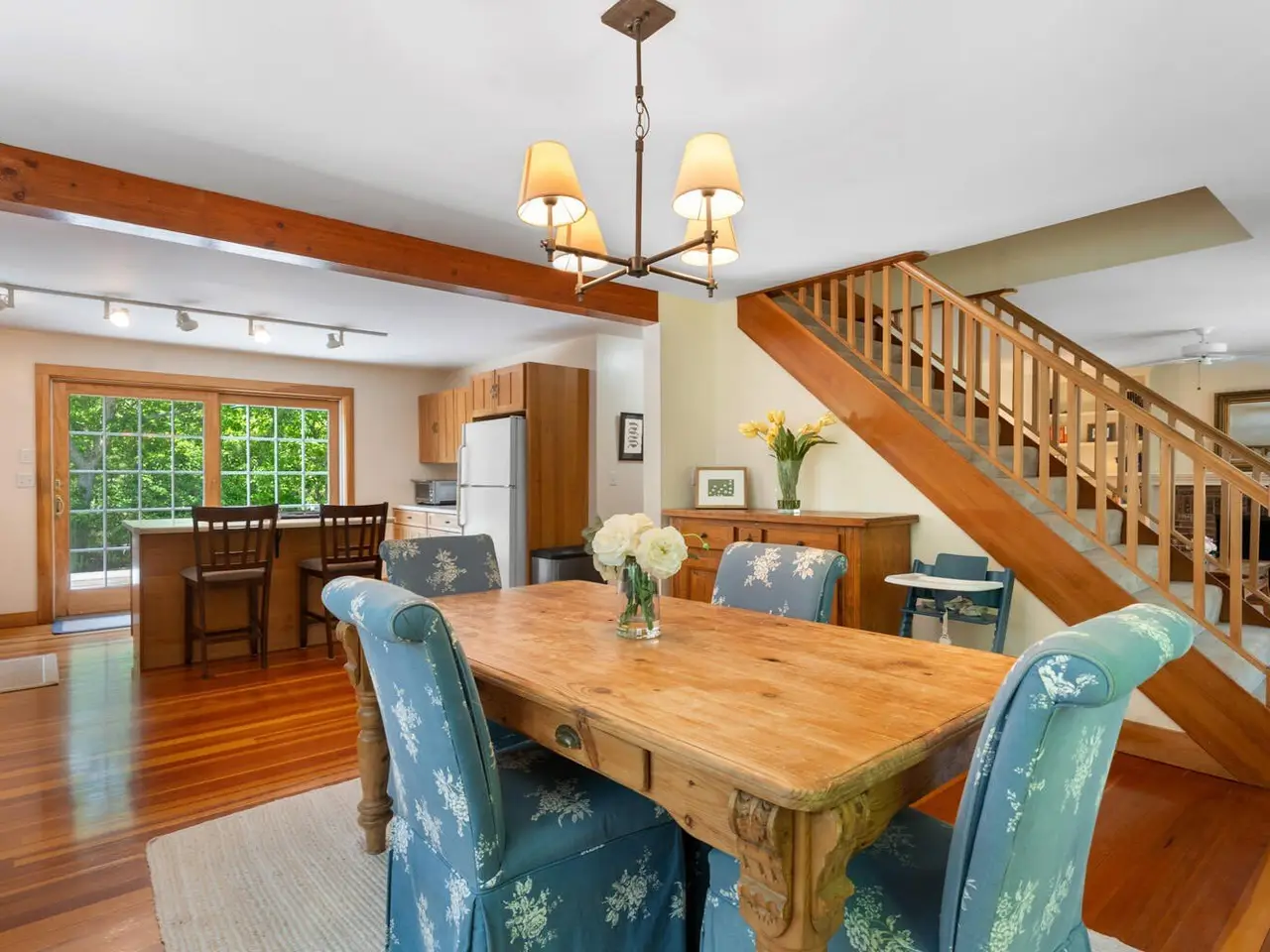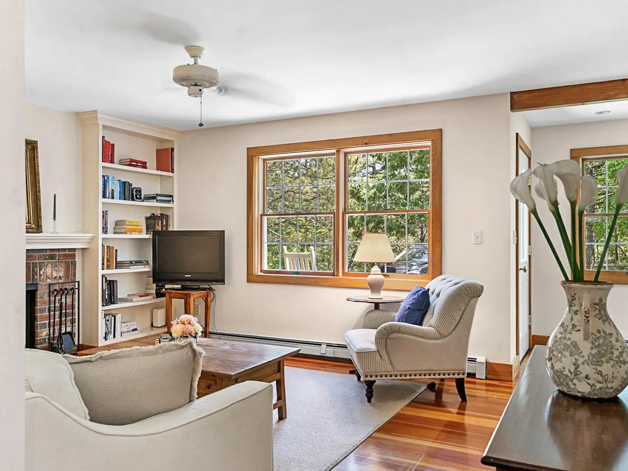 Tucked away on 1.6 wooded acres in West Tisbury, this classic Cape-style home offers both privacy and convenience, with easy access to the charm of Up-Island and the amenities of Down-Island. Located on a paved road near Long Point Beach, it also includes coveted access to Lambert's Cove Beach. The bright, open interior features a living and dining area with a wood-burning fireplace, a kitchen with a center island, and sliding doors that open to a spacious back deck-ideal for outdoor entertaining. The first floor includes a bedroom and a full bathroom, while the second floor offers two large bedrooms and a shared full bathroom. A full-height, dry basement provides excellent storage and potential for future expansion. The landscaped grounds create a picturesque environment, making it a perfect option for year-round living or rental investment.