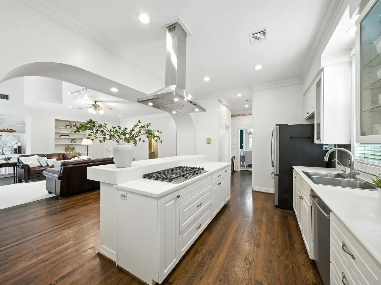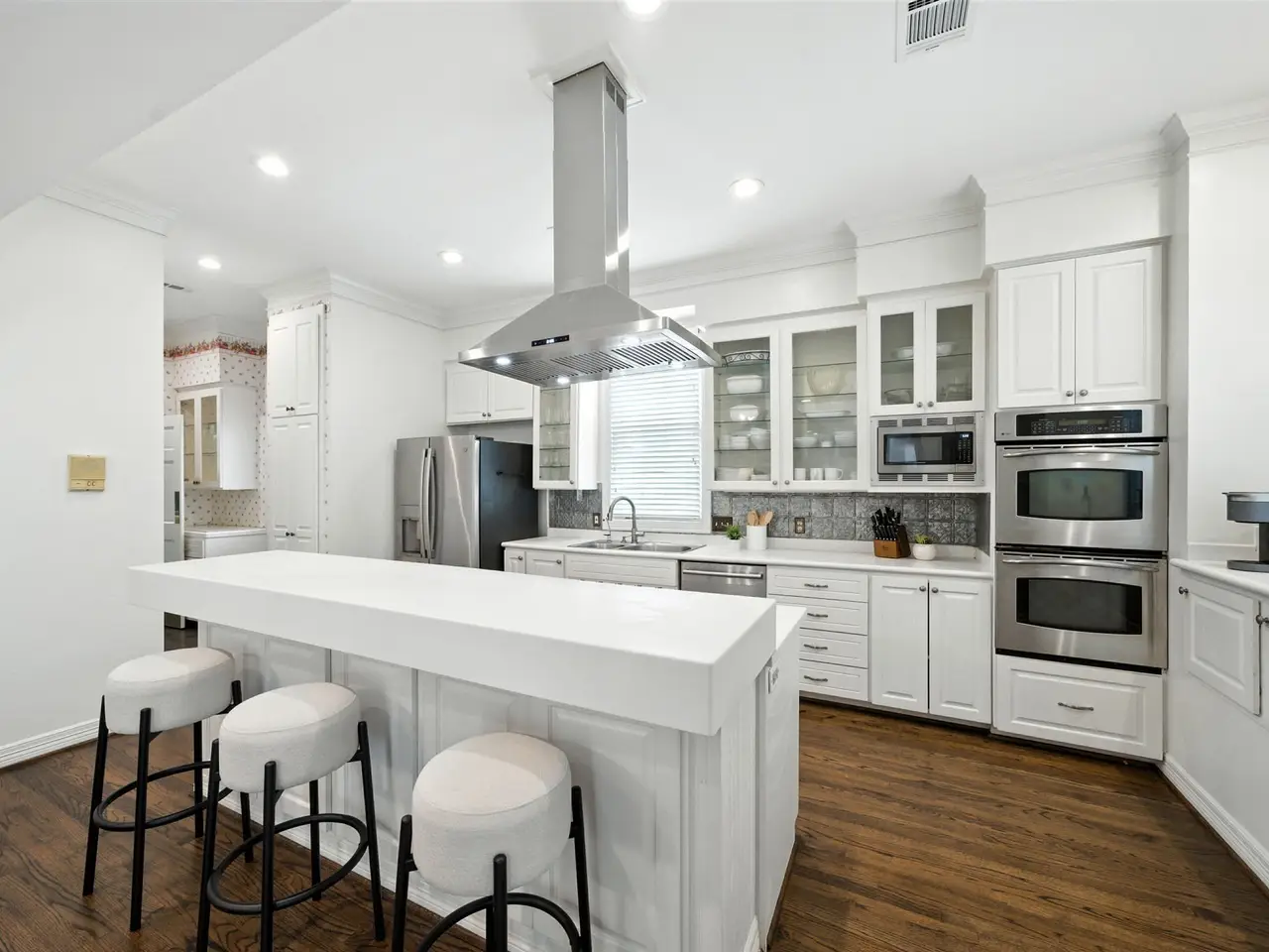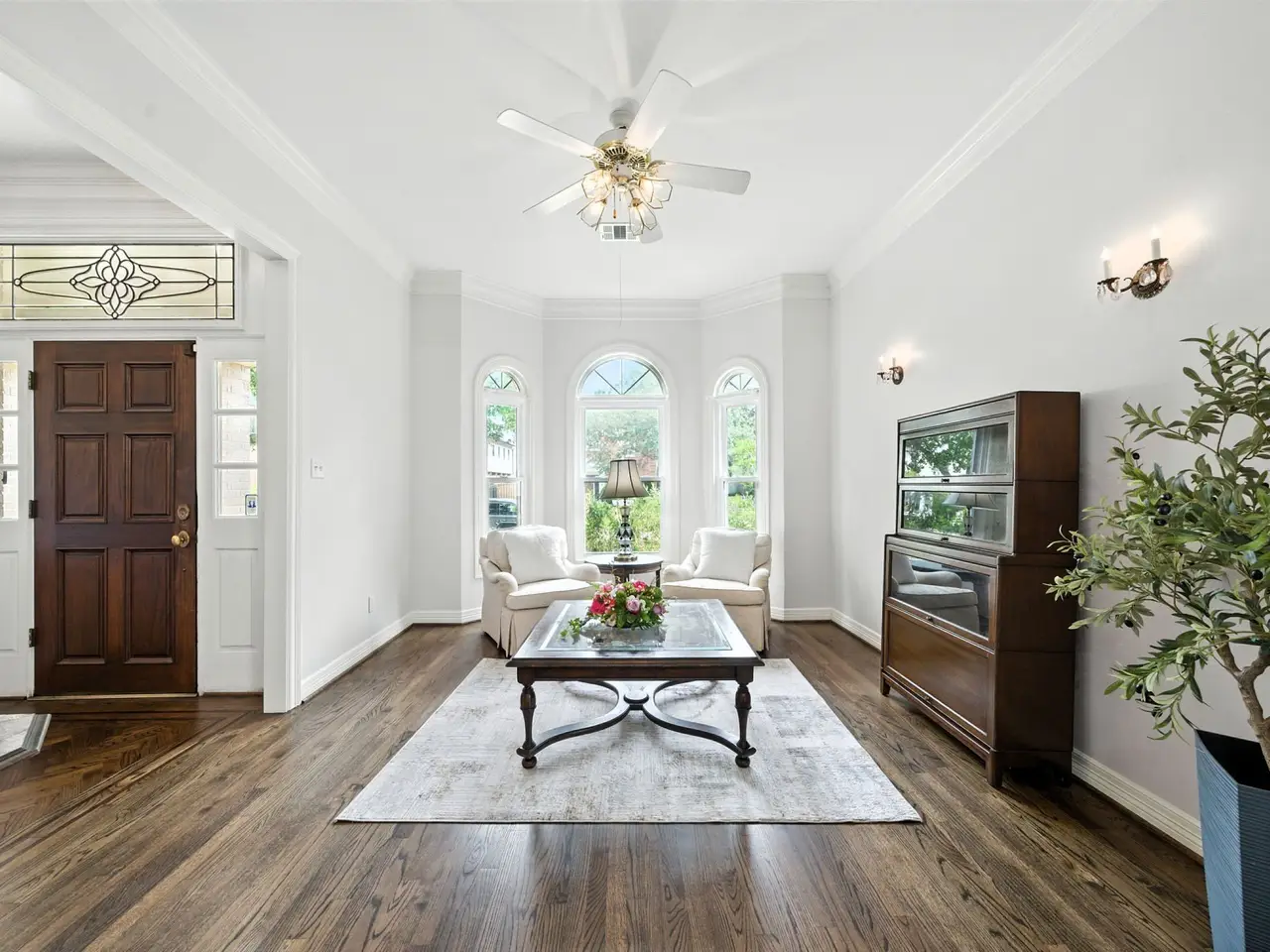 Located in West University, this home combines timeless design with modern efficiency. The entry welcomes you with herringbone-pattern inlay wood floors that flow throughout the first level. Crown molding throughout. Open ceilings highlight the spacious living room, while the chef’s kitchen boasts ss appliances, double ovens, and a new gas range (25). The first floor primary suite ensures comfort and privacy, upstairs you’ll find three bedrooms and a spacious flex space, perfect for a library, media room, or guest suite. The sizable utility room offers built-in storage and sink for added convenience. Recent updates include 48 solar panels with two Tesla batteries providing 26.5 kW (24), double-paned Low-E windows (22), tankless water heater (24) and reverse osmosis filtration. This home blends energy efficiency, thoughtful updates, and elegant details for exceptional living in a prime location. Zoned to West U Elementary (Buyer to verify eligibility and attendance). Per Seller