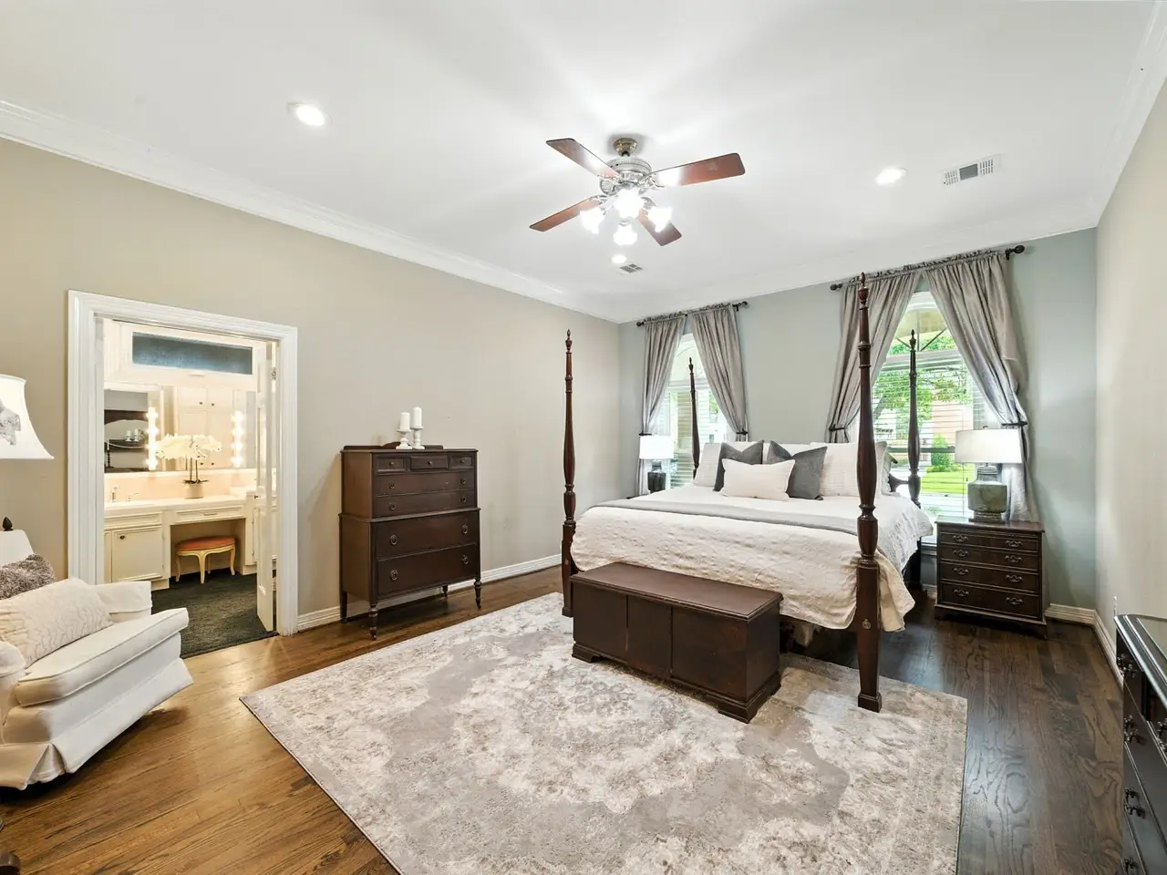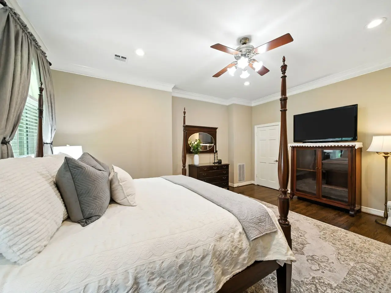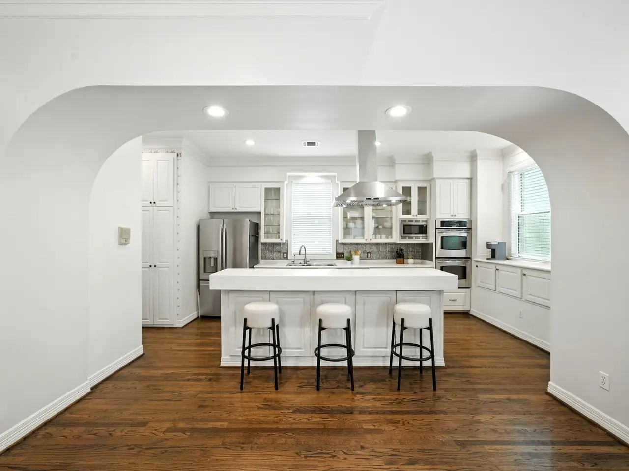 Located in West University, this home combines timeless design with modern efficiency. The entry welcomes you with herringbone-pattern inlay wood floors that flow throughout the first level. Crown molding throughout. Open ceilings highlight the spacious living room, while the chef’s kitchen boasts ss appliances, double ovens, and a new gas range (25). The first floor primary suite ensures comfort and privacy, upstairs you’ll find three bedrooms and a spacious flex space, perfect for a library, media room, or guest suite. The sizable utility room offers built-in storage and sink for added convenience. Recent updates include 48 solar panels with two Tesla batteries providing 26.5 kW (24), double-paned Low-E windows (22), tankless water heater (24) and reverse osmosis filtration. This home blends energy efficiency, thoughtful updates, and elegant details for exceptional living in a prime location. Zoned to West U Elementary (Buyer to verify eligibility and attendance). Per Seller