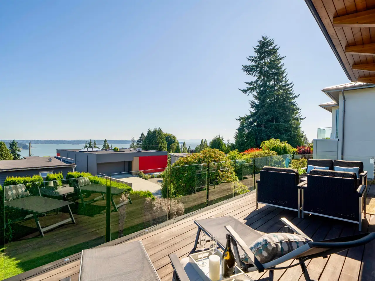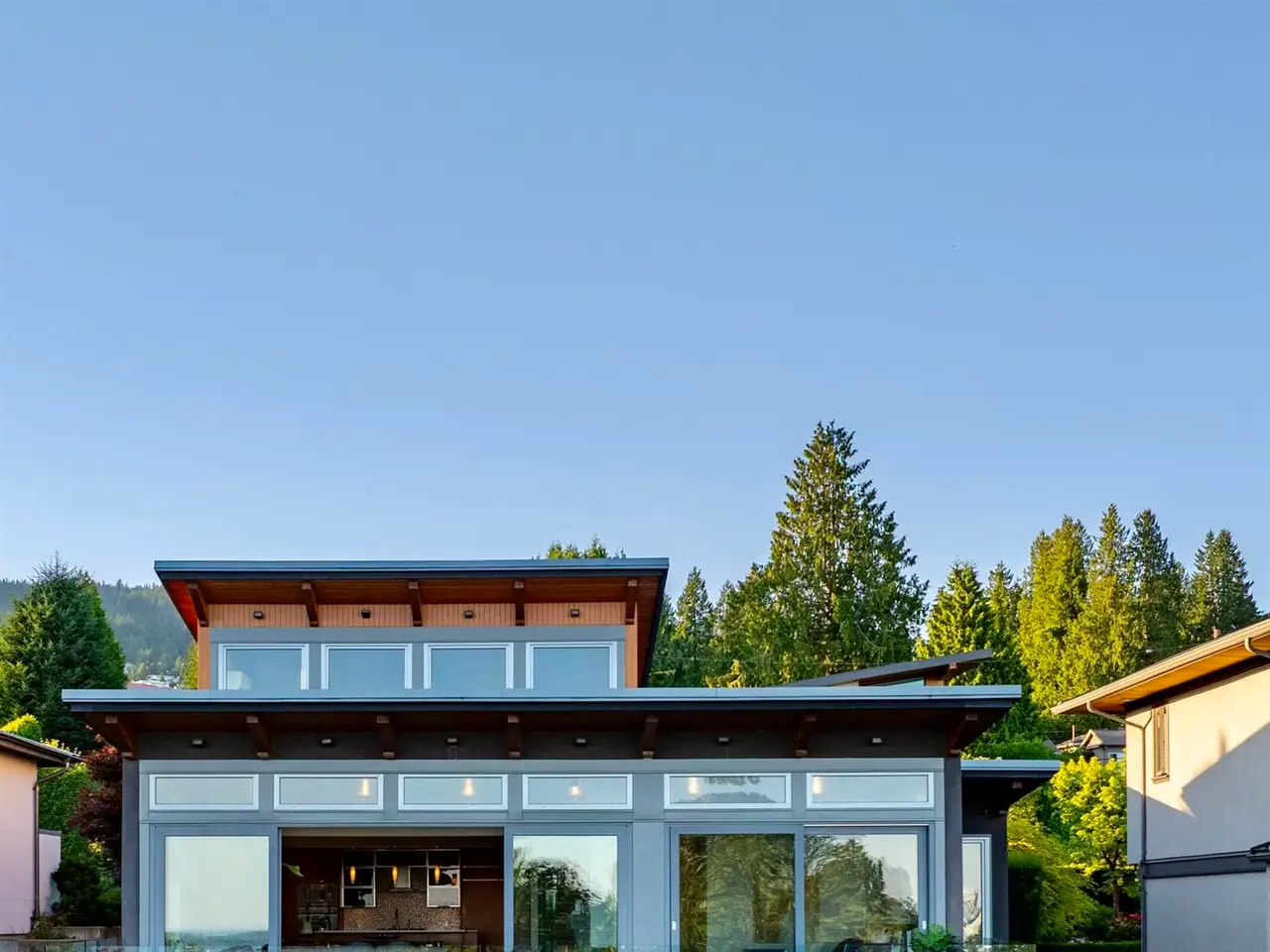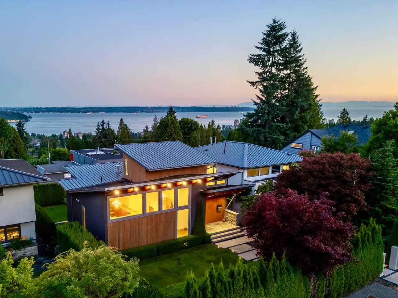 Sweeping panoramic views from Mt. Baker, Vancouver Harbour, Burrard Inlet, Strait of Georgia & Vancouver Island’s coastal mountains, an ever-changing west coast canvas from sunrise to sunset. Designed by renowned Gary Van Dijk, this modern, architecturally refined home offers open-concept living, soaring 10'-14' vaulted ceilings, expansive glazing, floating stairs &seamless indoor-outdoor flow. Primary bdrm on the main level, w/ a huge WIC & spa-like ensuite feat. oversized steam shower & Victoria+Albert soaker tub. Upper level open office can easily convert to 4th bdrm. Located in lower BP in a quiet cul-de-sac, mins to Park Royal & Mulgrave, walking distance to Sentinel Secondary, Chartwell elementary & Hollyburn; easy access to downtown & anywhere on the Shore. Meticulously maintained.