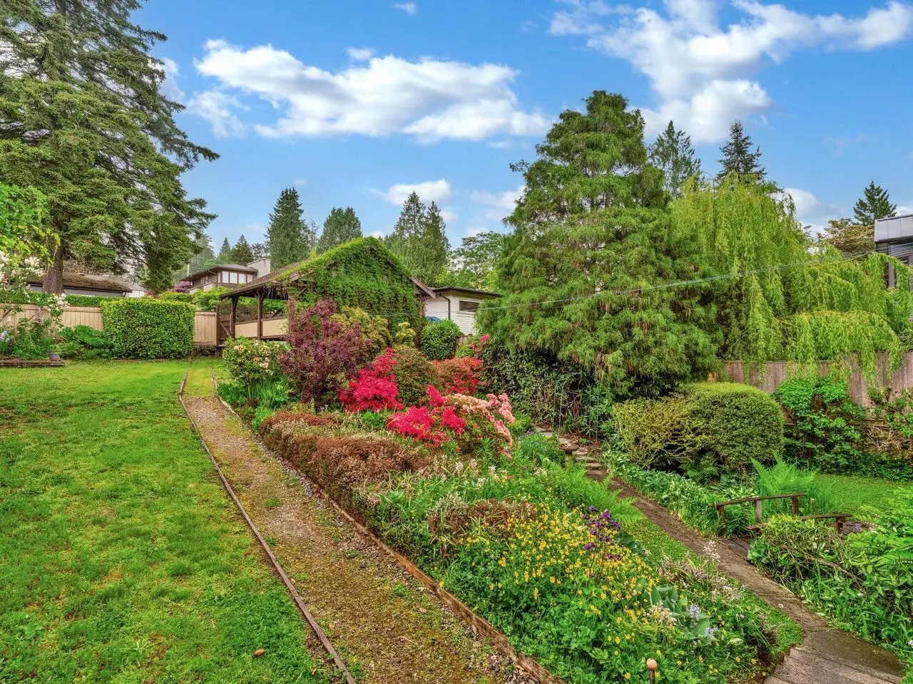Located in a quiet area of the popular Ambleside neighbourhood. Beautiful large lot (50 x 150 = 7500 sq ft) lot with a variety of perennials and flowering shrubs. Zoning (RS5) allows a secondary suite and a coach house. Front porch offers a partial City view and a glimpse of the water. Short walk to Ambleside shops and restaurants. Primary bedroom on the main floor. Solarium off the kitchen overlooks a beautiful and private backyard.