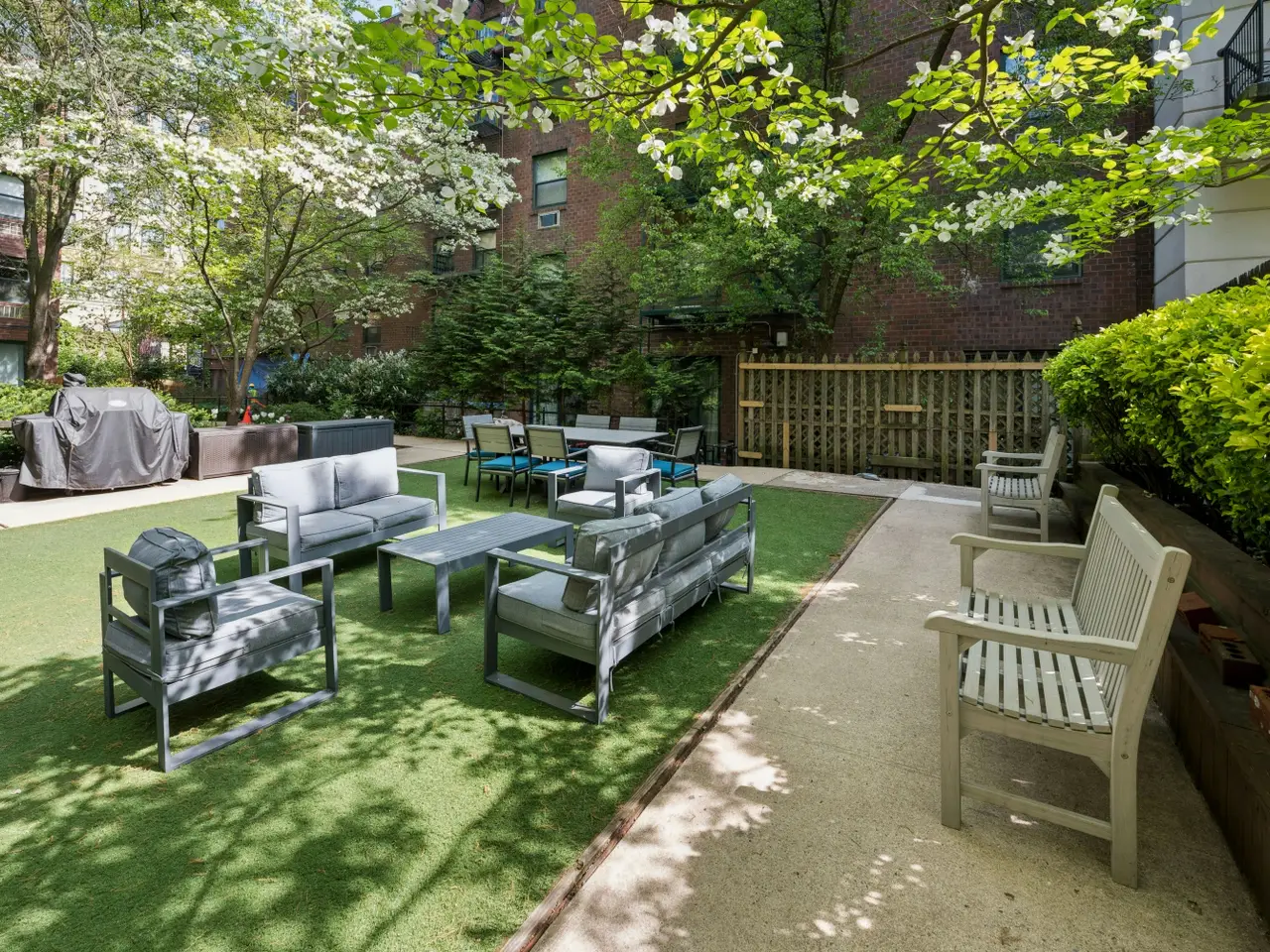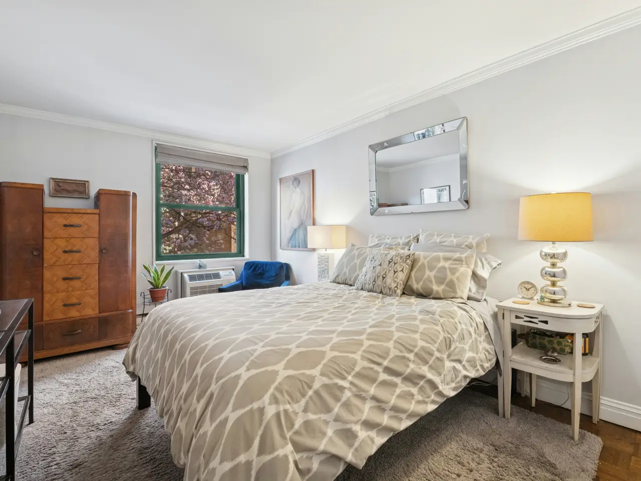 353 West 11th Street, Apt 2B, presents a rare opportunity to own an impeccably maintained, sun-flooded two-bedroom, one-bathroom home in the heart of the West Village-just moments from Hudson River Park, on charming cobblestoned West 11th Street. Bathed in natural light from its dual exposures, this thoughtfully laid-out apartment offers an expansive south-facing living room with double windows and serene views overlooking Washington and West 11th Streets. The entertaining space easily accommodates separate living and dining areas. The kitchen features timeless black-and-white tiled floors and full-sized appliances. Both king-sized bedrooms overlook the building's lush, private garden, providing abundant sunlight. Each bedroom is generously proportioned, with through-wall HVAC units and ample closet space. The home is enhanced by a sensible separation of living and sleeping areas, multiple sizable hall closets (one of which may be converted to accommodate an in-unit washer/dryer), and peaceful, garden-facing views that offer a rare sense of privacy and quiet. Accessed via wide, well-lit windowed staircases, this second-floor apartment is part of the West Village Houses, a pet-friendly, well-managed, financially sound cooperative community known for its charm and park-like private gardens. Residents enjoy access to the private garden with BBQ areas, mature trees, and communal seating, as well as the convenience of onsite professional management, two live-in supers, full-time grounds staff, free bike storage, and a centrally located laundry room just downstairs. Guarantors, gifting, and co-purchasing is permitted, and shareholders enjoy a flexible sublet policy. With its classic character and unbeatable location, this is an exceptional opportunity to live in a classic yet refreshed West Village residence with access to nature, culture, and quiet sophistication in one of Manhattan's most sought-after neighborhoods.