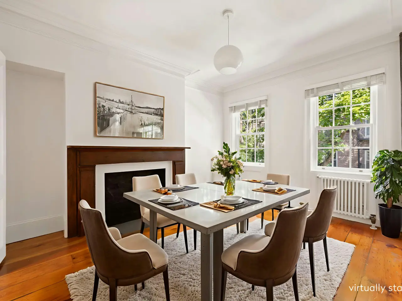 Experience the best of West Village living in this beautifully renovated private townhouse duplex. Located on a quiet, tree-lined street in a Greek Revival townhouse, this sun-filled apartment combines classic charm with modern comfort. The elegant and comfortable home is filled with unique and refined features, including a newly renovated custom kitchen with high-end appliances, hardwood floors, central air conditioning, a washer/dryer, new windows, two skylights, and four decorative fireplaces. This amply sized 2 bedroom, 1 1/2 bath home also includes a formal dining room and a flexible space perfect for an office. The West Village is largely residential, offering peaceful days followed by vibrant nights. The location is close proximity to sophisticated shops, the finest restaurants, world-class galleries, the Whitney Museum of Art, Hudson River Park, and the High Line. Available September 1st. Sorry, no pets and no smoking.