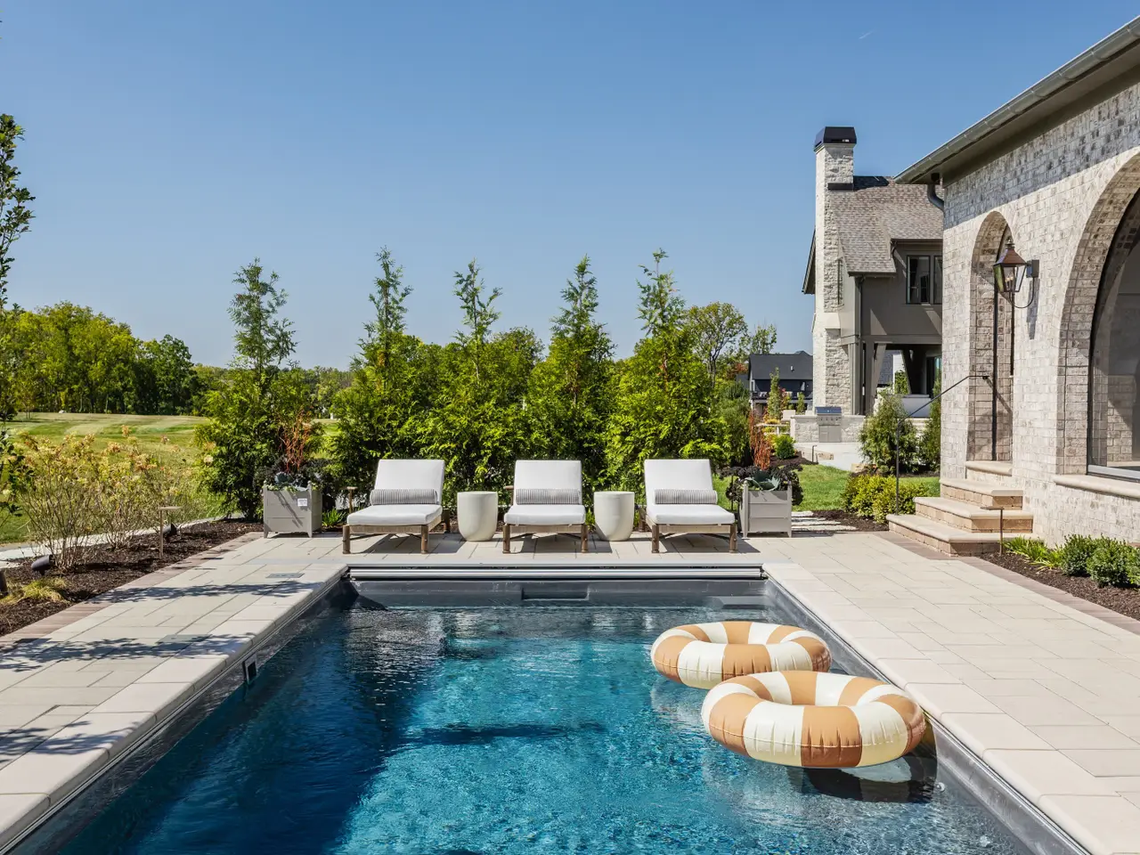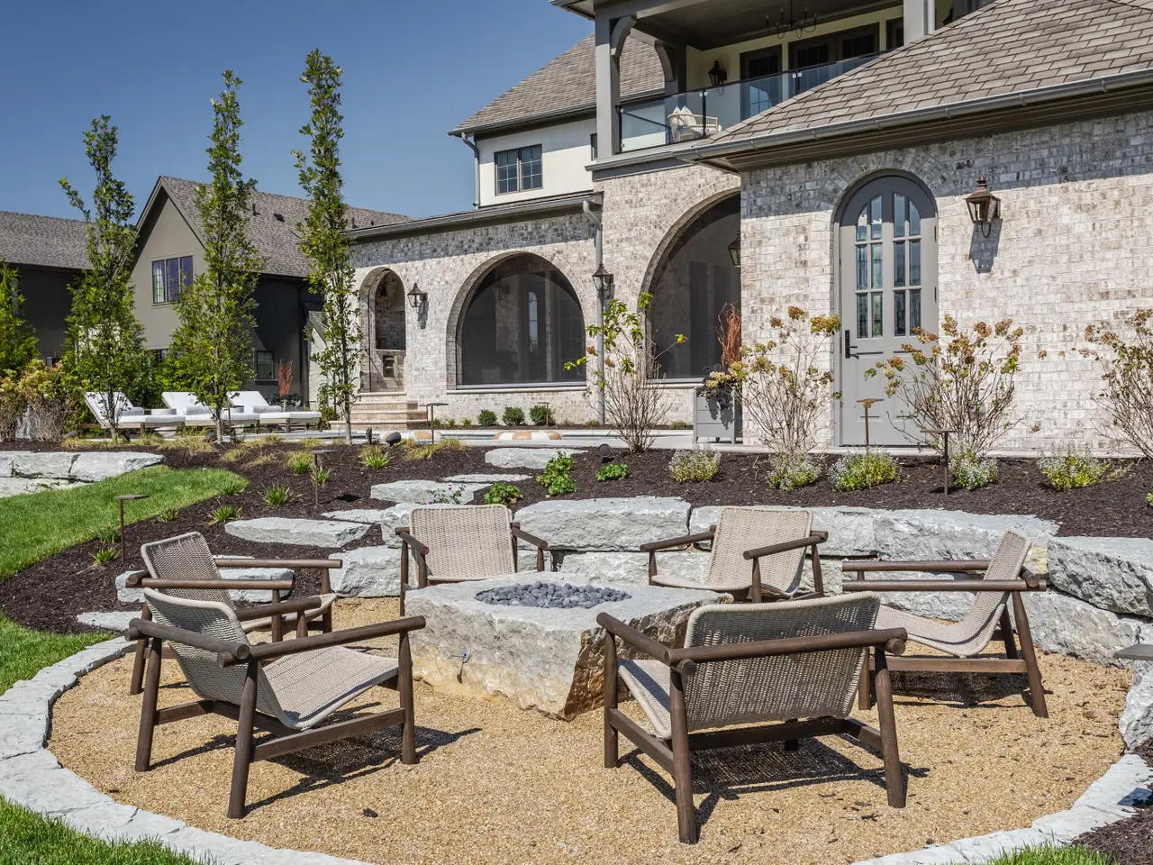 Boutique builder McKenzie Pierrot Homes has designed and constructed the most extraordinary home for the 2025 Home-A-Rama. Situated on the 16th hole of the Chatham Hills Golf Course created by notable Pete Dye. Every piece of this home was hand selected by designer Jodi Pierrot to be elegant and sophisticated while also comfortable and functional for every homeowner. Each space is thoughtfully designed. The finishes are curated to match the overall aesthetic of this home and create a cohesive feel throughout, and include warm oak engineered hardwood floors, custom wood arched doors, marble countertops, and a French La Cornue 65-inch range. These details are not just aesthetic but also functional, like the generator to protect you from Indiana's weather, custom built-ins for storage, main and upper level laundry rooms, and mud room well designed with a custom doggie station for your 4 legged friends, home planning station, and water bottle filling dispenser. Other exceptional finishes include globally sourced lighting, custom cabinetry, complete home automation system, and a golf simulator room. The home is inspired by English Tudor style homes and other historic estates to create a home that will stand the test of time. The exterior blends beautifully with Chatham Hills lush landscape and will include a rich terrain of lilacs, hydrangeas, boxwoods, hostas, and more. The rear yard boasts an impeccable outdoor living space with expansive paver patio with outdoor kitchen, covered paver patio, reflection pool, and pool house. The pool house is fitted with bar, bathroom, and additional laundry. The absolute ideal for outdoor entertaining.
