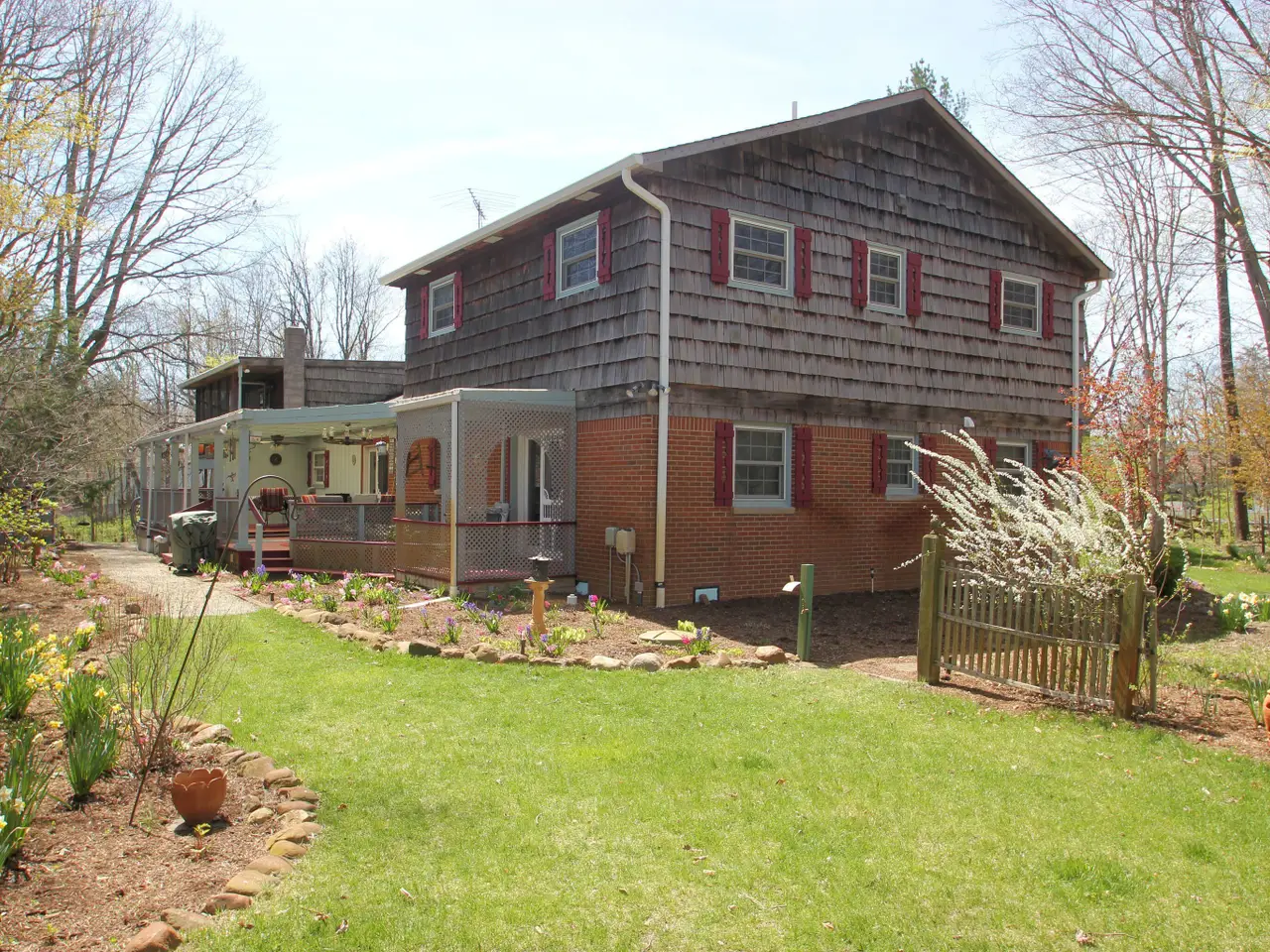 A very private sanctuary in the heart of the city! From the moment you turn into the property, you will be captured by the winding drive, beautiful trees and landscaping. When you enter the home, you will immediately notice the beautiful artisan wood floors and attention to detail in this updated 6 bed, 3 full bath home with tons of special features, including an upper and lower covered deck (476 Sq. Ft.), second floor family room or crafts room. Be sure and notice the handcrafted wood surround on the gas log fireplace and the wooden spiral staircase. When you exit the home you will notice 3 outbuildings including a shed that would make a perfect playhouse, and the view from west side of the house is an expansive pasture like setting that could be utilized in numerous ways. Two car garage, one bay of which is a workshop and a carport. This home has been lovingly and meticulously maintained and updated and is very convenient to every thing you could need. Come see your next home!
