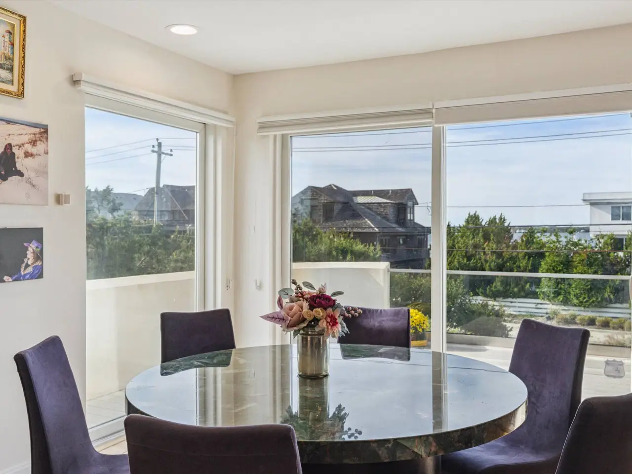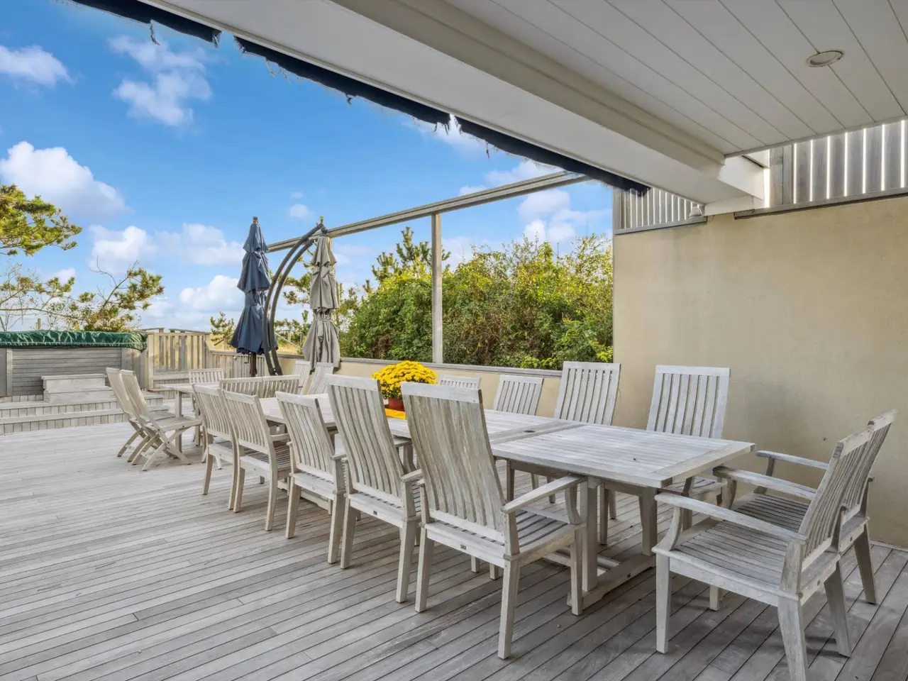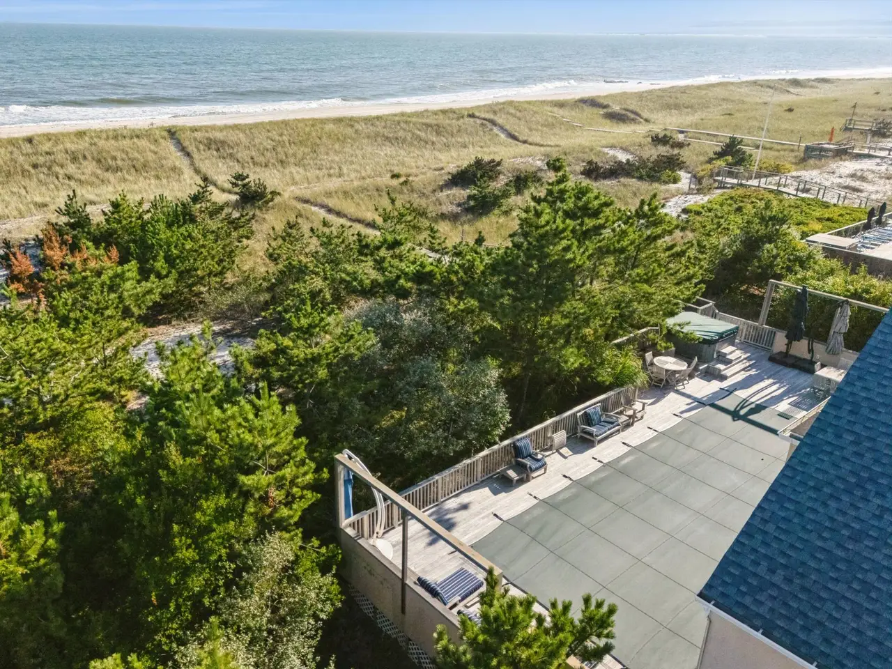 This five-bedroom oceanfront beach house offers 132 feet of beach frontage with sweeping ocean views. The welcoming entry foyer leads to an expansive sun-filled living room with fireplace, dining area and den. The updated kitchen with quartz and granite countertops, Wolf stove, and Sub-zero refrigerator also has a cozy dining space with fabulous sunset views. A guest suite with bay views and an additional bedroom with access to the pool are on the main floor. Two additional en-suite bedrooms on the second level enjoy water views. The primary suite leads to an open terrace overlooking the pool area with panoramic ocean and bay views. Outdoor living is outstanding including a heated gunite pool, hot tub, and expansive deck for dining and entertaining. Your exclusive boardwalk leads directly from the deck to the sandy beach and rolling waves. Whether as a summer escape or a year-round residence, this oceanfront gem offers an extraordinary opportunity to create your own Hamptons haven in the truly special beach community of Westhampton Beach. Just minutes away from Main Street and the vibrant revitalized village with new boutique shops, restaurants, new movie theater, and Performing Arts Center.